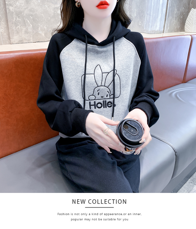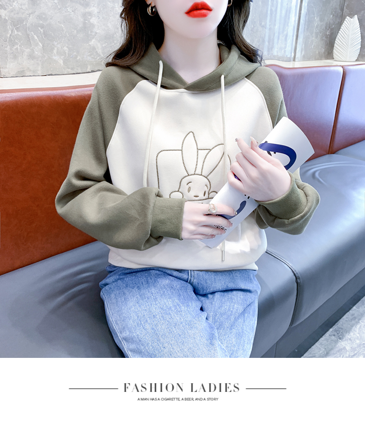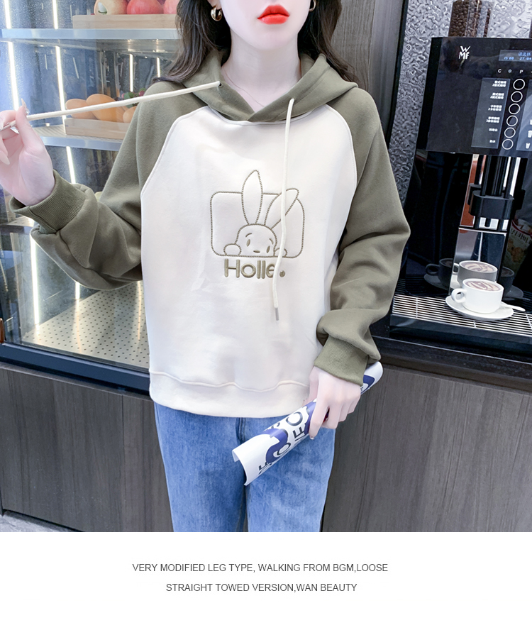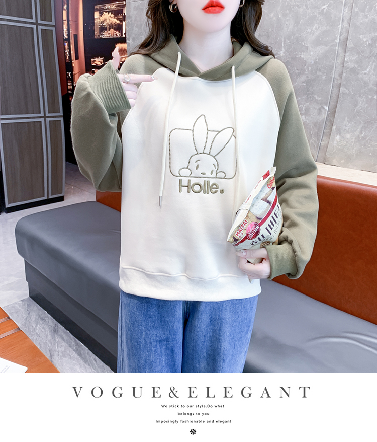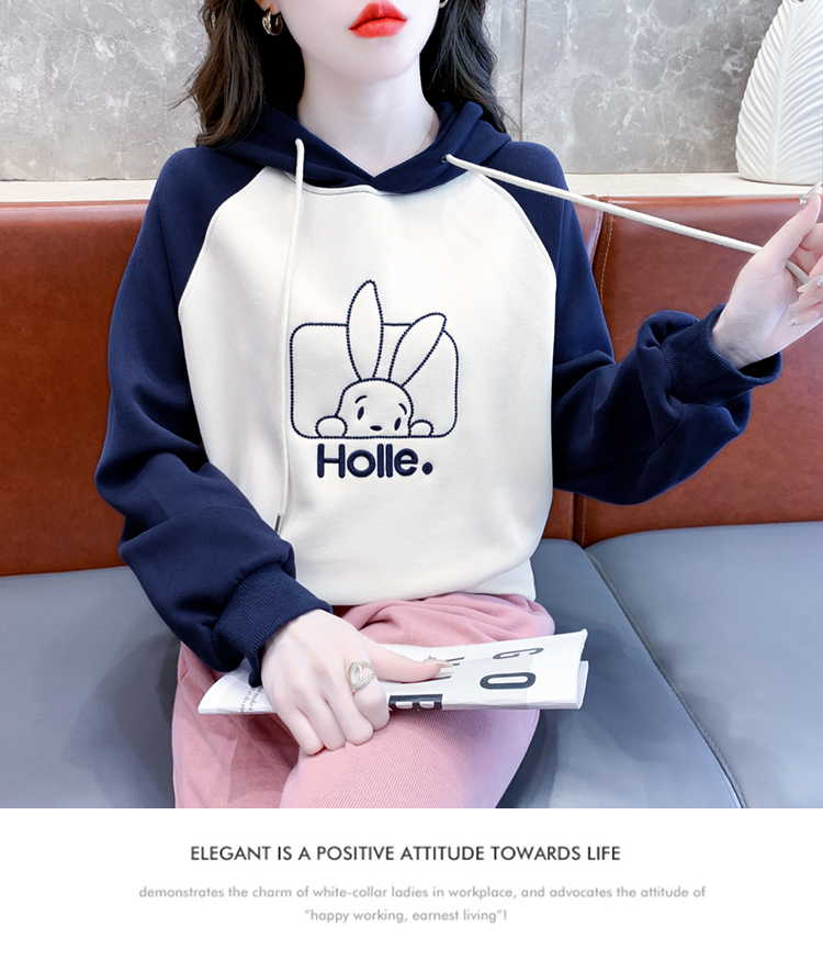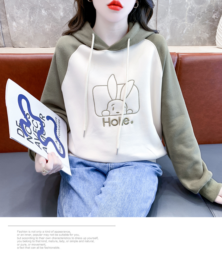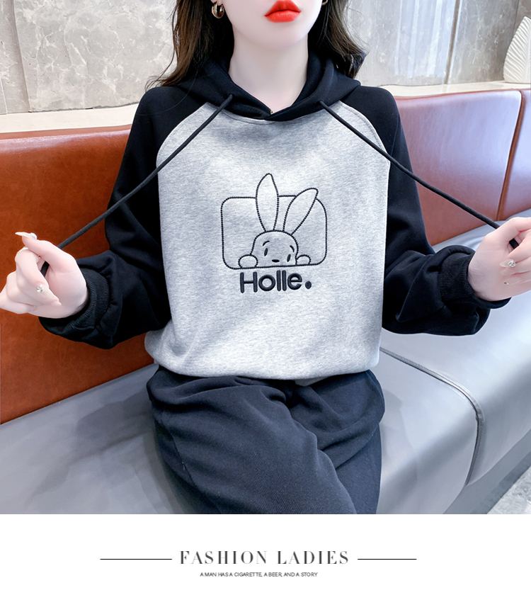 RM30469#连帽短款卫衣女秋季2023新款宽松拼色绣花小个子上衣外套潮