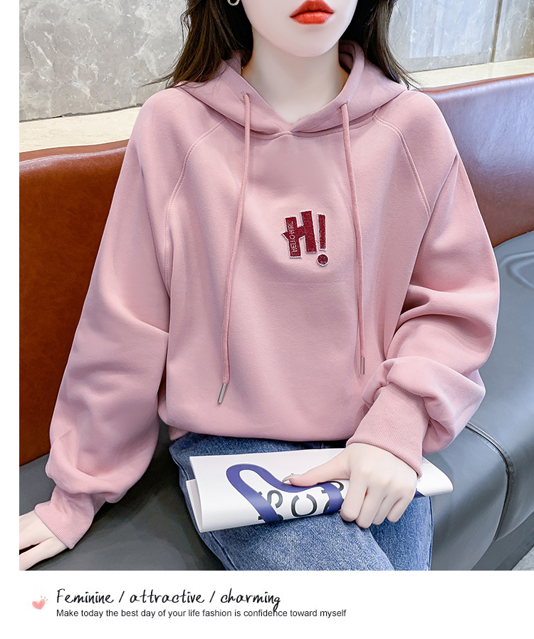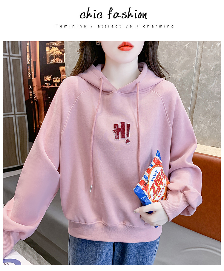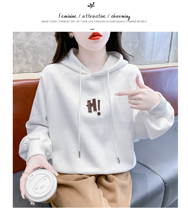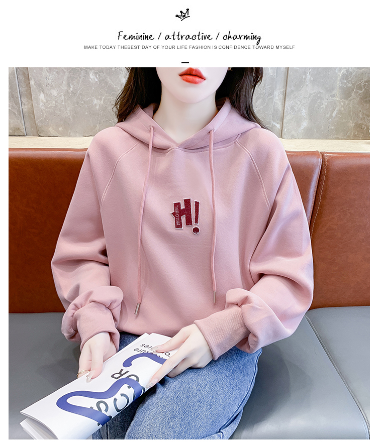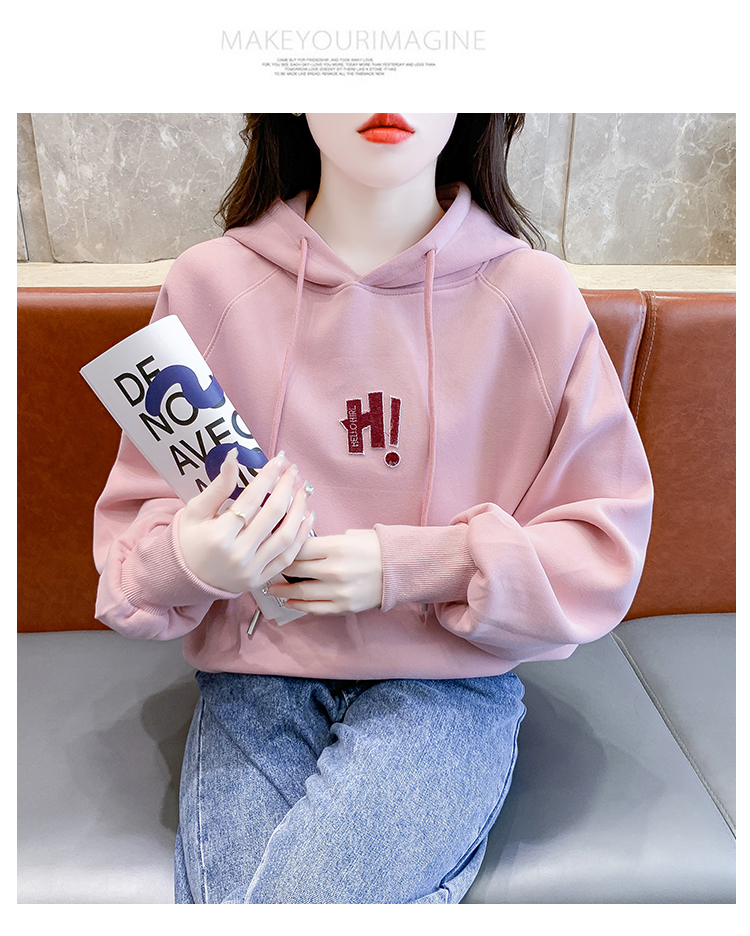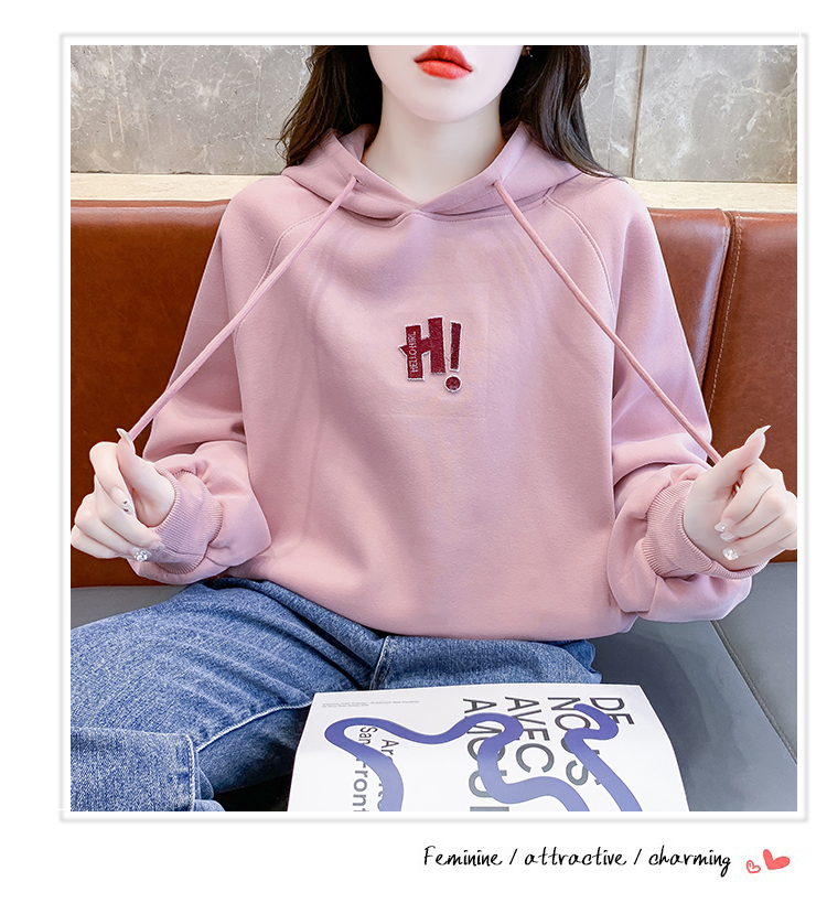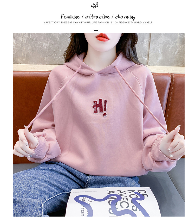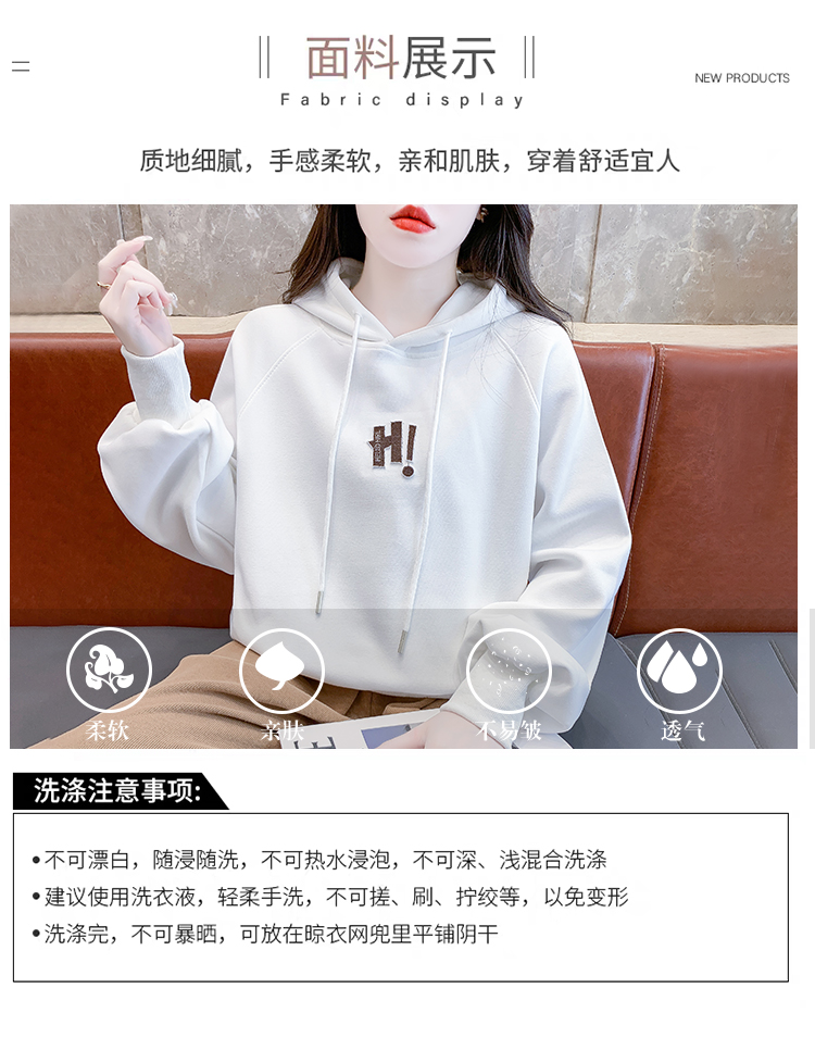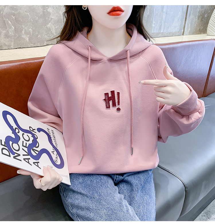 RM30470#连帽卫衣女2023秋季新款韩版时尚宽松字母绣花港味上衣外套