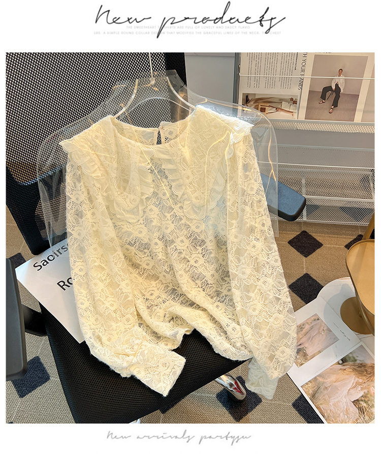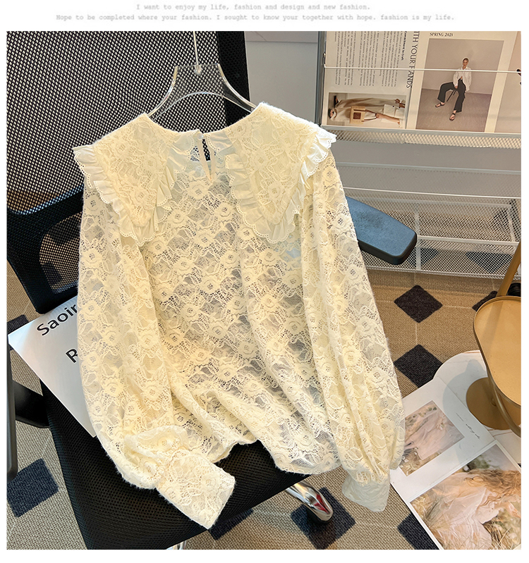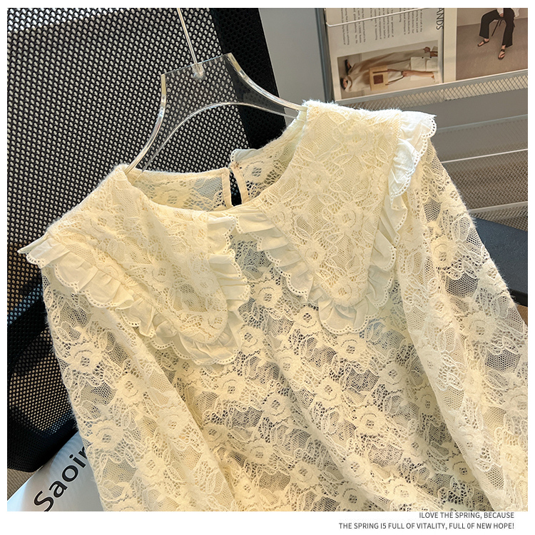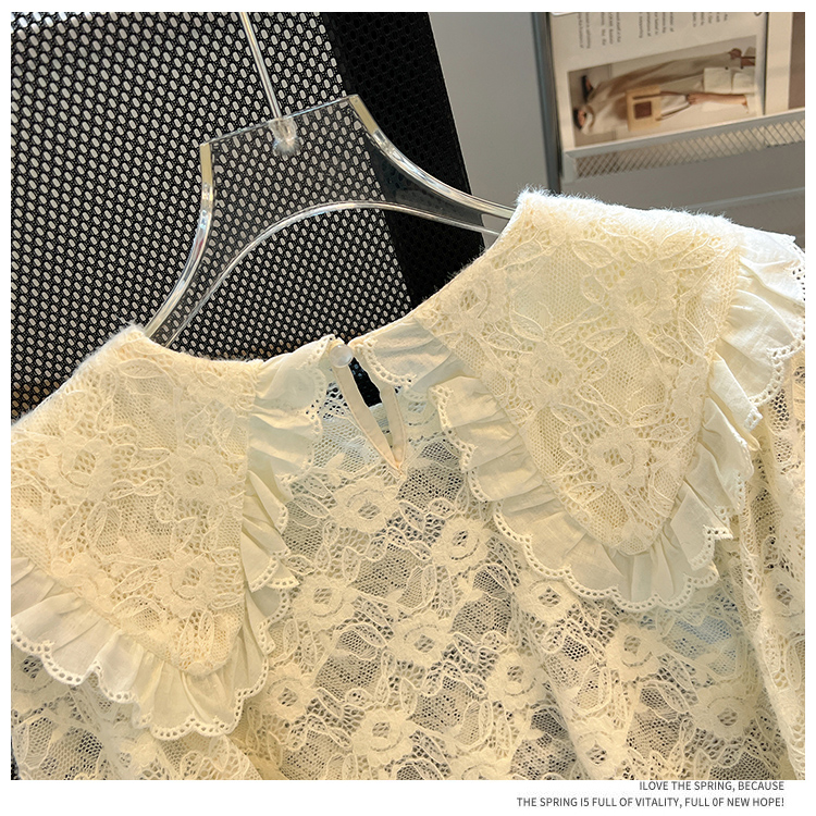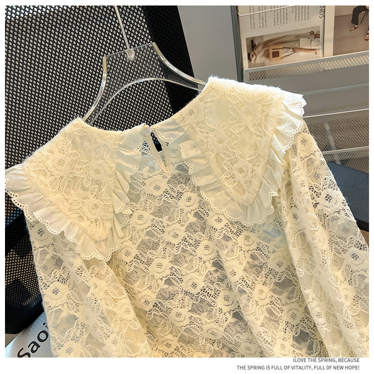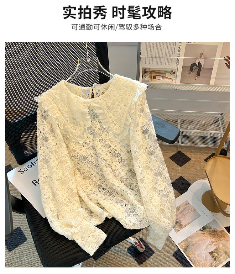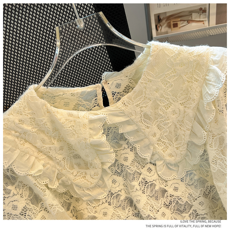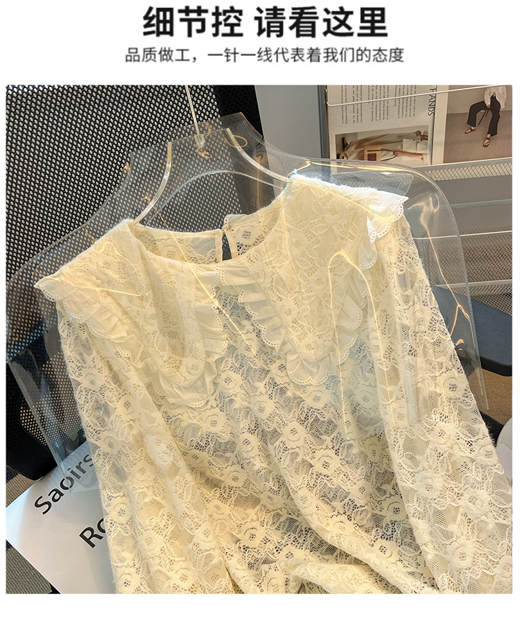 RM30475#法式高级感上衣2023年秋冬新款小个子娃娃领洋气蕾丝打底衫