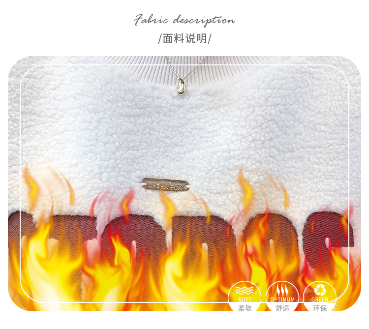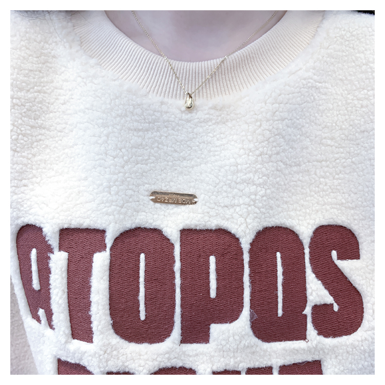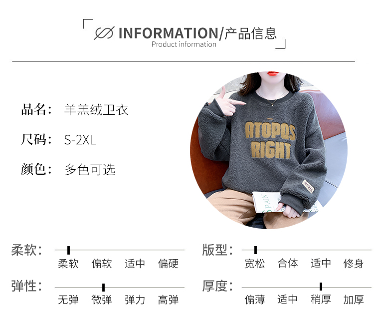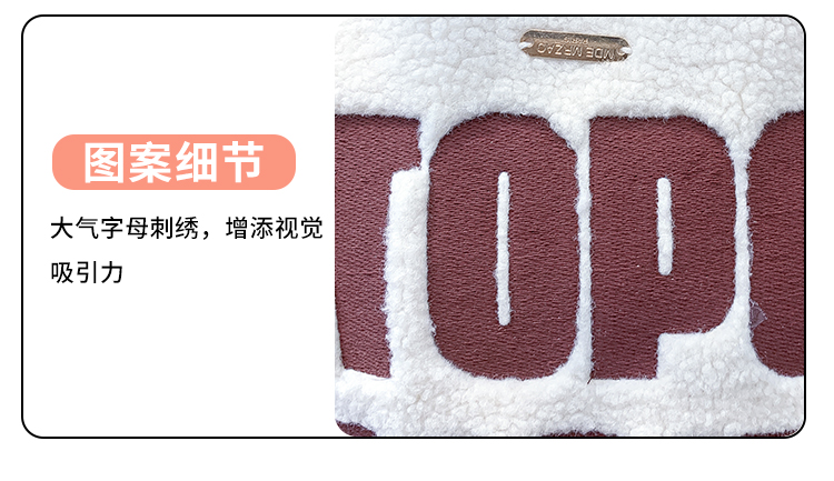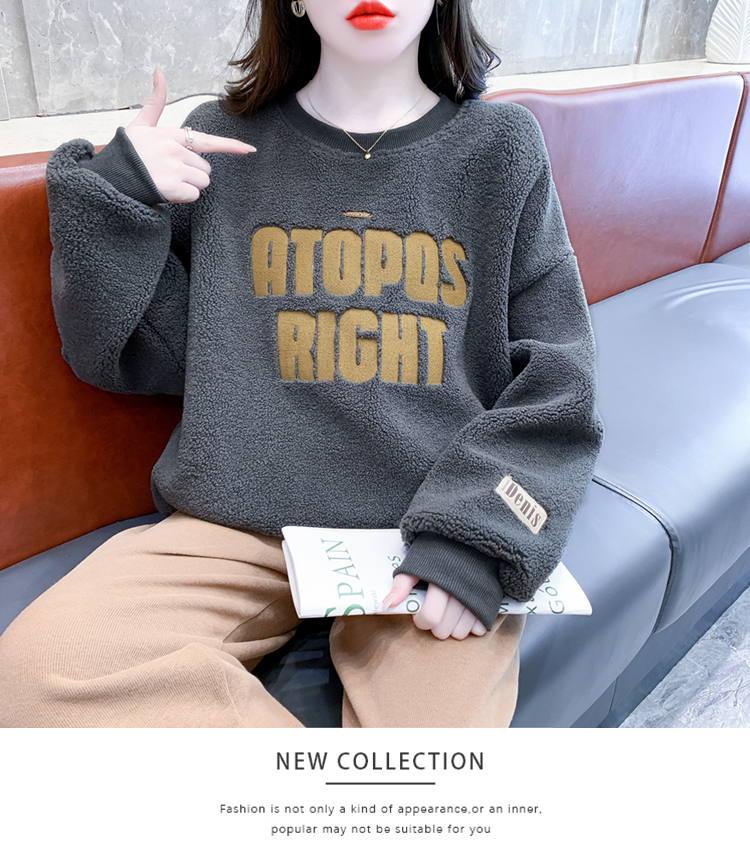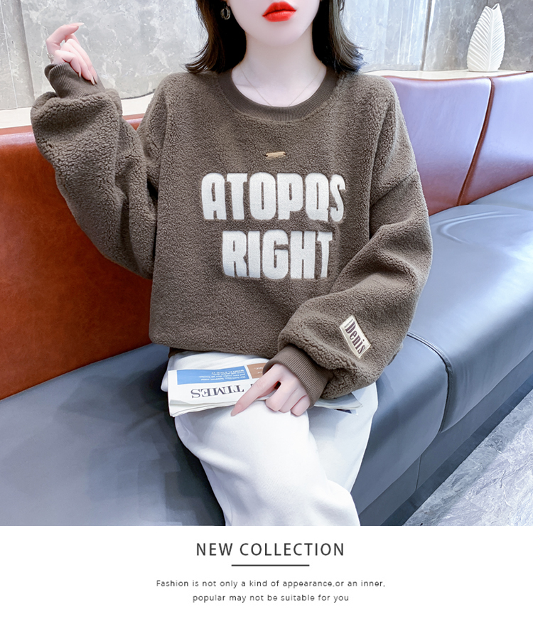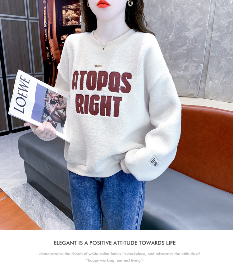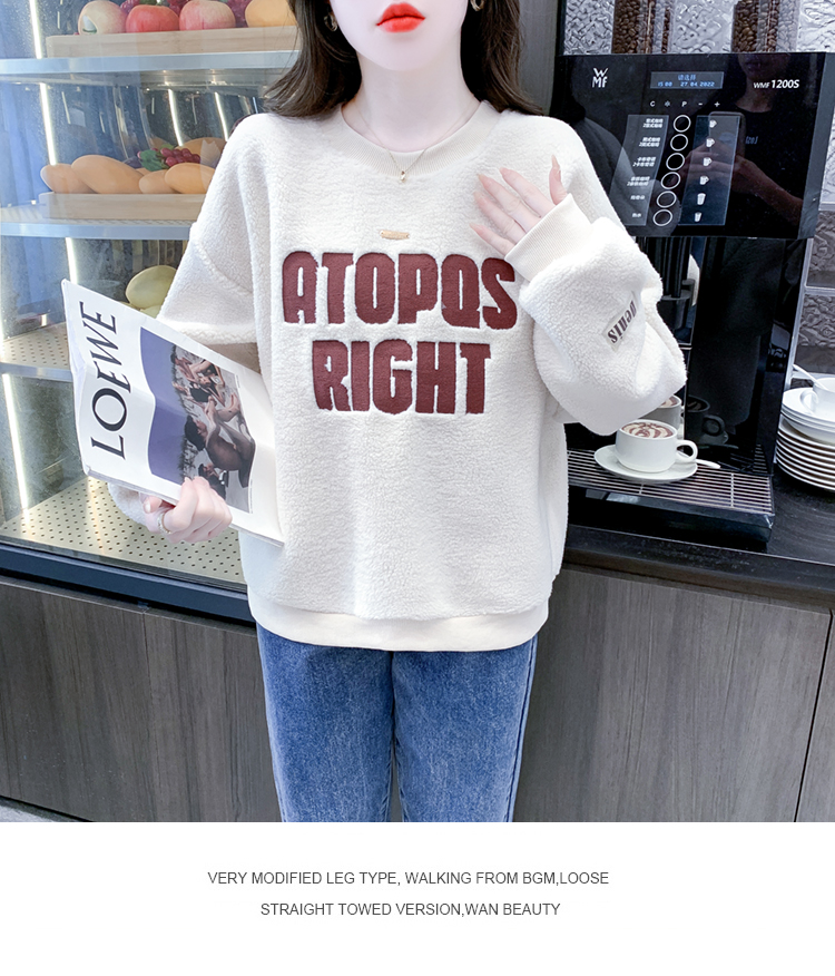 RM30481#设计感撞色字母圆领卫衣女2023冬新小个子宽松加厚羊羔绒上衣