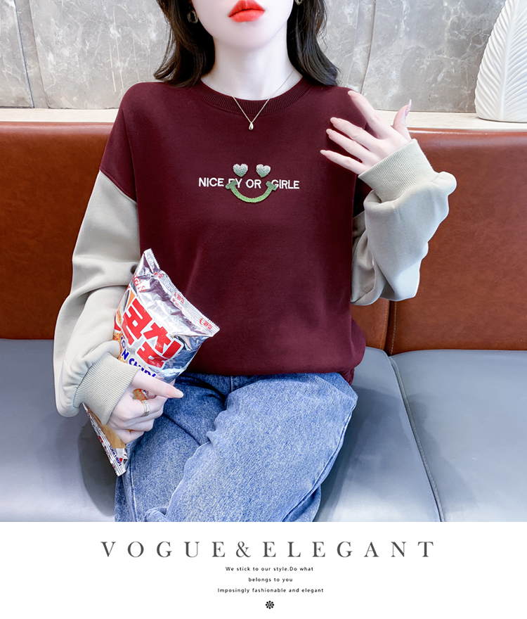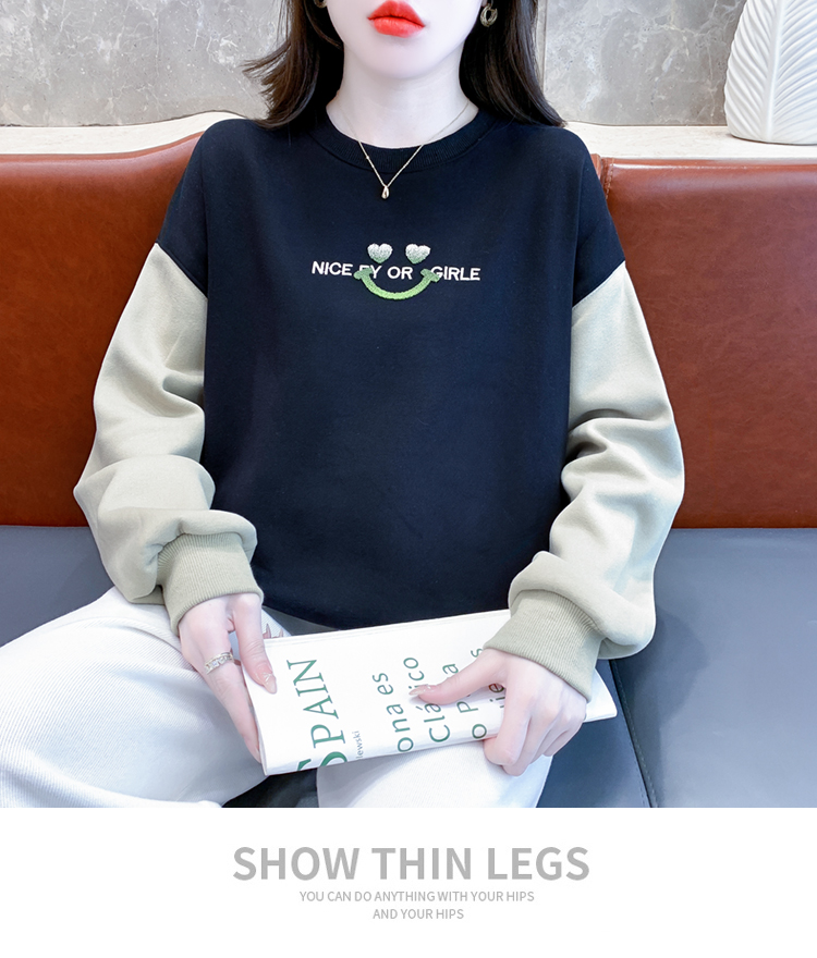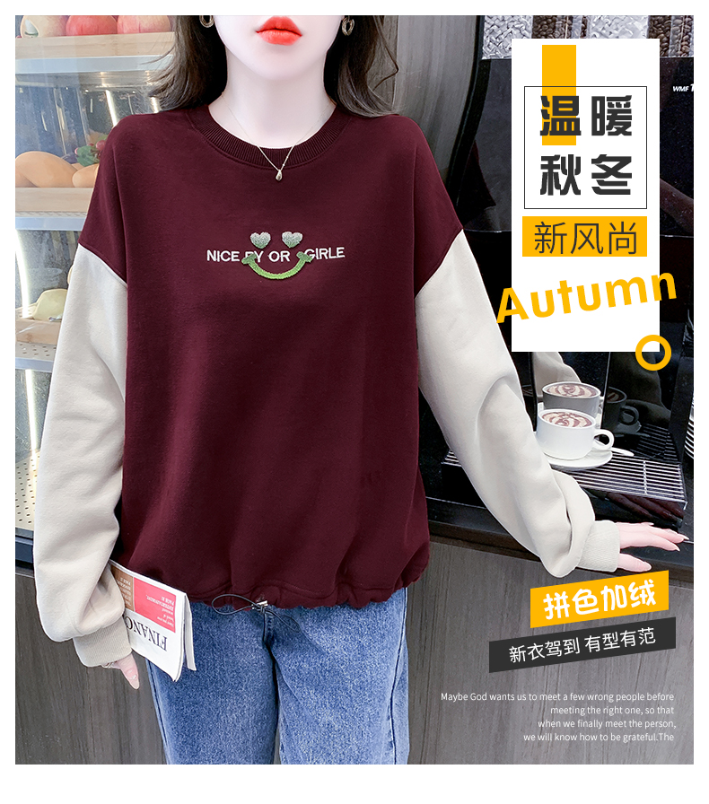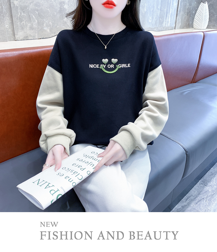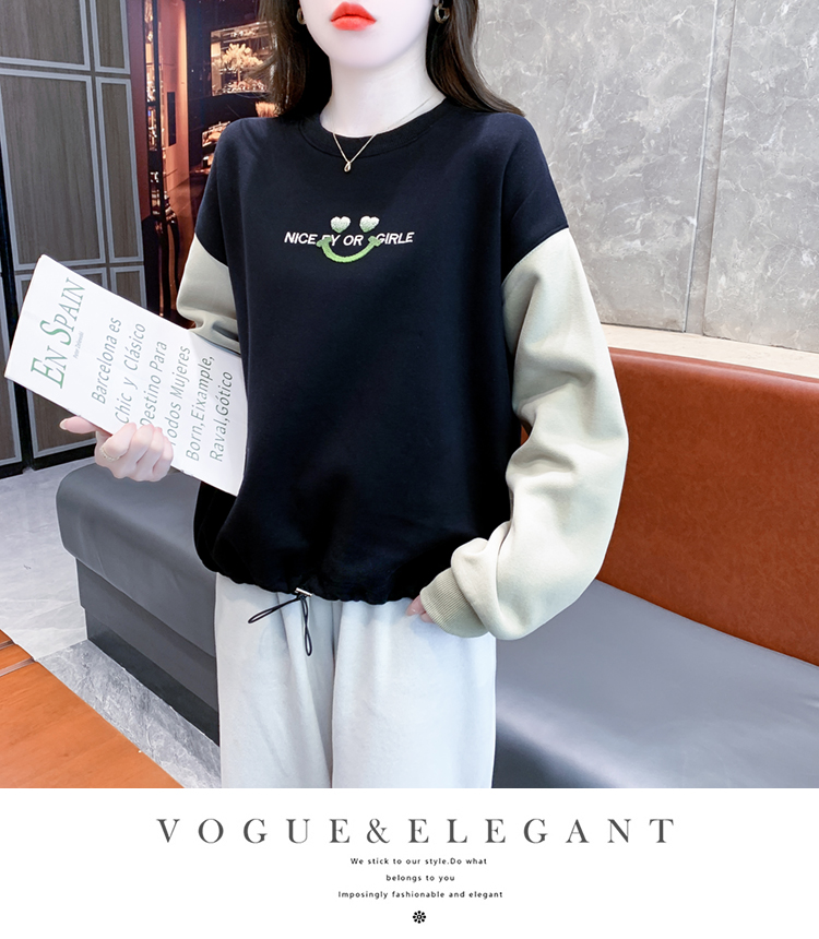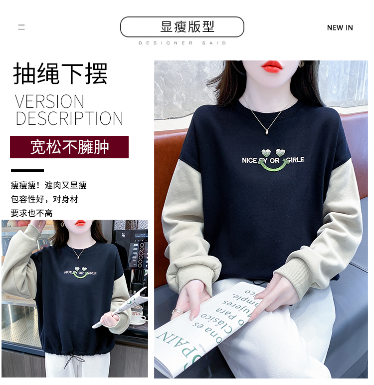 RM30482#长袖拼接撞色圆领卫衣女2023秋冬新款小个子宽松显瘦外套上衣