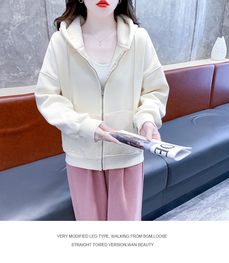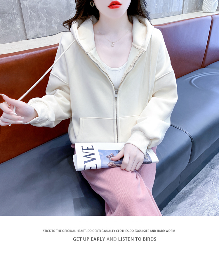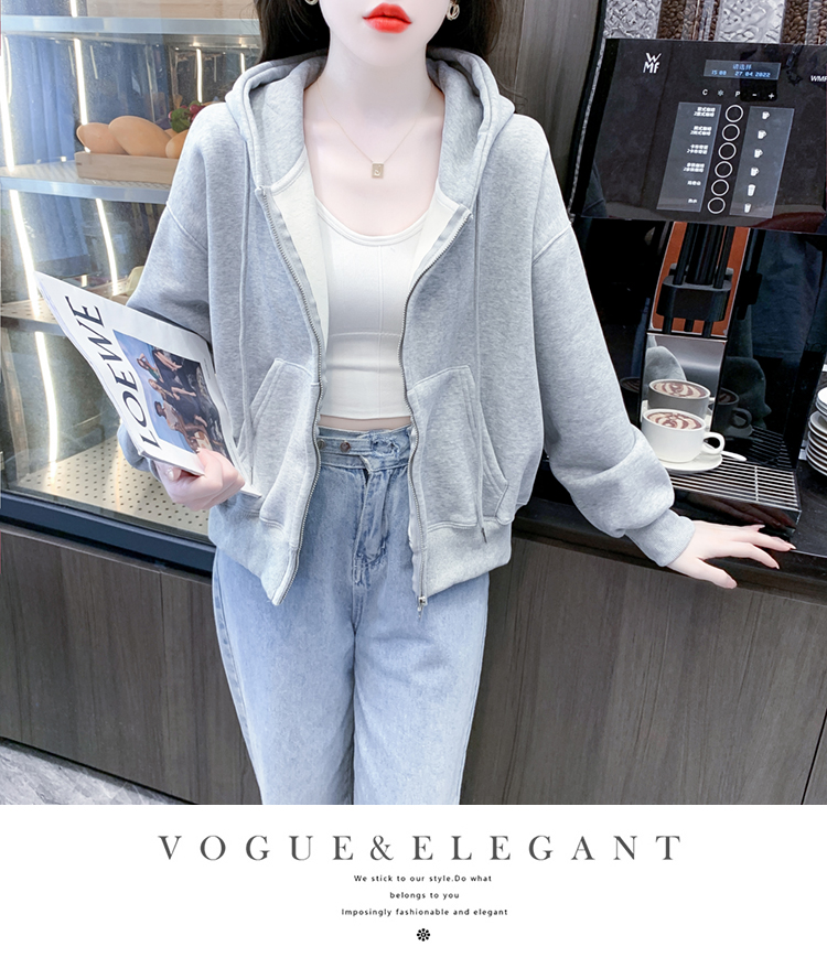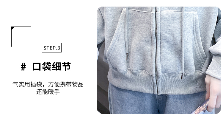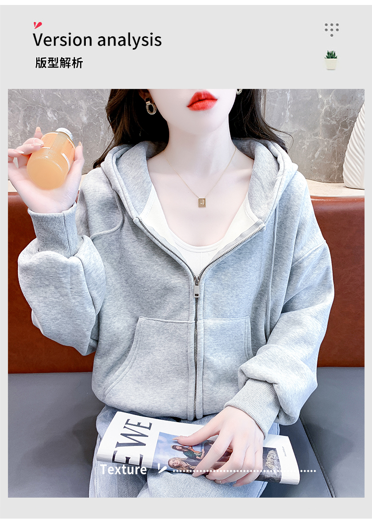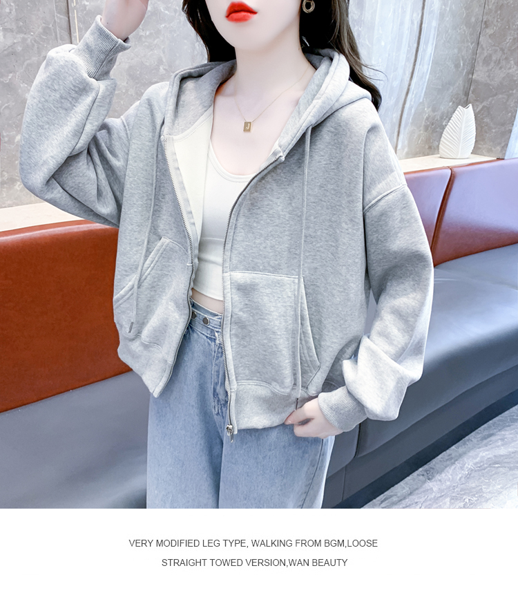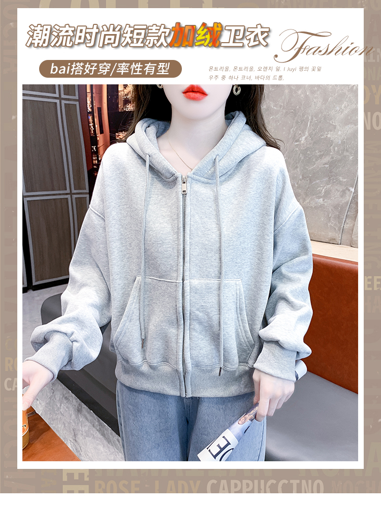 RM30484#休闲连帽卫衣外套女2023新款秋冬加绒加厚小个子港风复古上衣