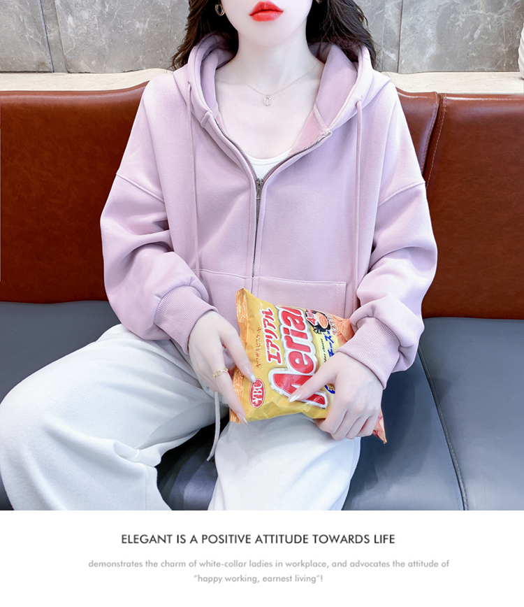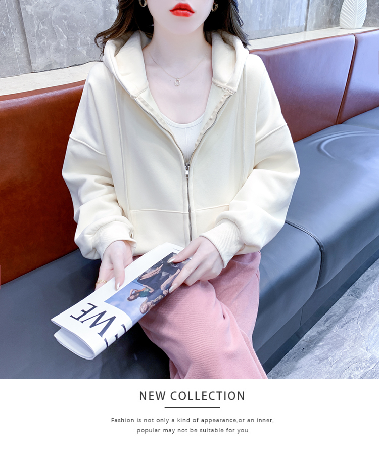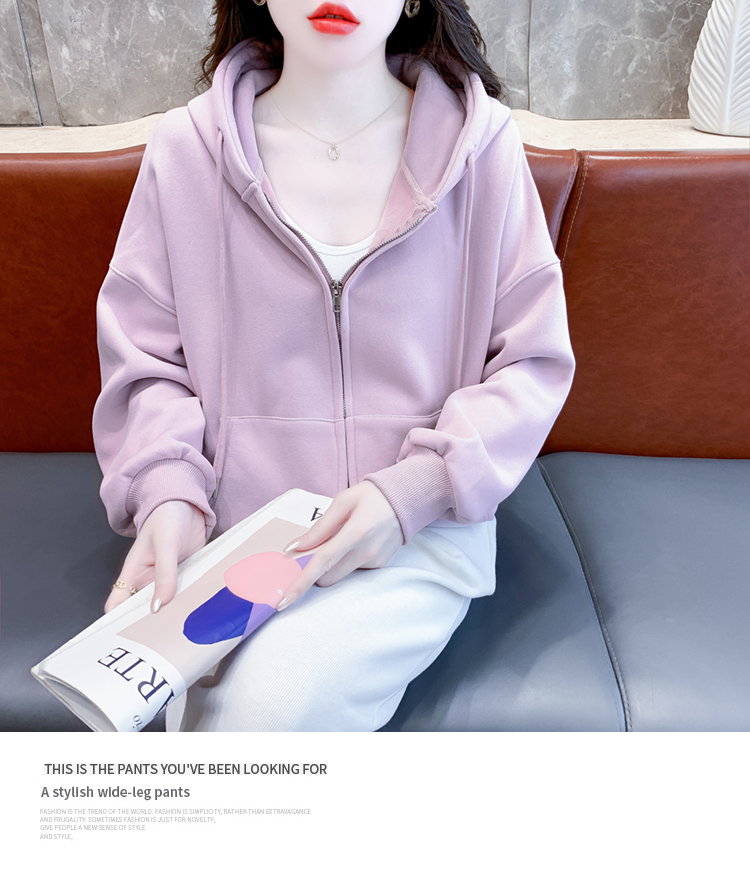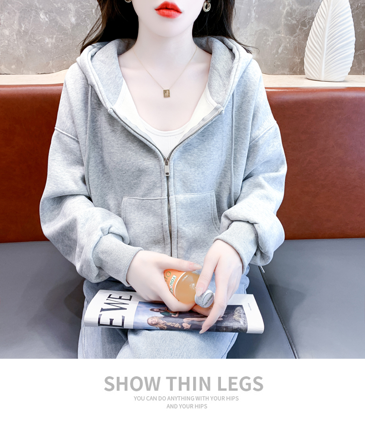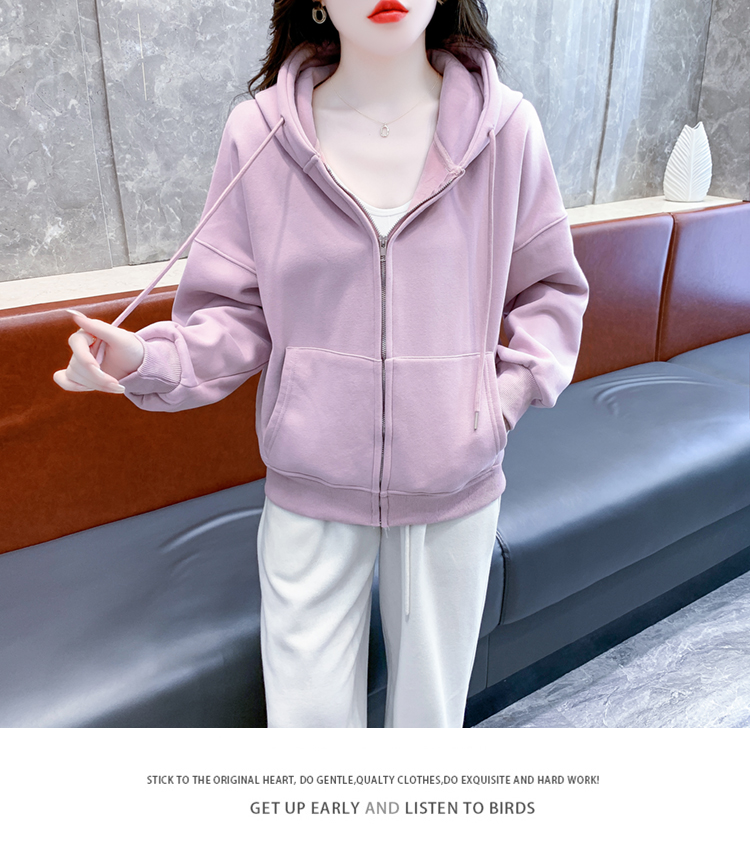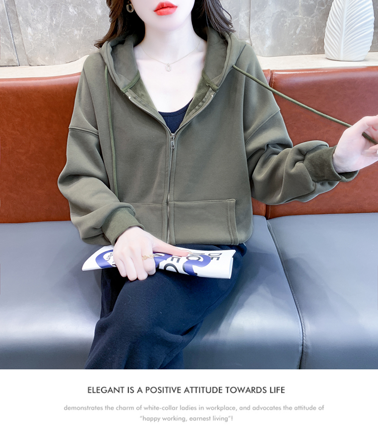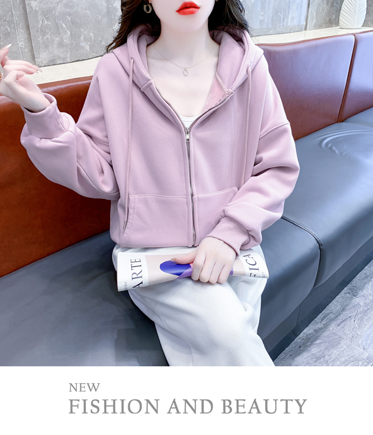 RM30484#休闲连帽卫衣外套女2023新款秋冬加绒加厚小个子港风复古上衣