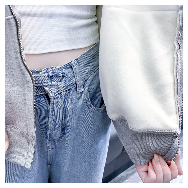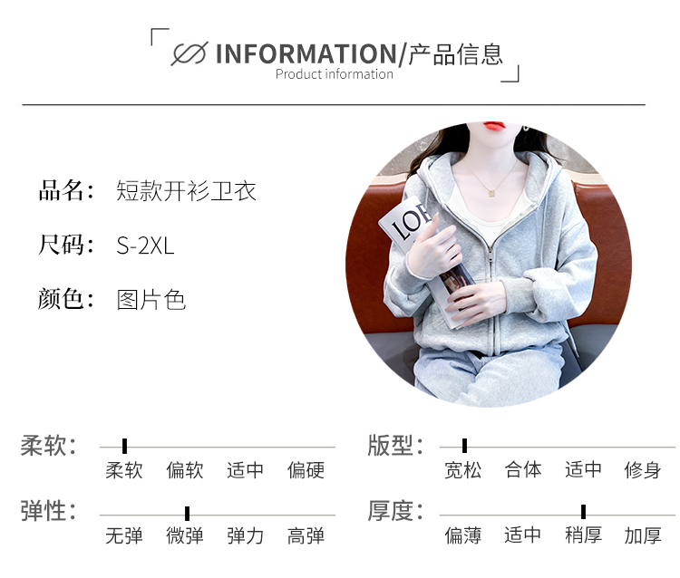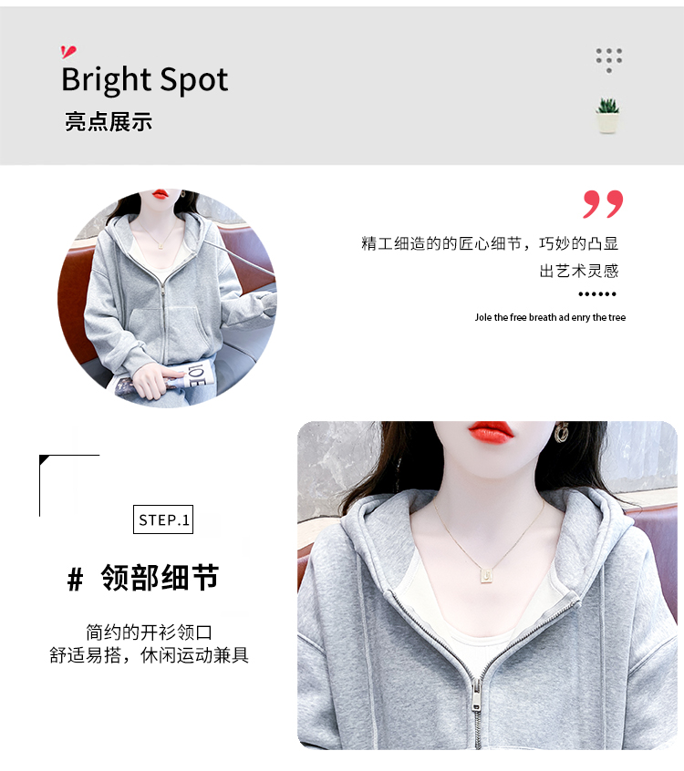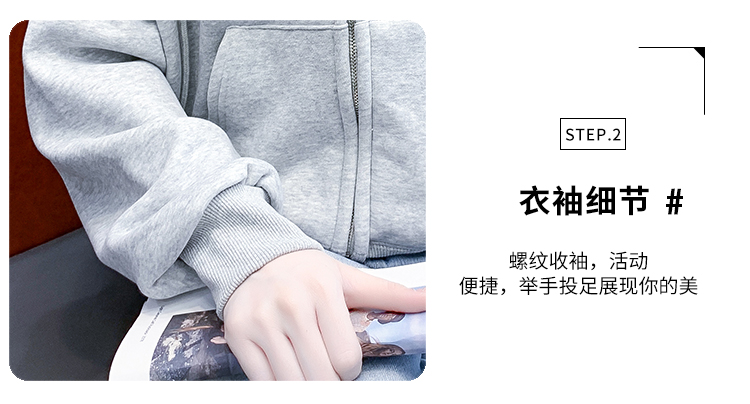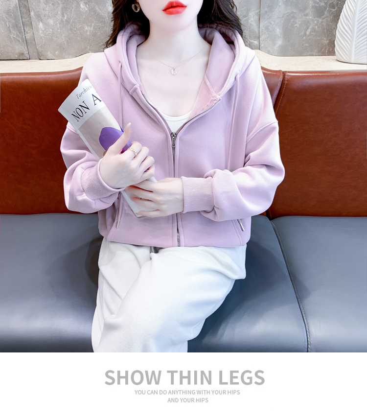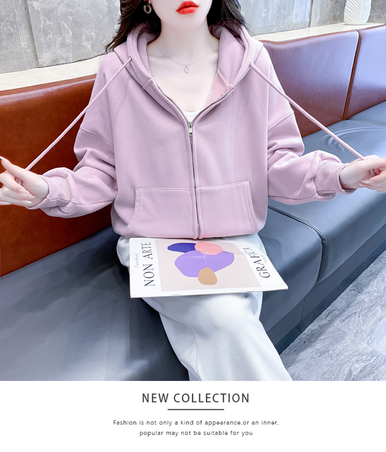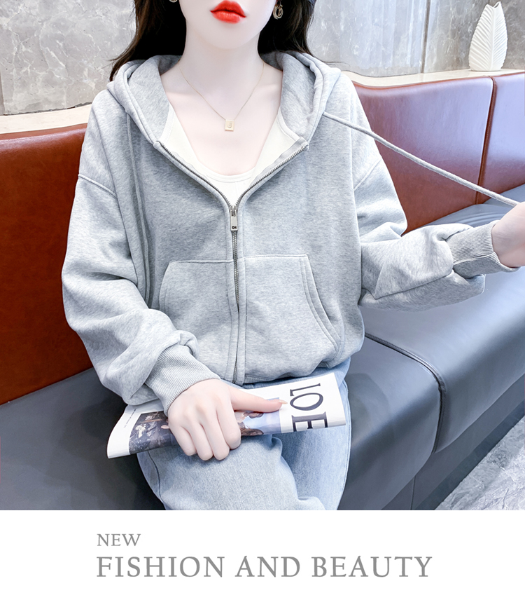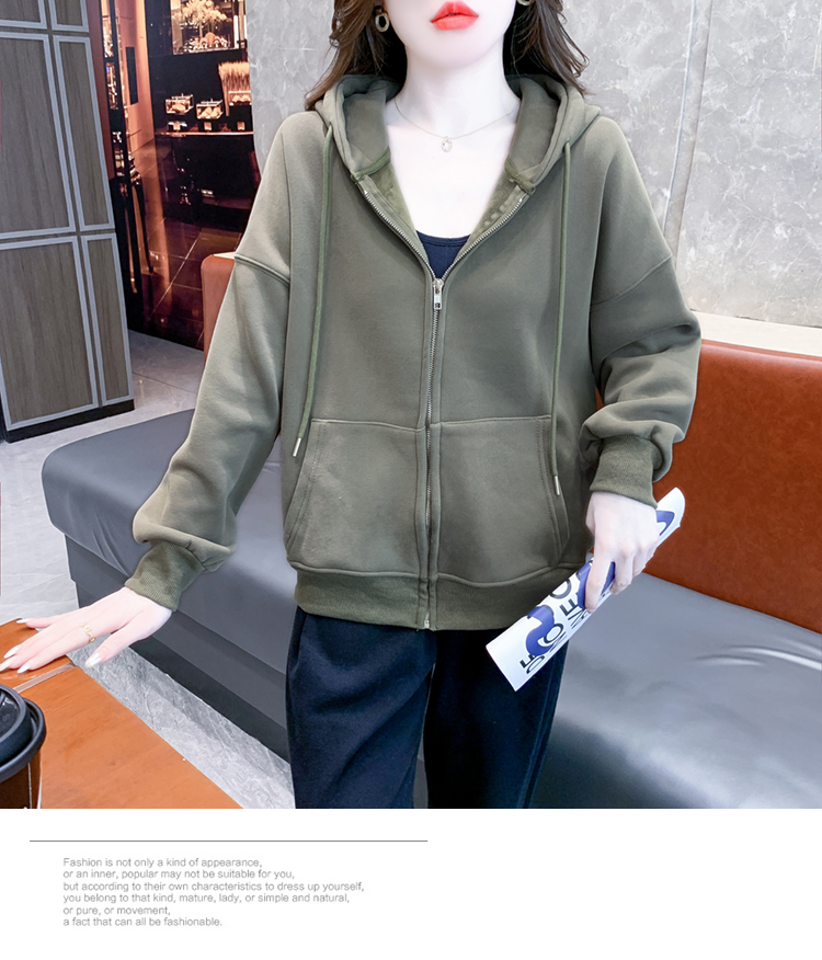 RM30484#休闲连帽卫衣外套女2023新款秋冬加绒加厚小个子港风复古上衣