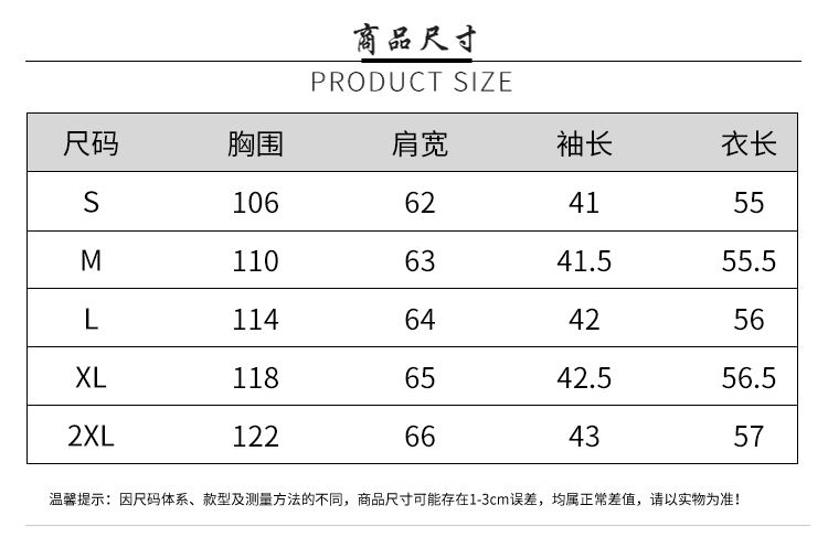 因裁剪工艺和丈量手法不同,可能存在1~3CM 左右误差,尺码仅供参考,以实物为准