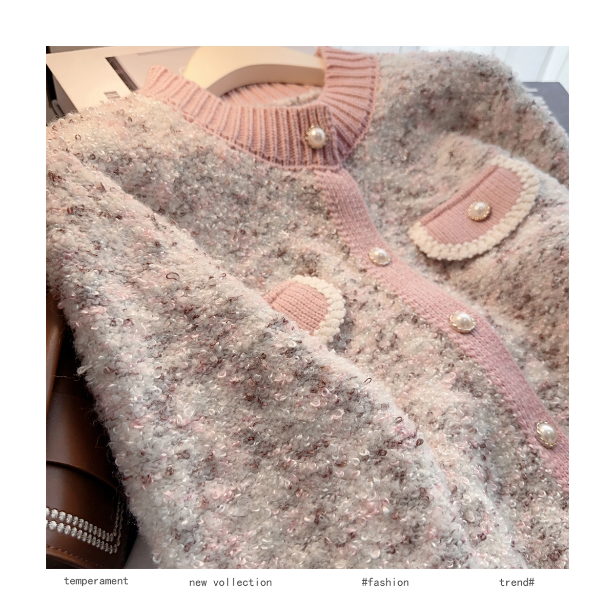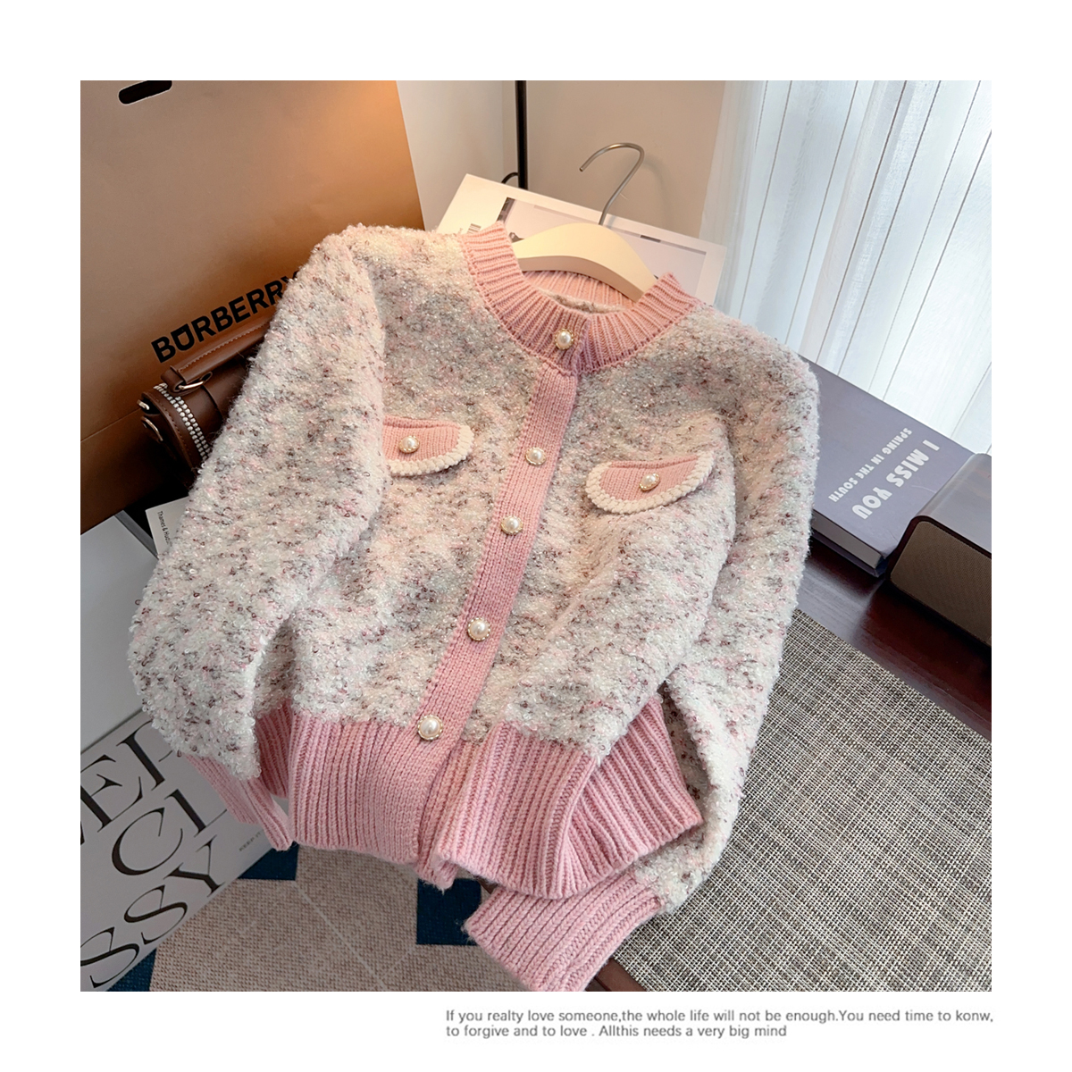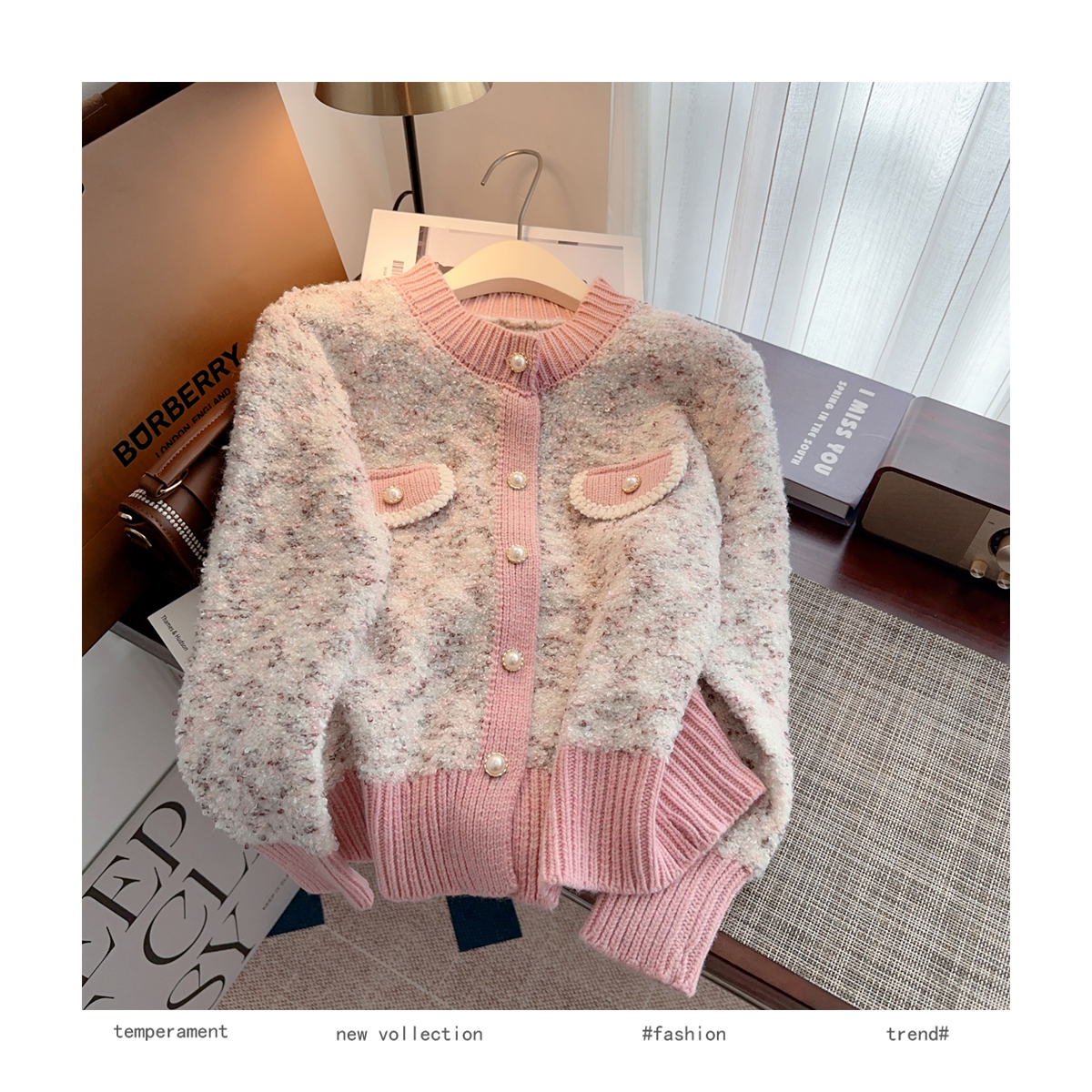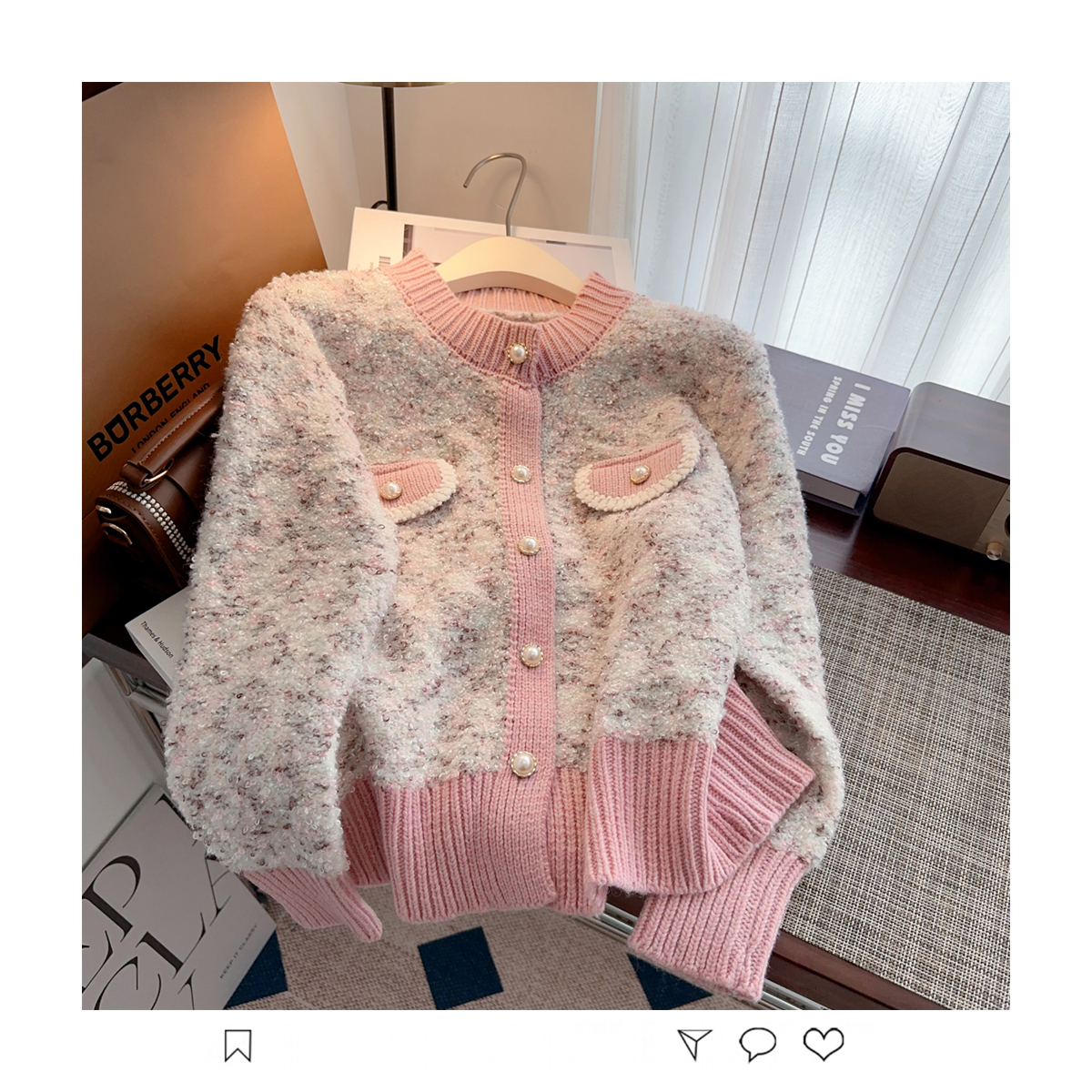 RM30521#小香风撞色毛衣外套2023秋冬新款加厚高级感温柔针织开衫女