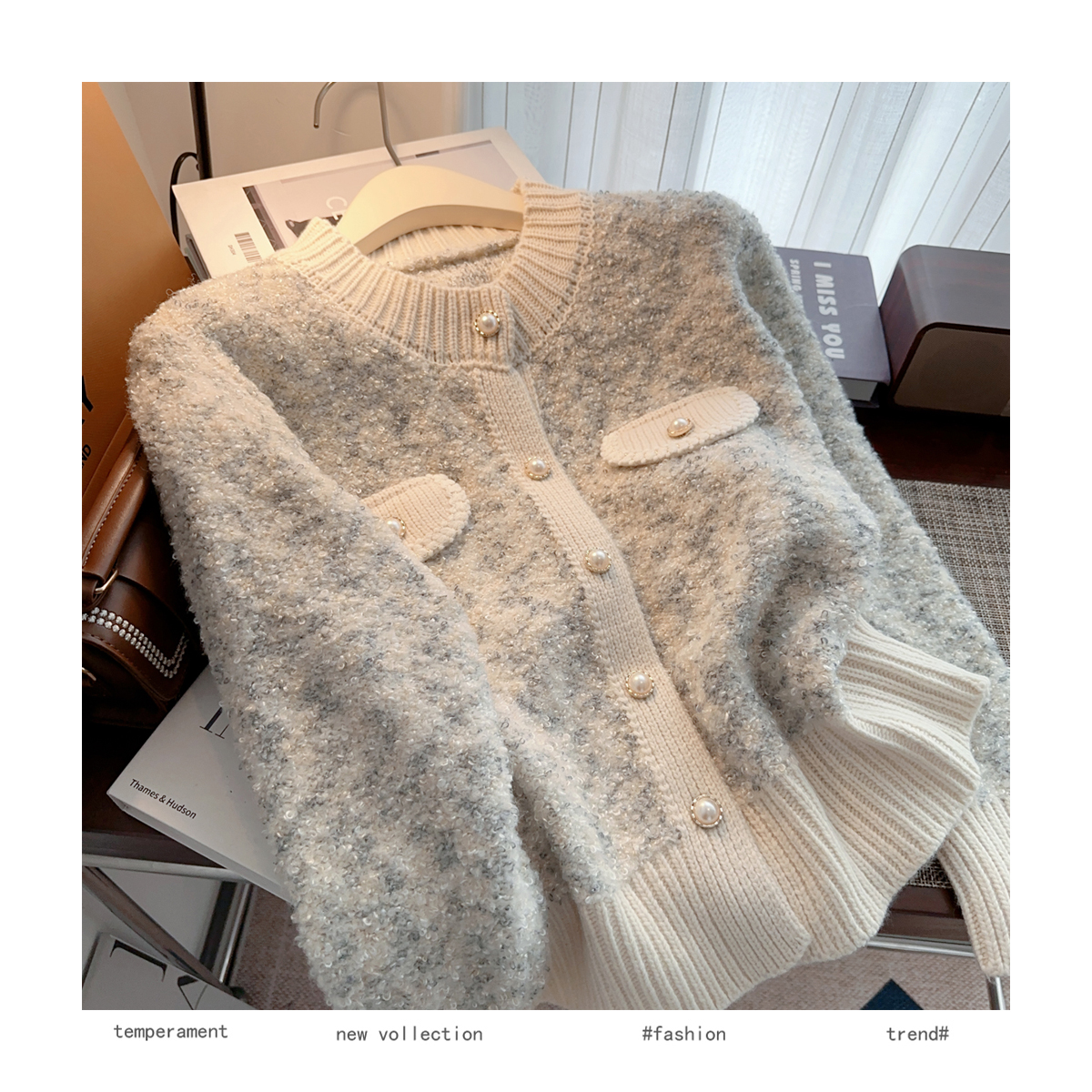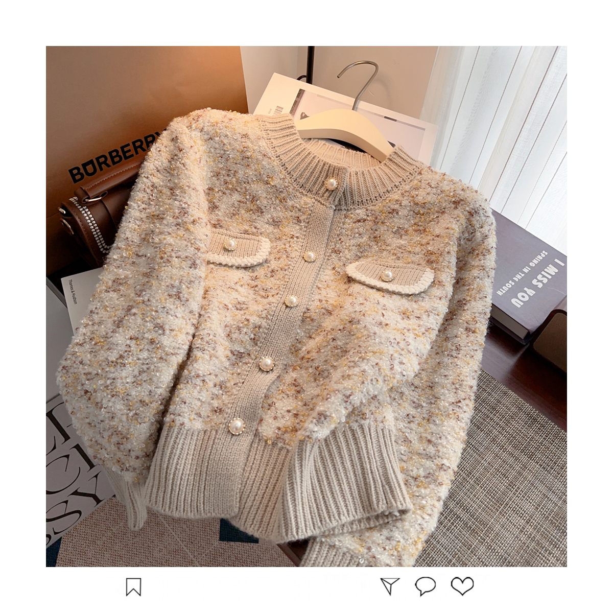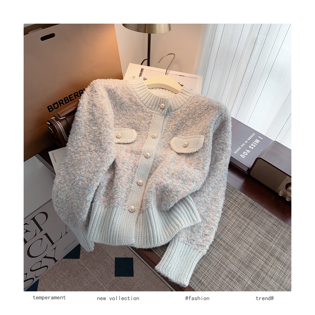 RM30521#小香风撞色毛衣外套2023秋冬新款加厚高级感温柔针织开衫女