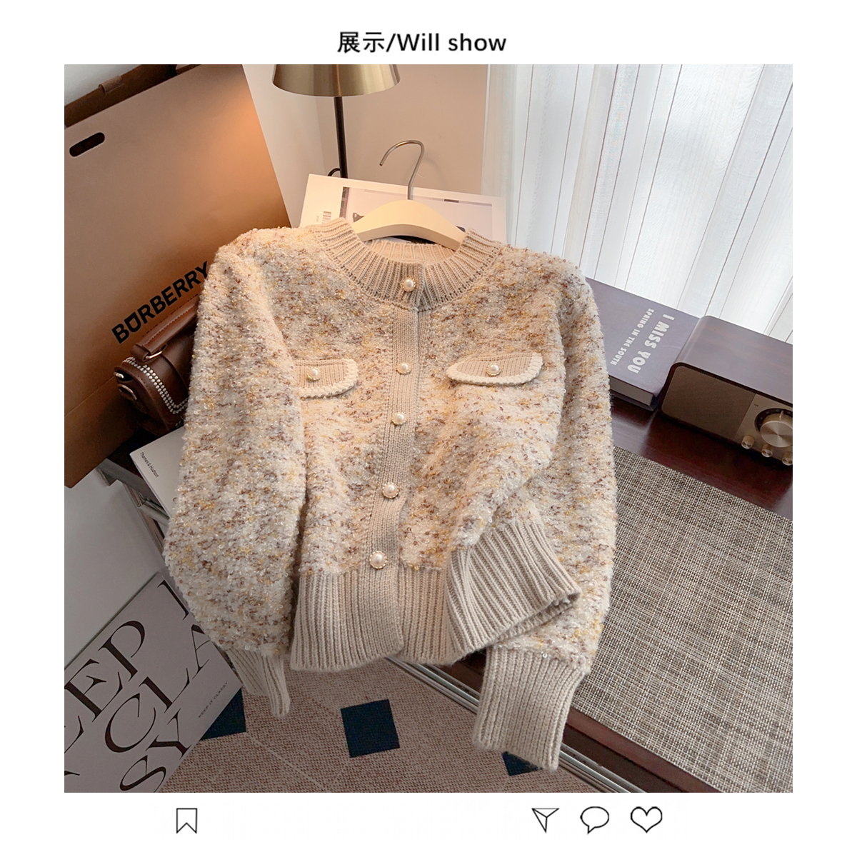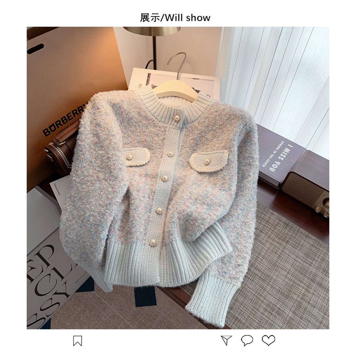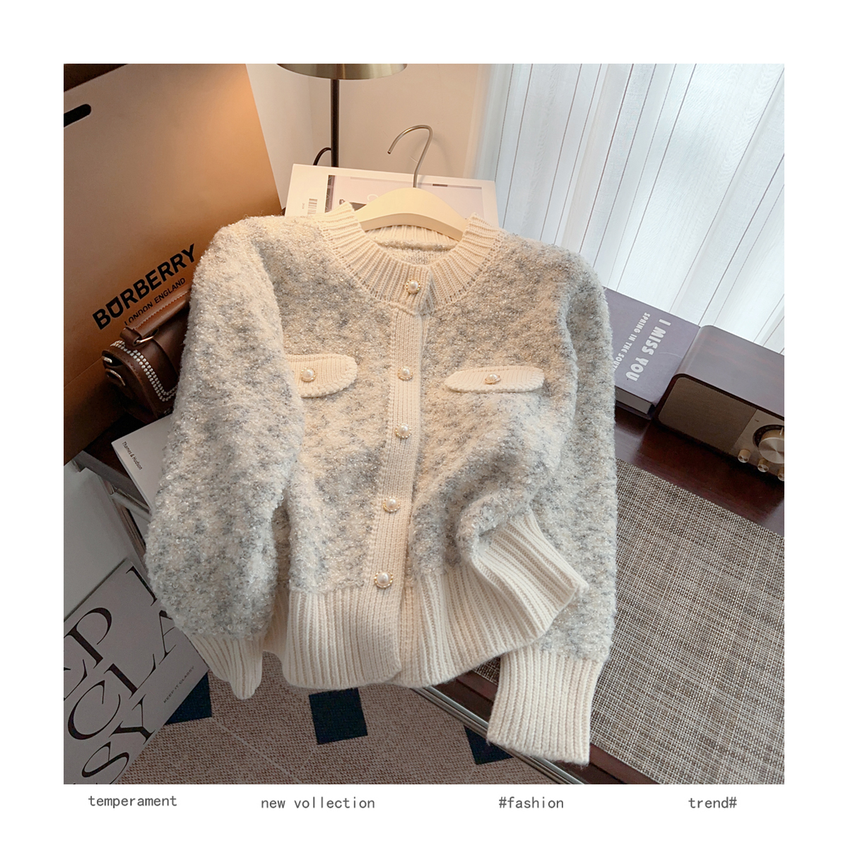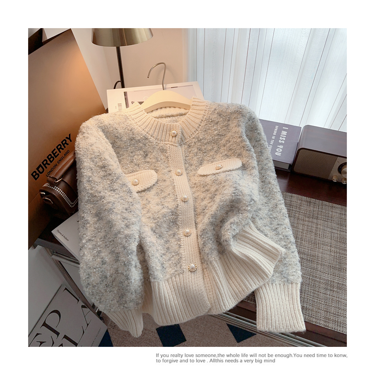 RM30521#小香风撞色毛衣外套2023秋冬新款加厚高级感温柔针织开衫女