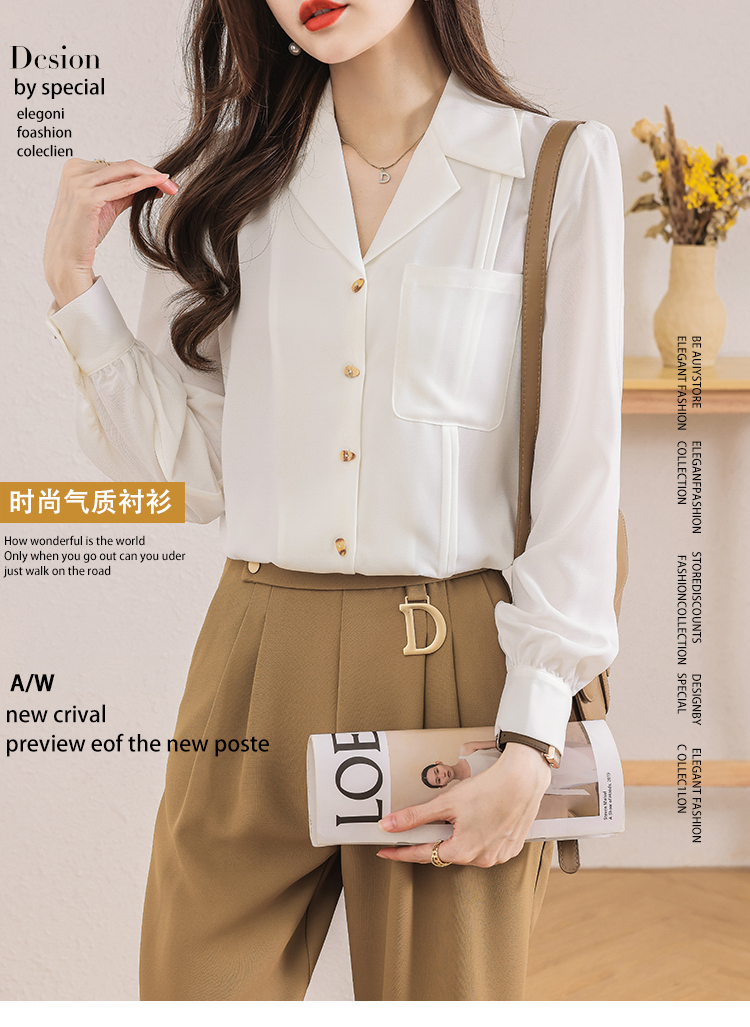RY2629#缎面长袖衬衫女秋款高级复古气质衬衣设计感小众法式上衣