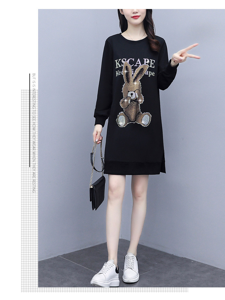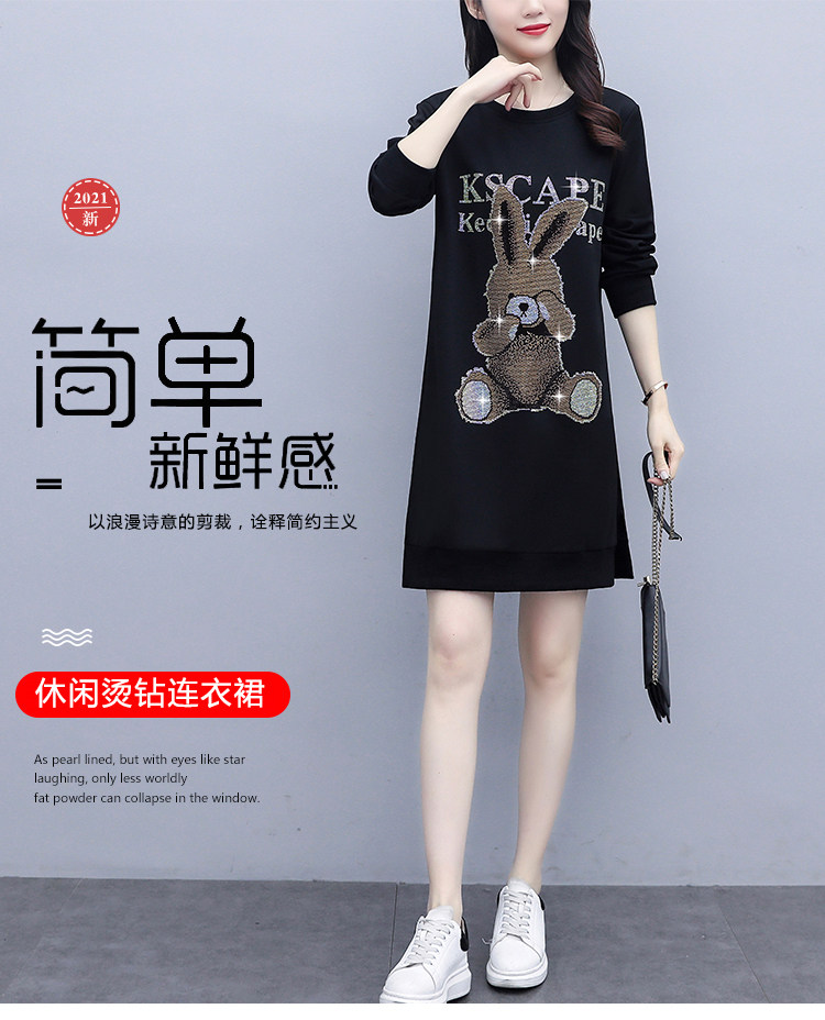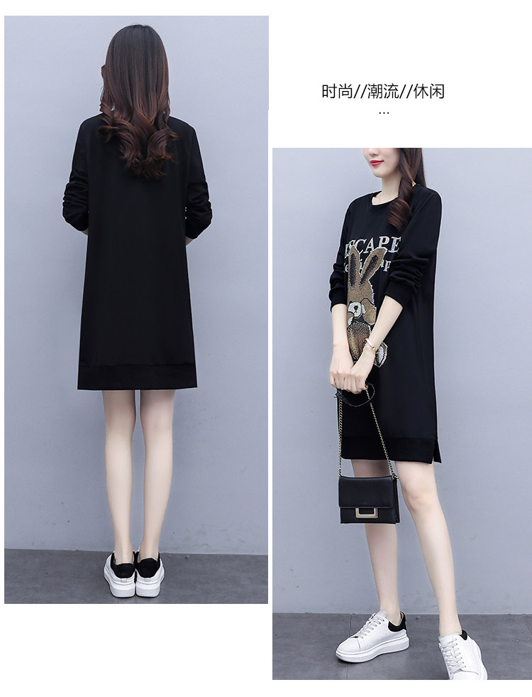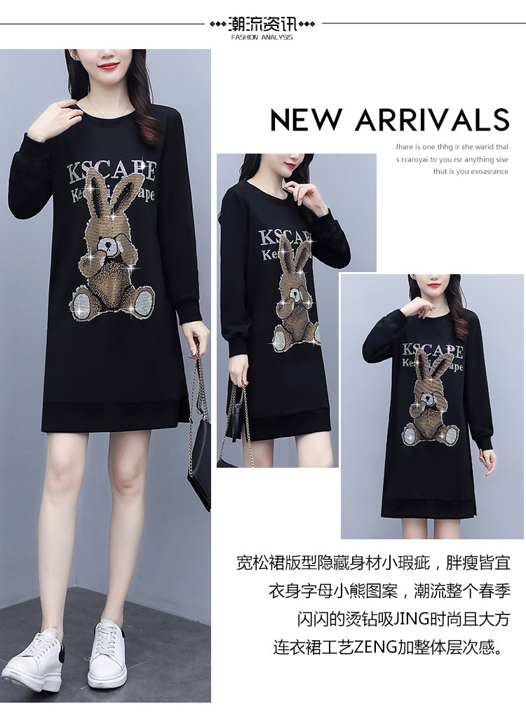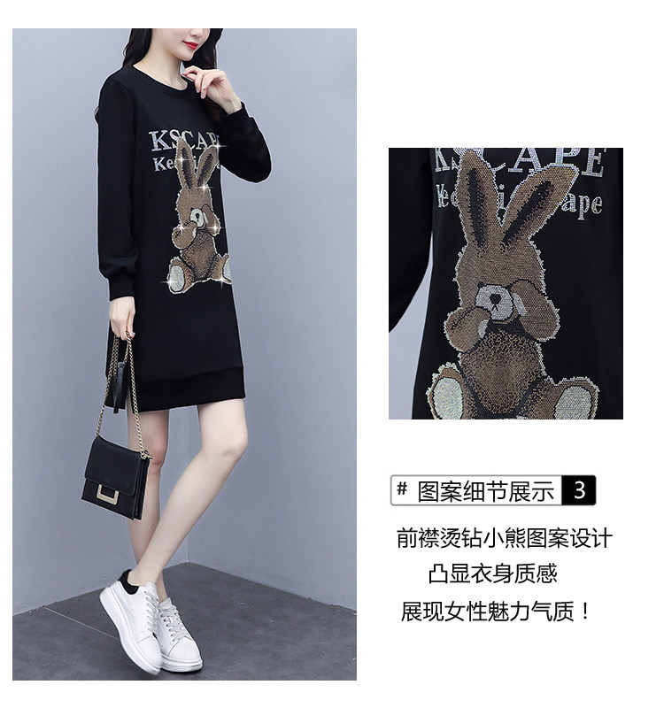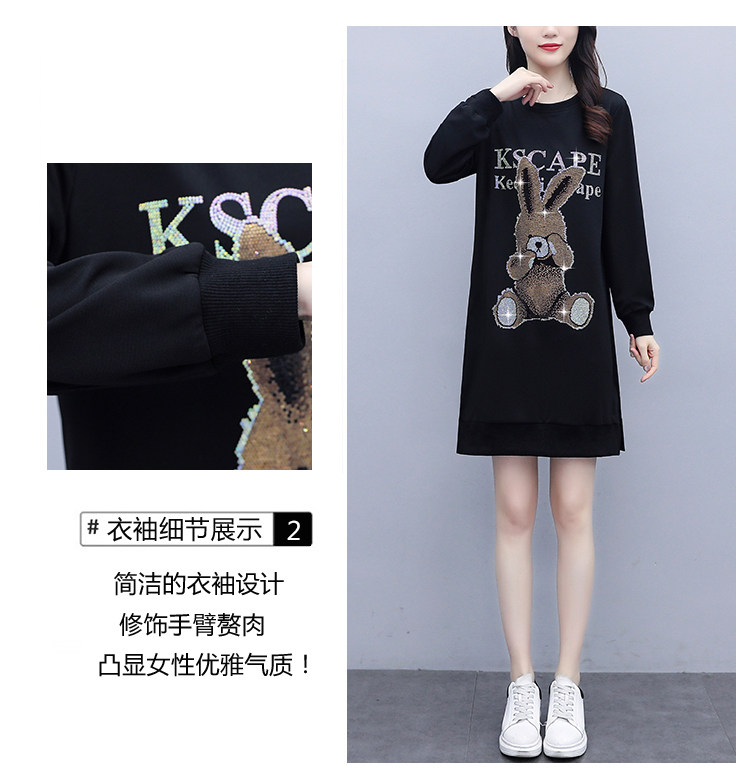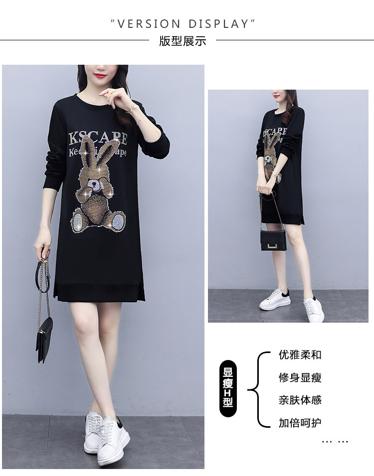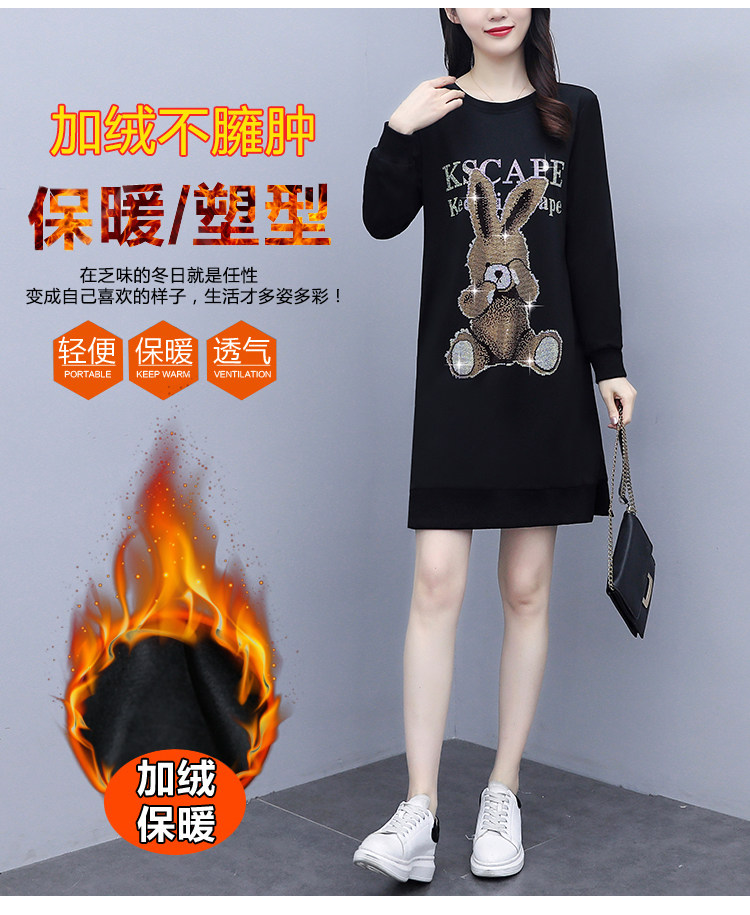 RM30578#新款大码女装加绒加厚宽时尚松显瘦重工烫钻连衣裙
