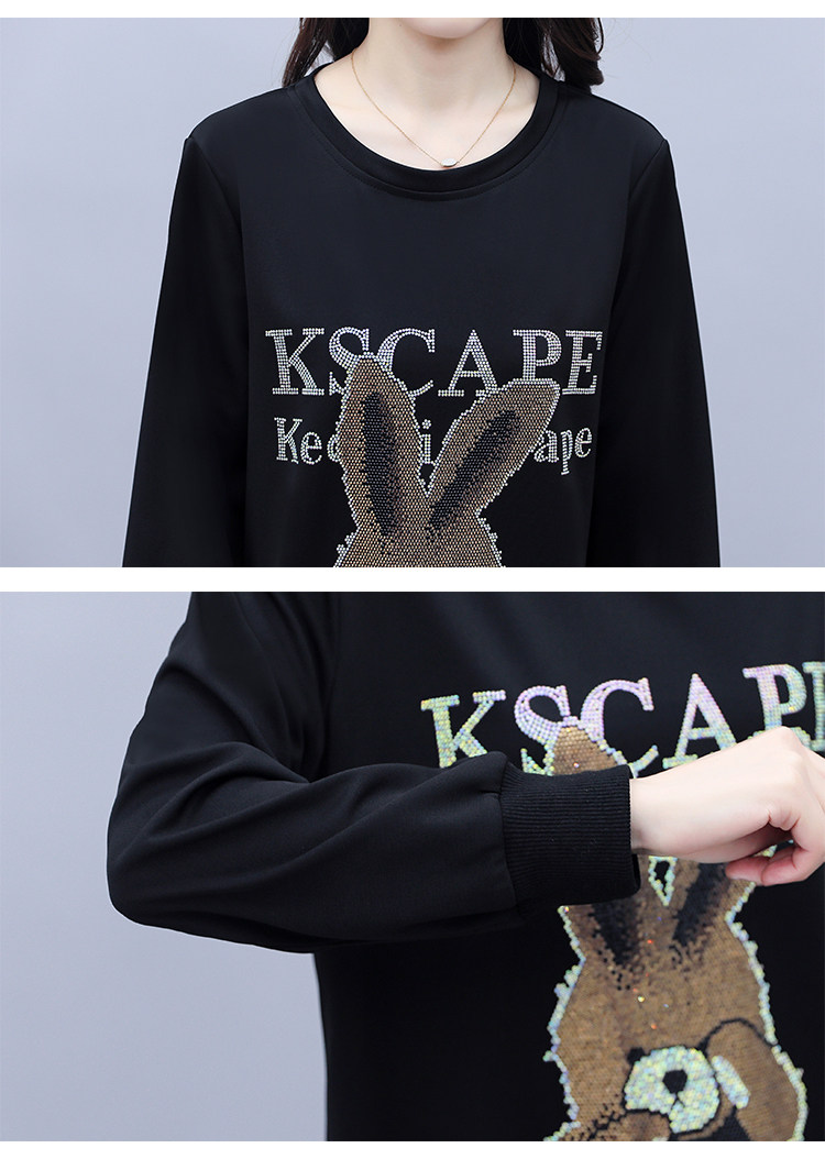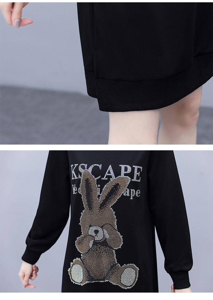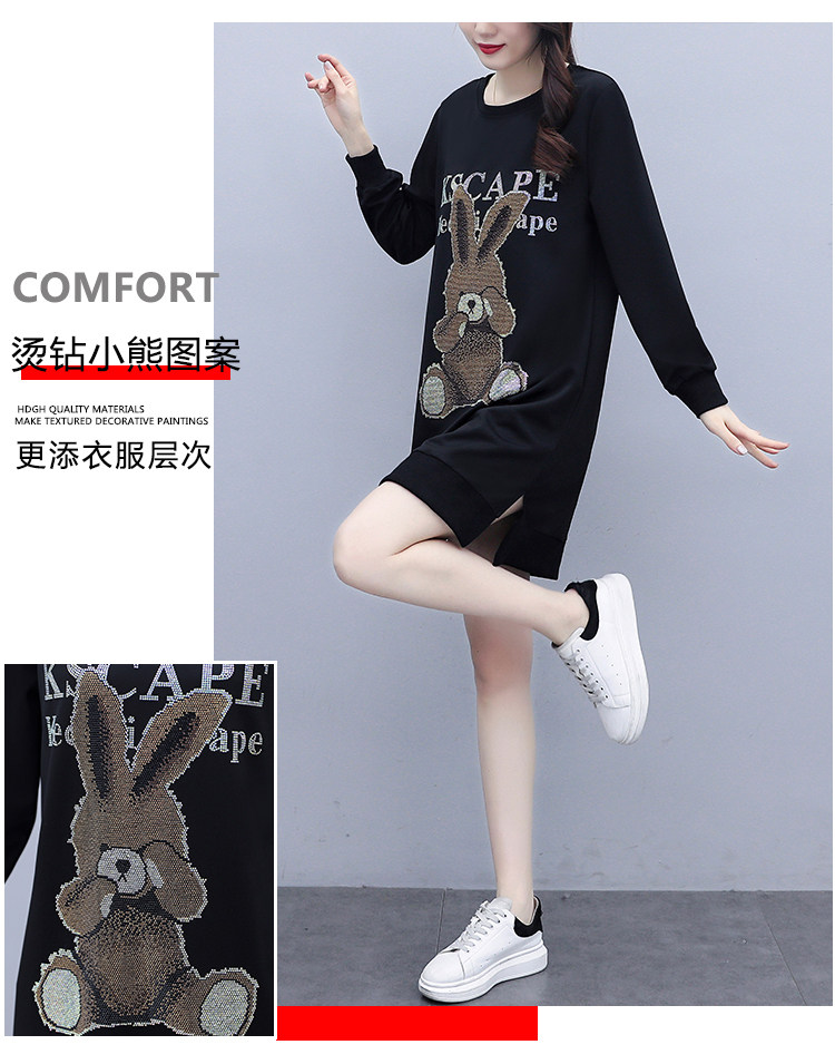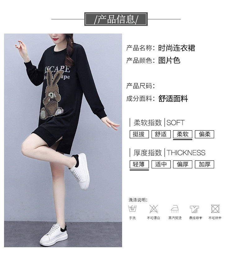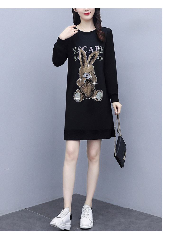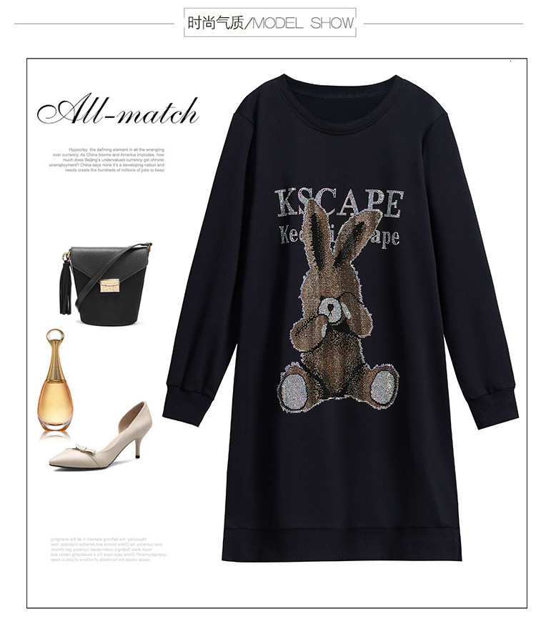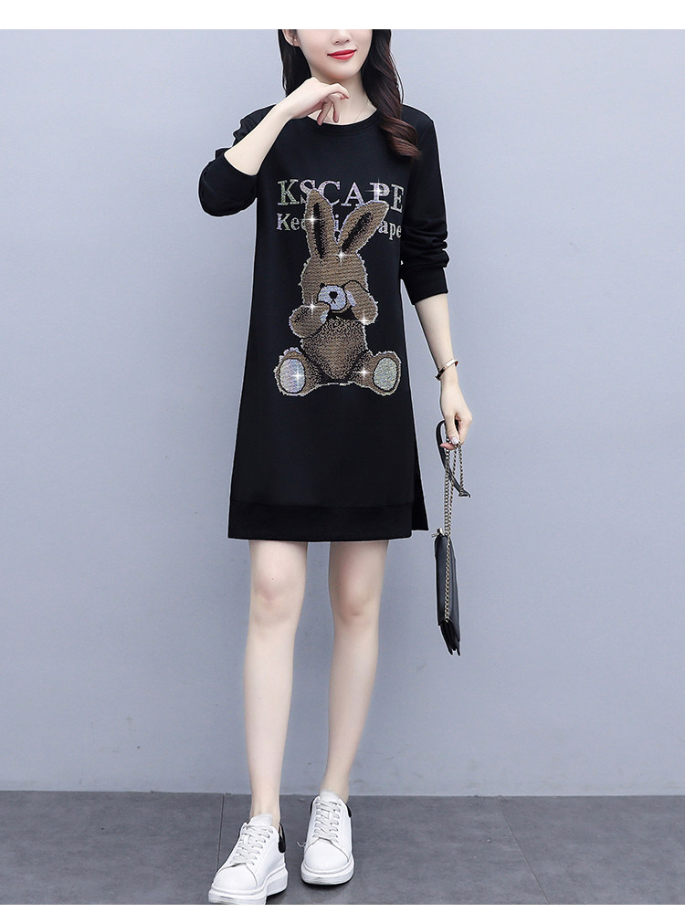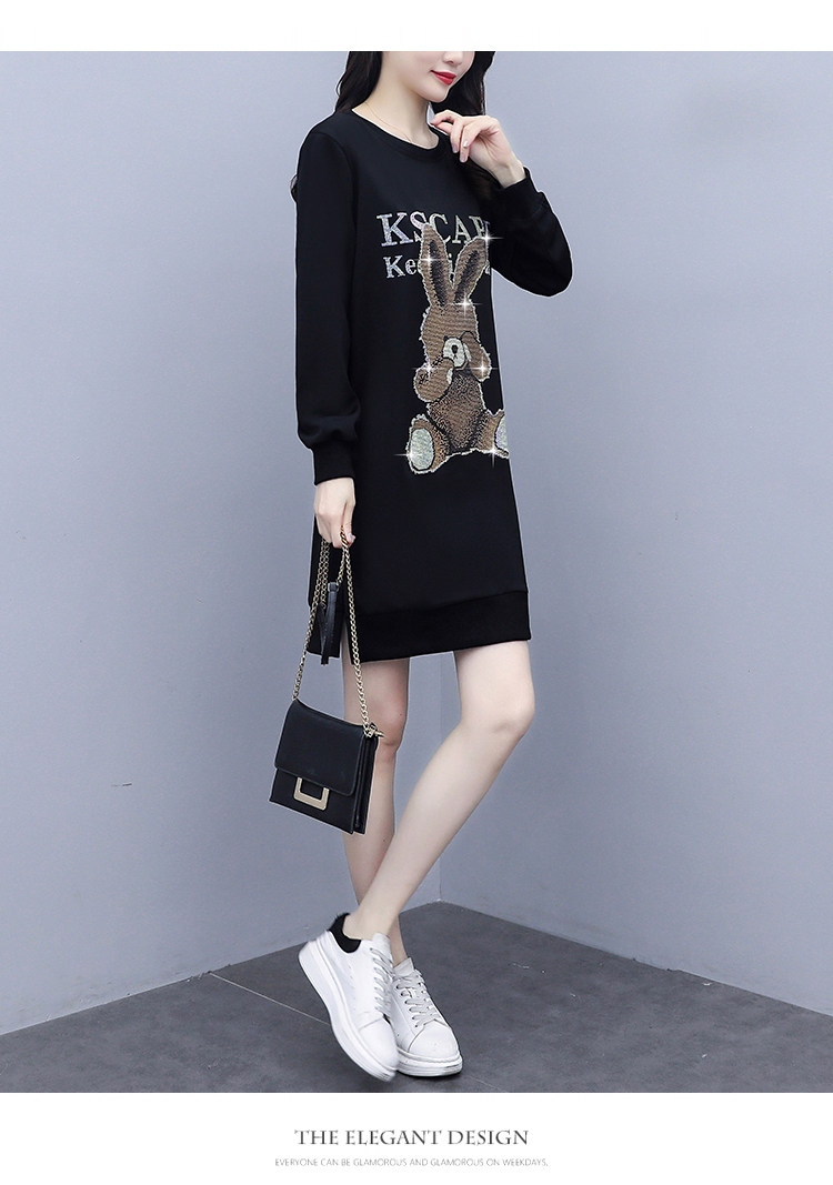 RM30578#新款大码女装加绒加厚宽时尚松显瘦重工烫钻连衣裙