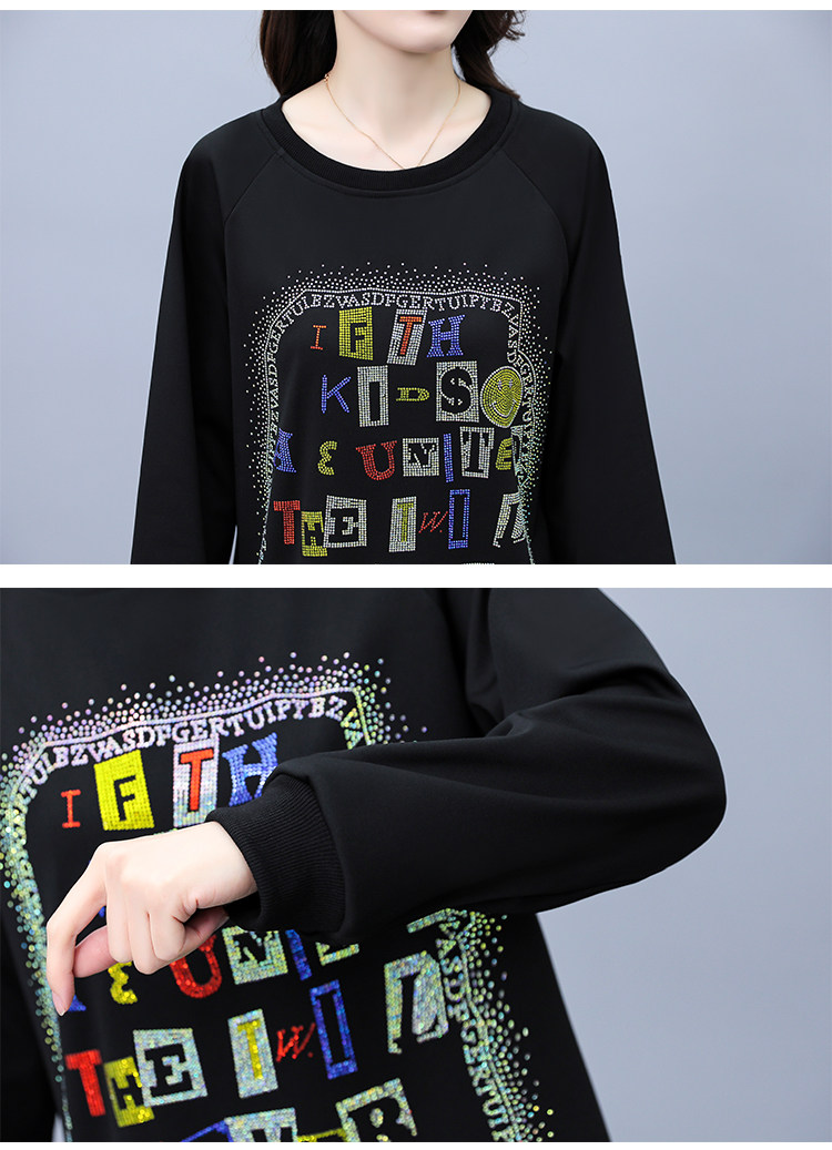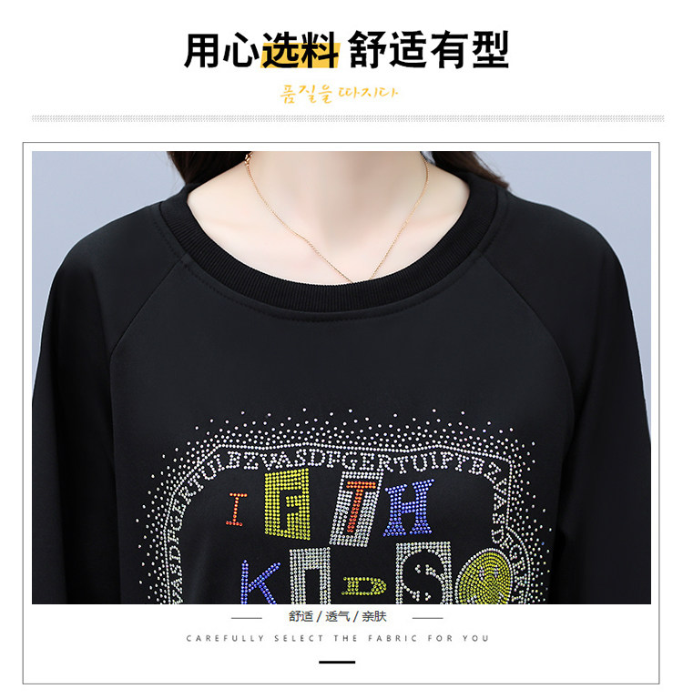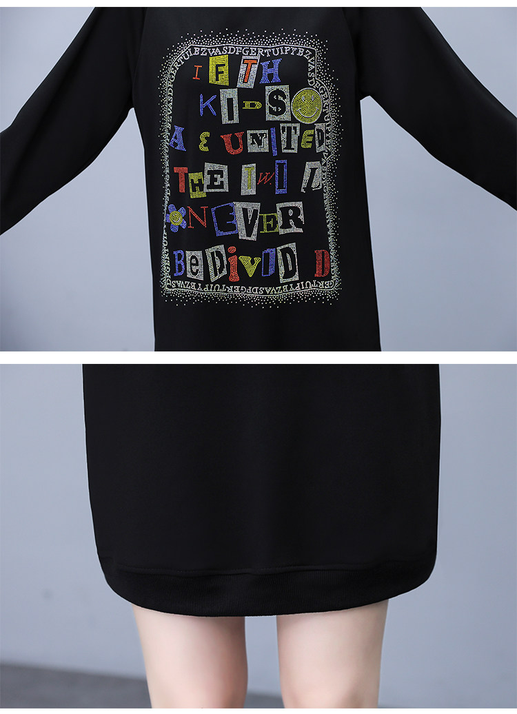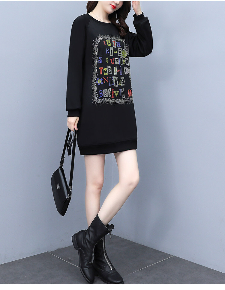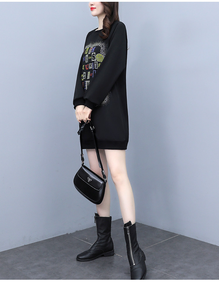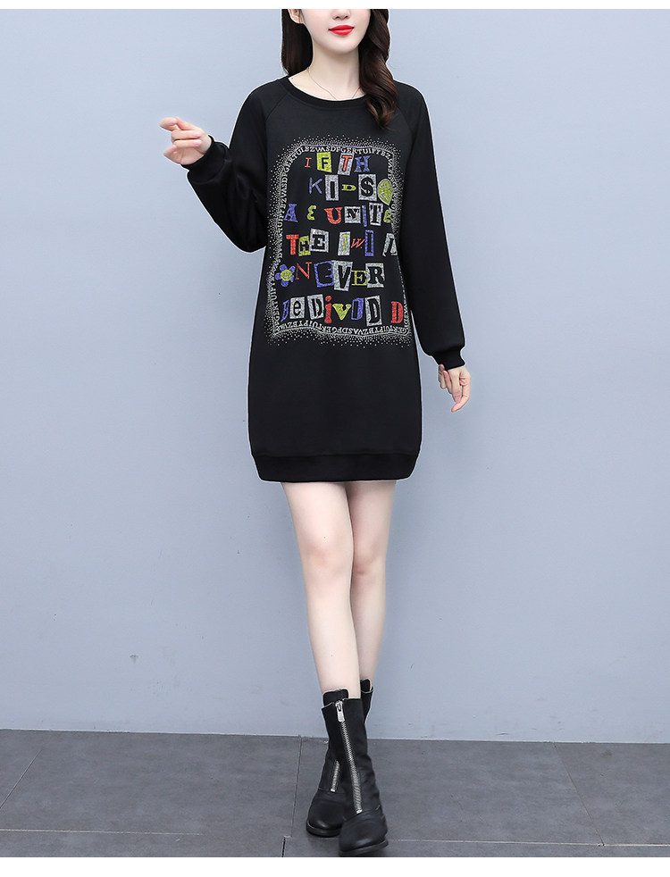 RM30582#大码2023年秋冬新款烫钻时尚百搭园领加绒加厚中长款卫衣裙
