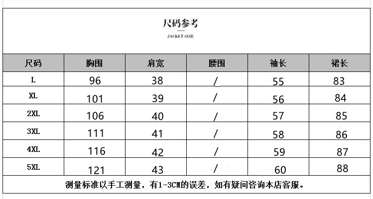 因裁剪工艺和丈量手法不同,可能存在1~3CM 左右误差,尺码仅供参考,以实物为准