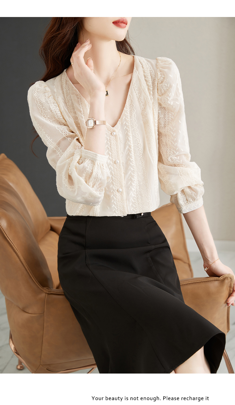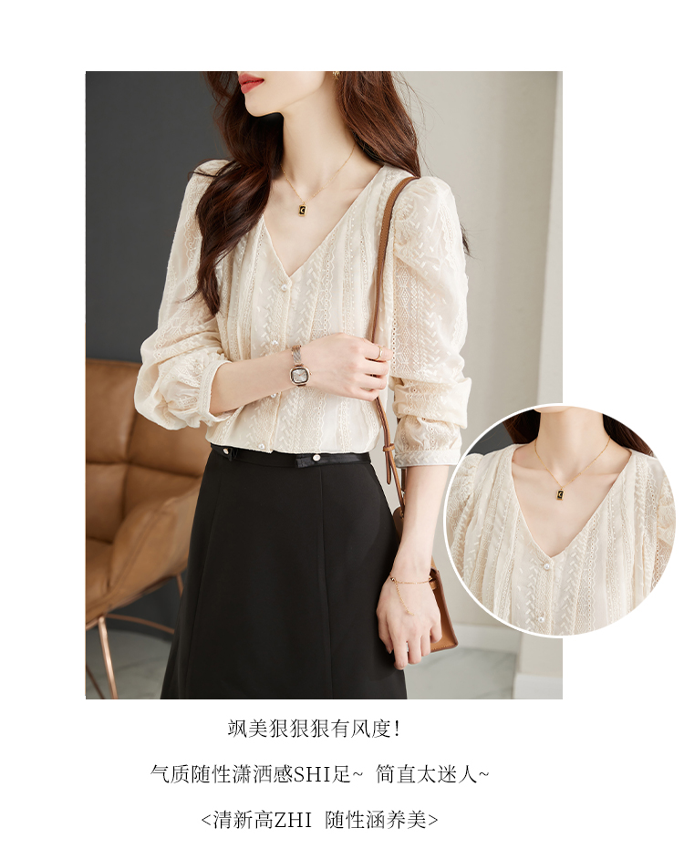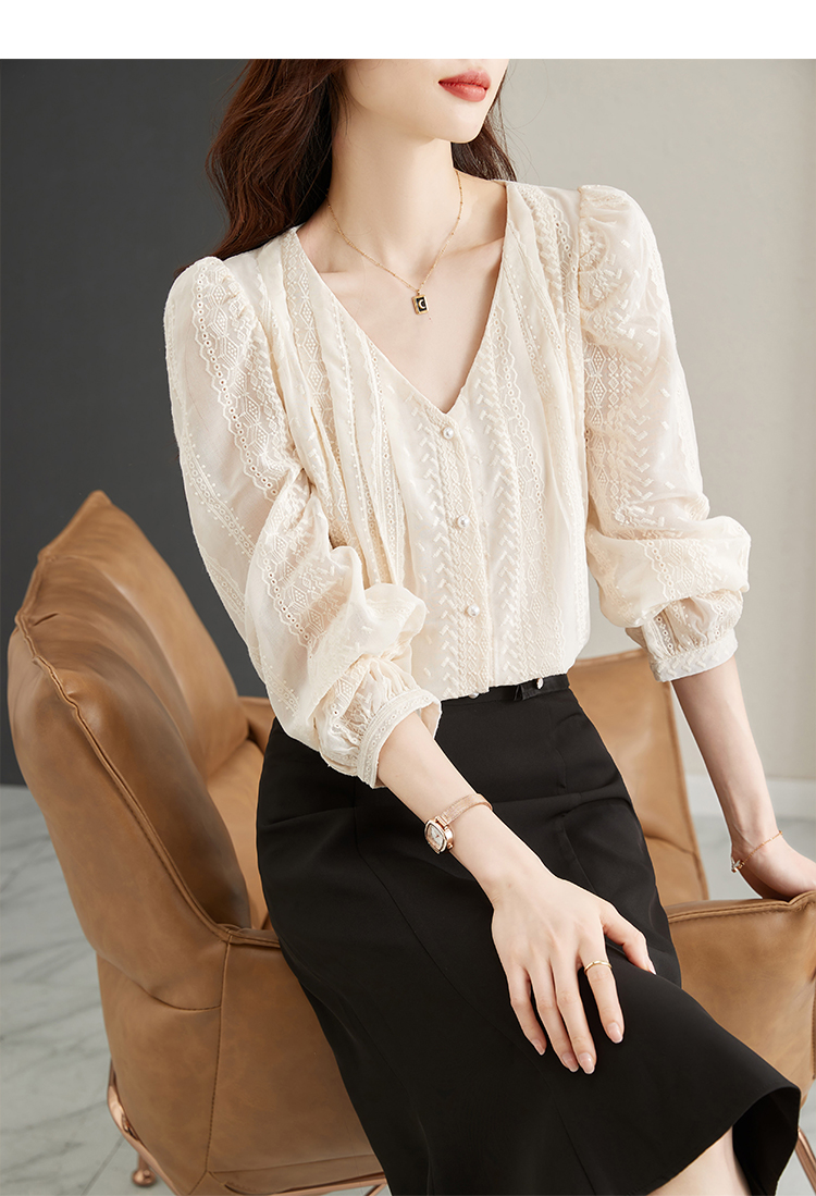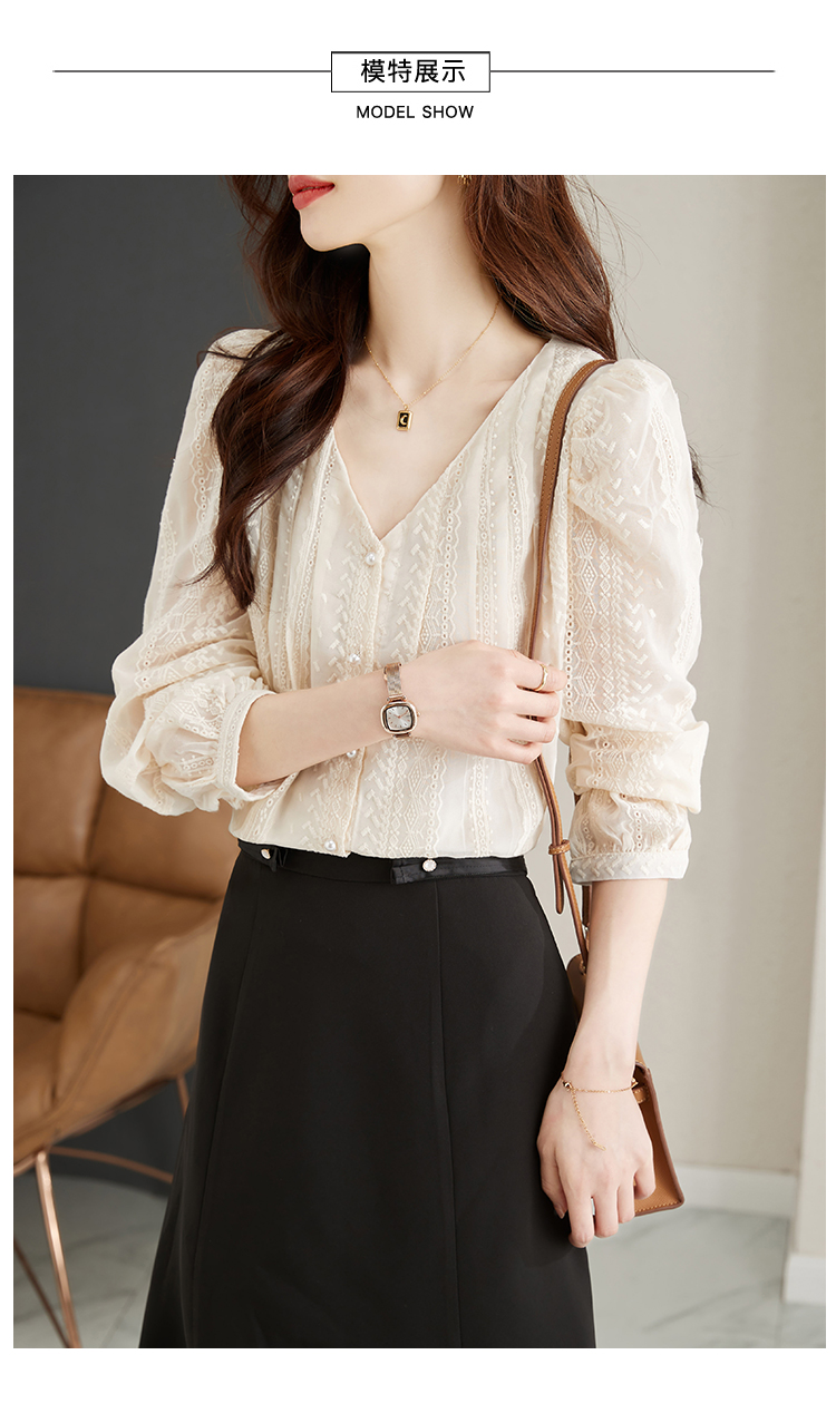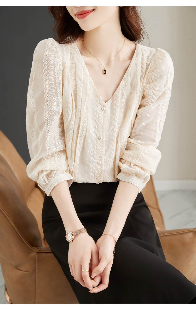 RM30591#设计感小众蕾丝长袖衬衫女2024年春秋新款刺绣小衫打底衫法式上衣