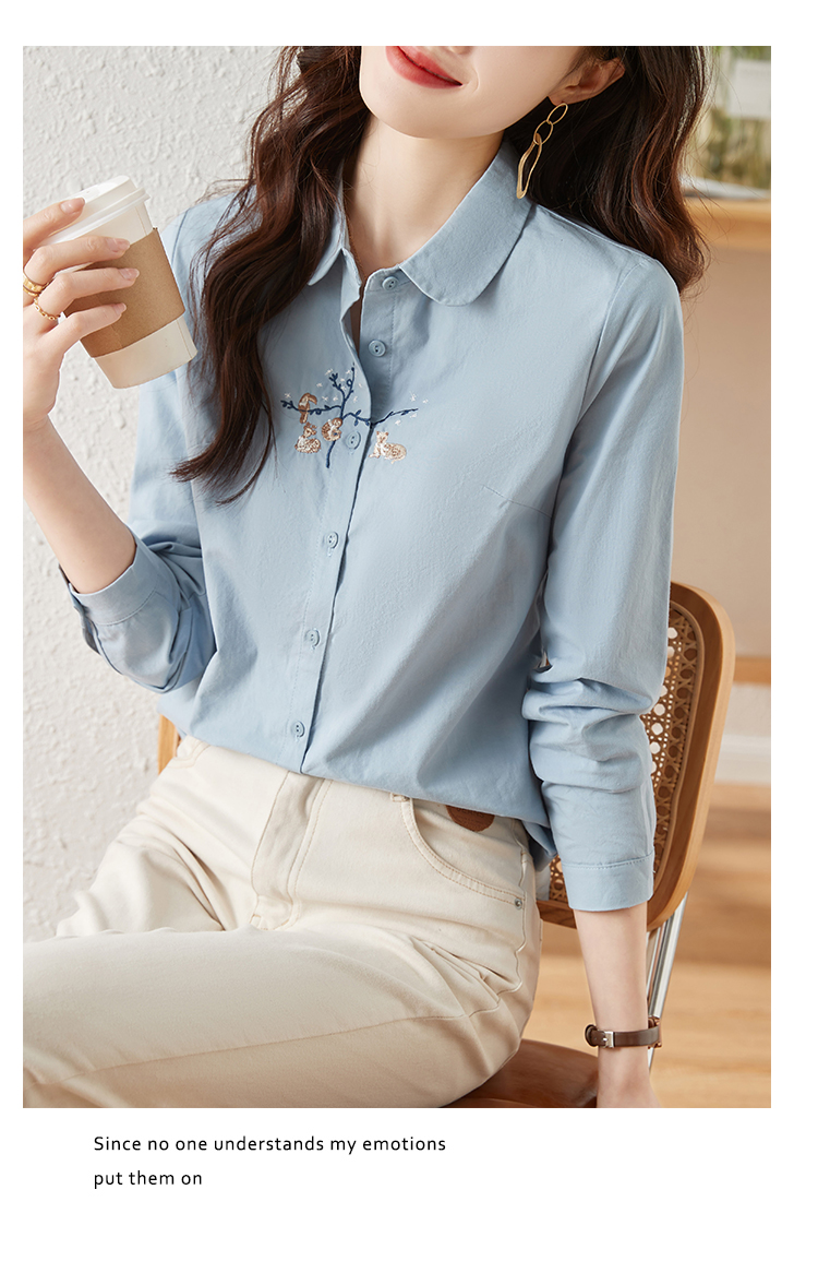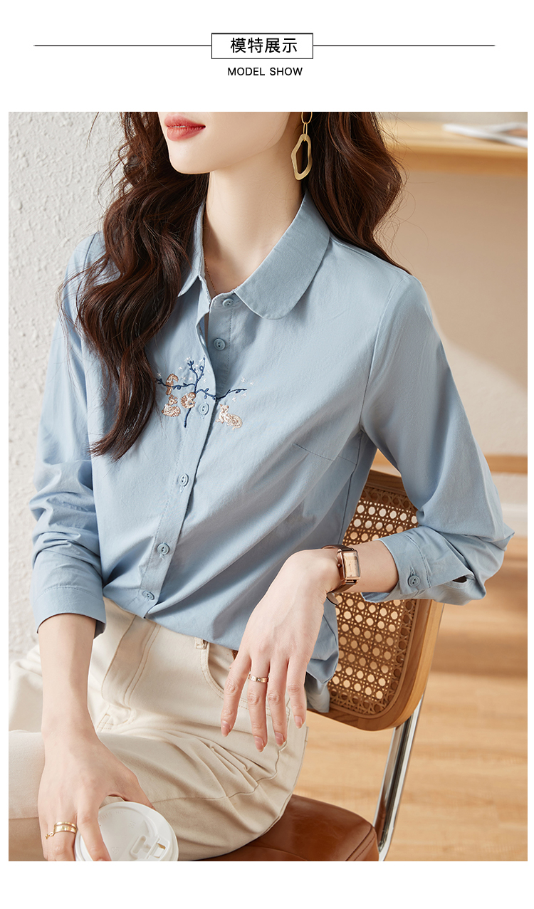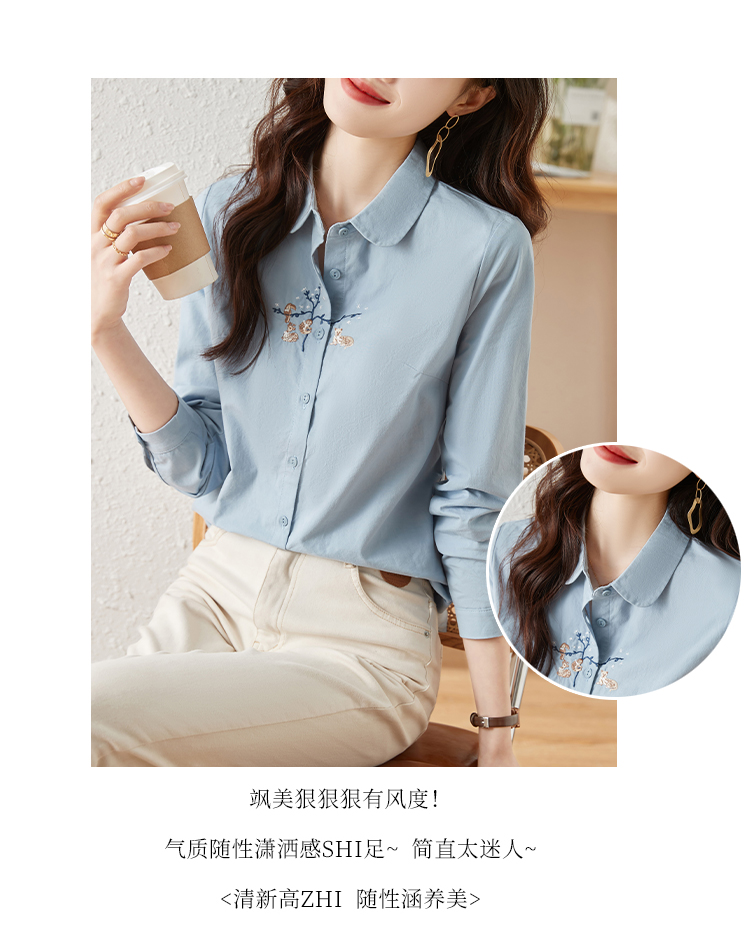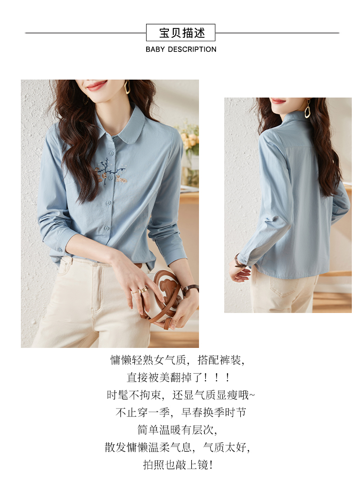 RM30593#新款清新文艺绣花长袖衬衣简约OL职业上衣女士衬衫
