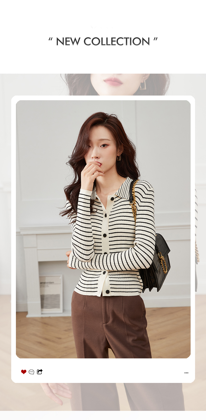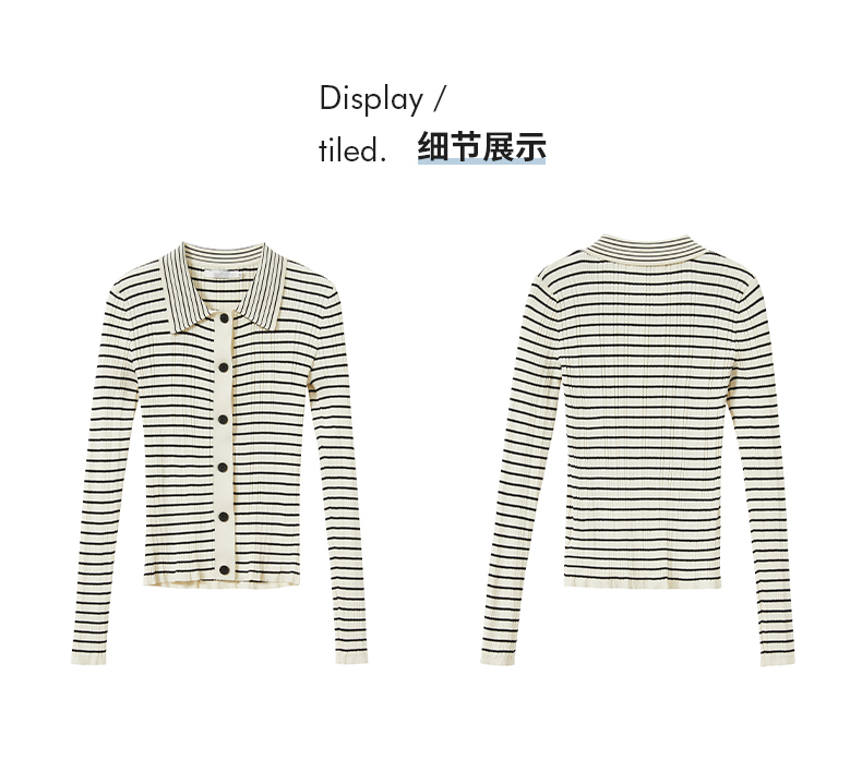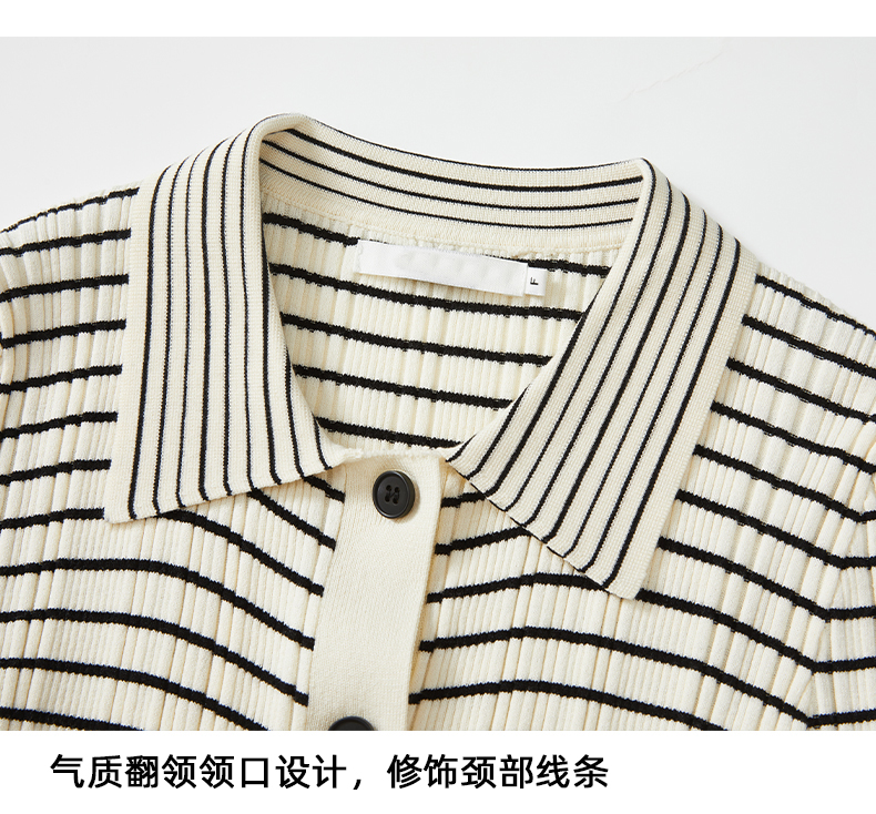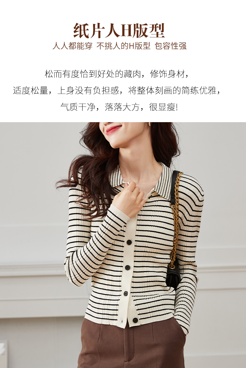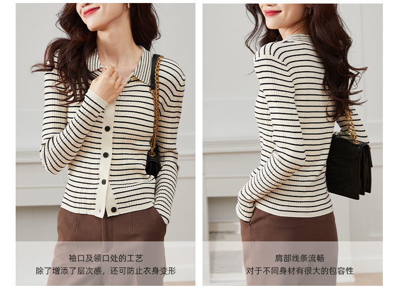 RM30596#打底衫女春秋2024年新款时尚洋气内搭长袖条纹针织开衫polo领上衣