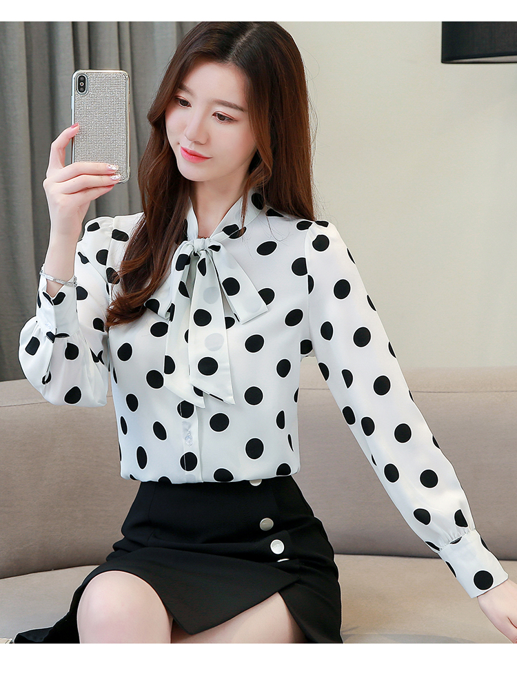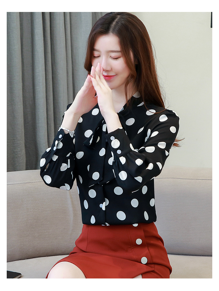 RM30610#波点雪纺衬衫女装春潮时尚长袖气质小众设计感洋气飘带衬衣
