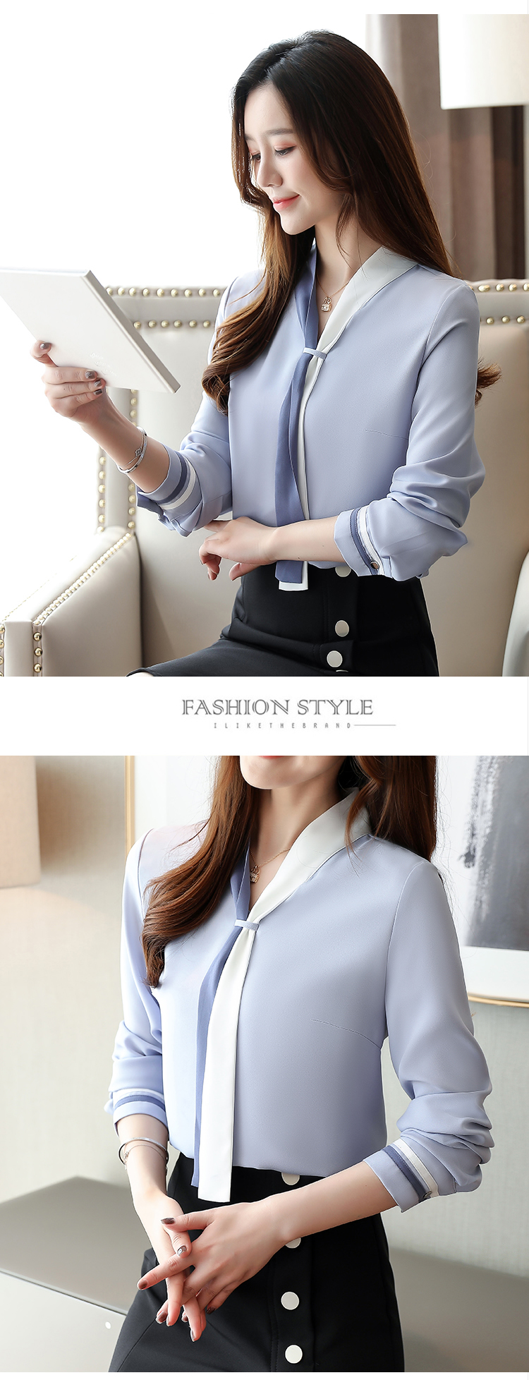 RM30615#衬衫女设计感小众2024新款春上衣轻熟洋气复古港味宽松雪纺衬衣
