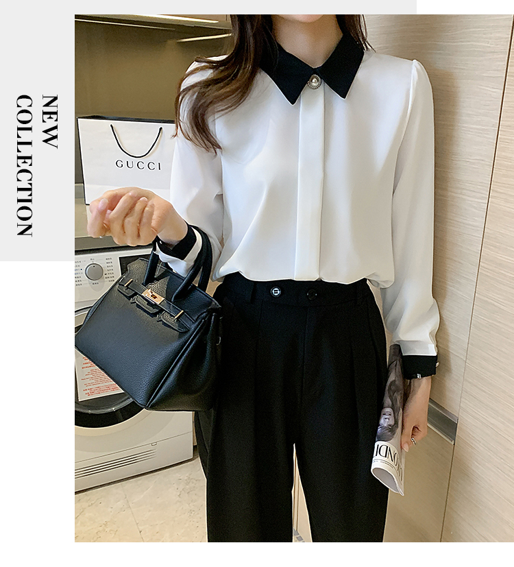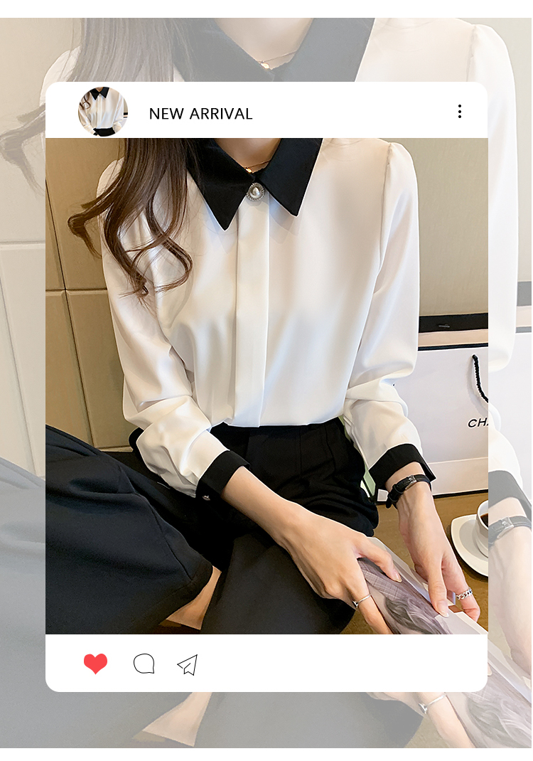 RY2635#套头长袖纯色衬衫女V领抗皱免烫气质简约缎面衬衣潮