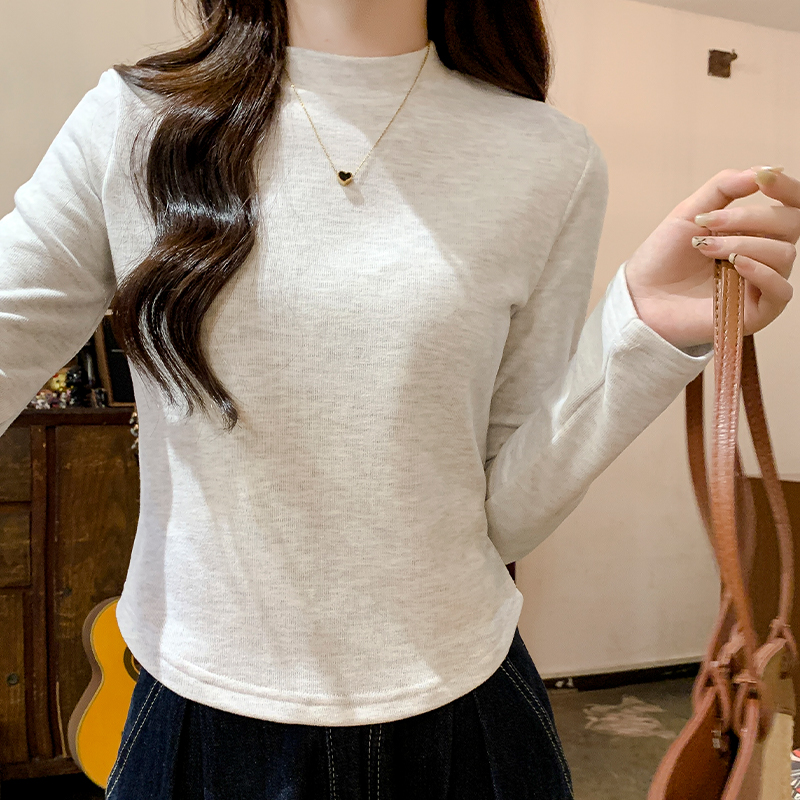 RM30709#法式圆领T恤女秋冬季不规则德绒加厚设计感打底长袖上衣