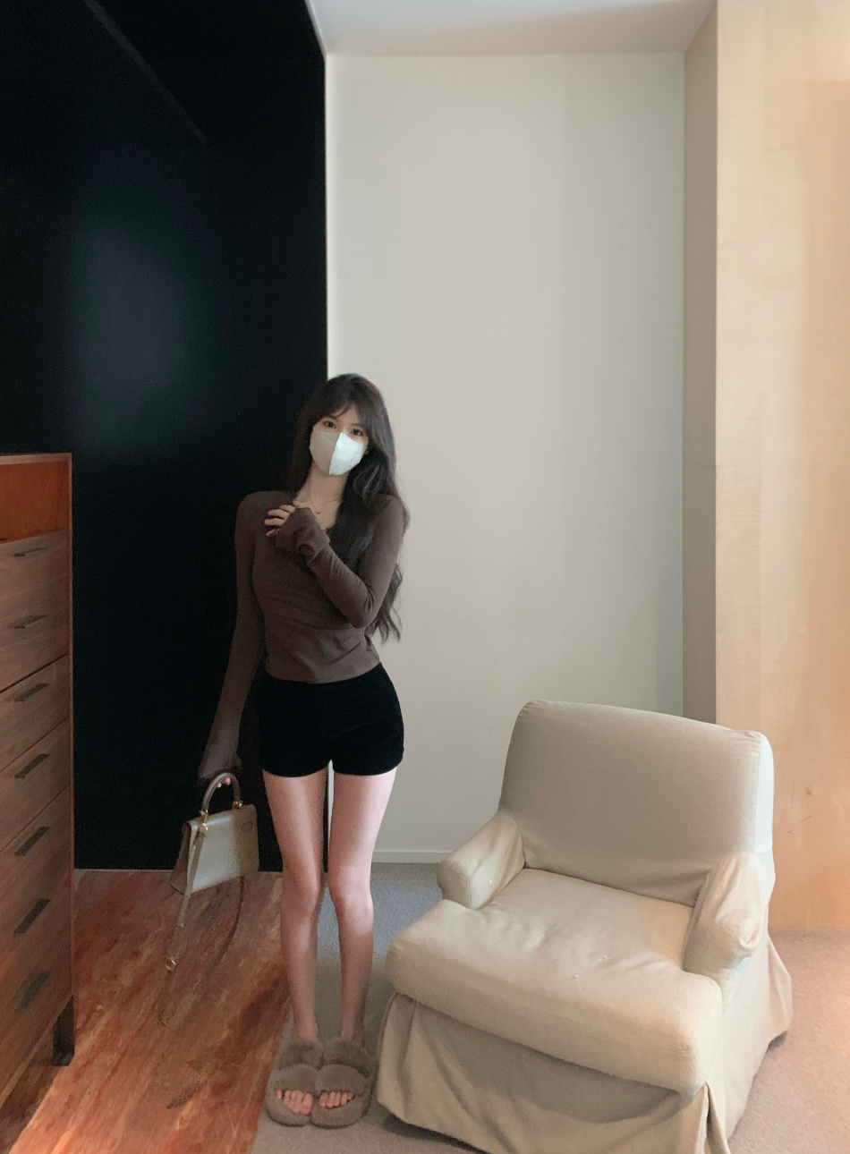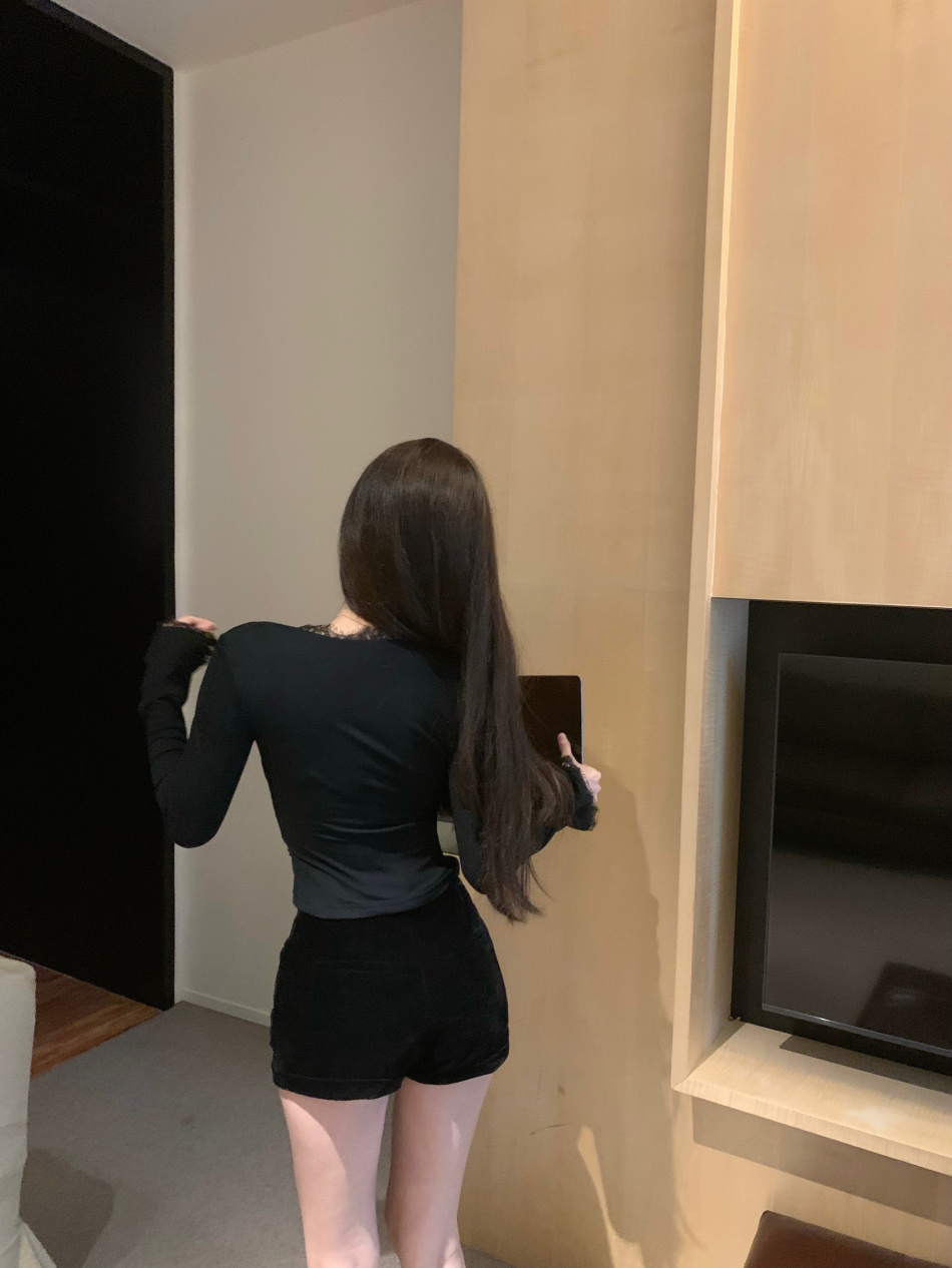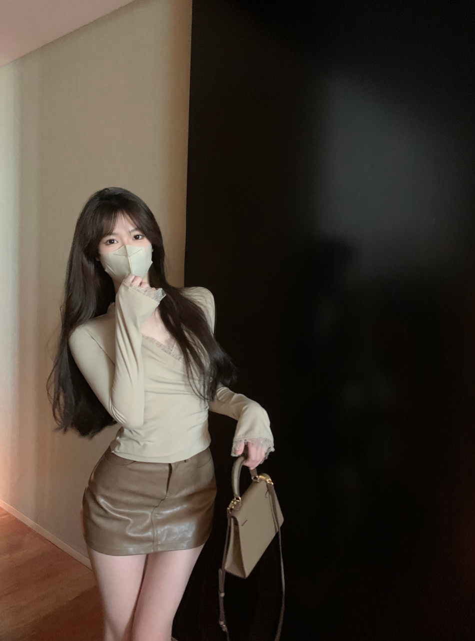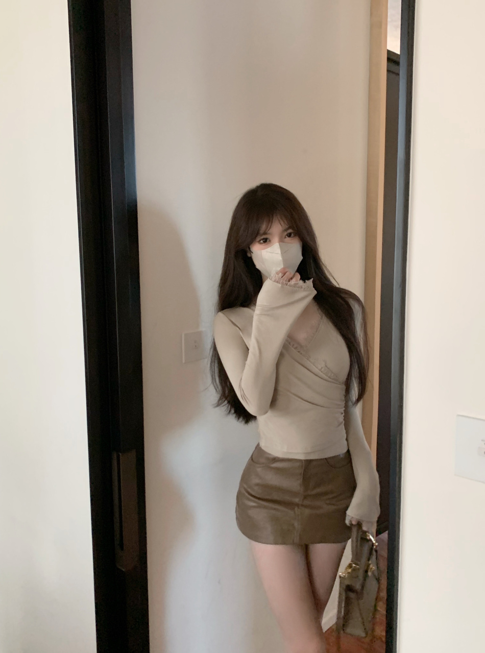 RM30746#气质V领蕾丝拼接上衣女设计感时尚交叉长袖打底衫