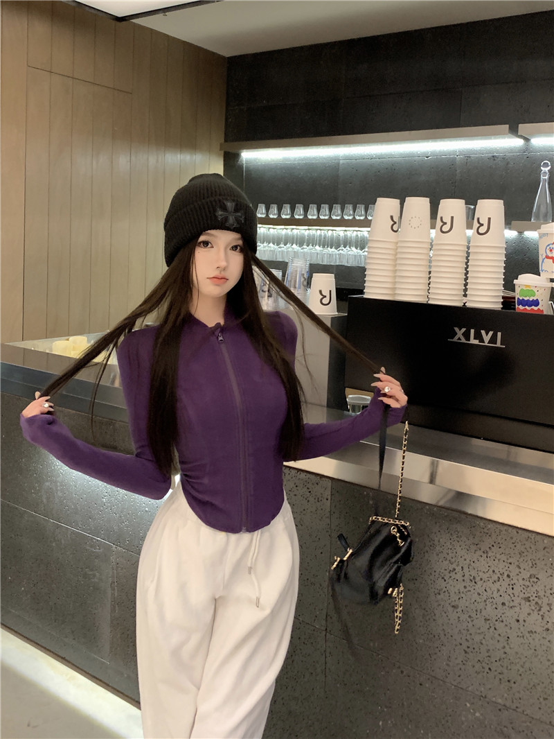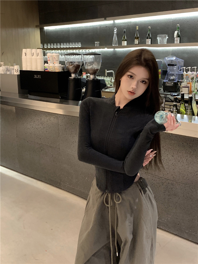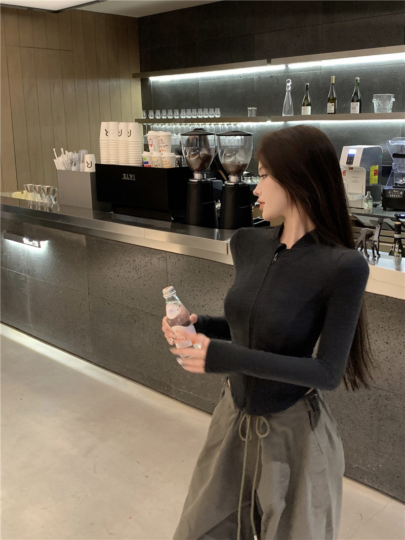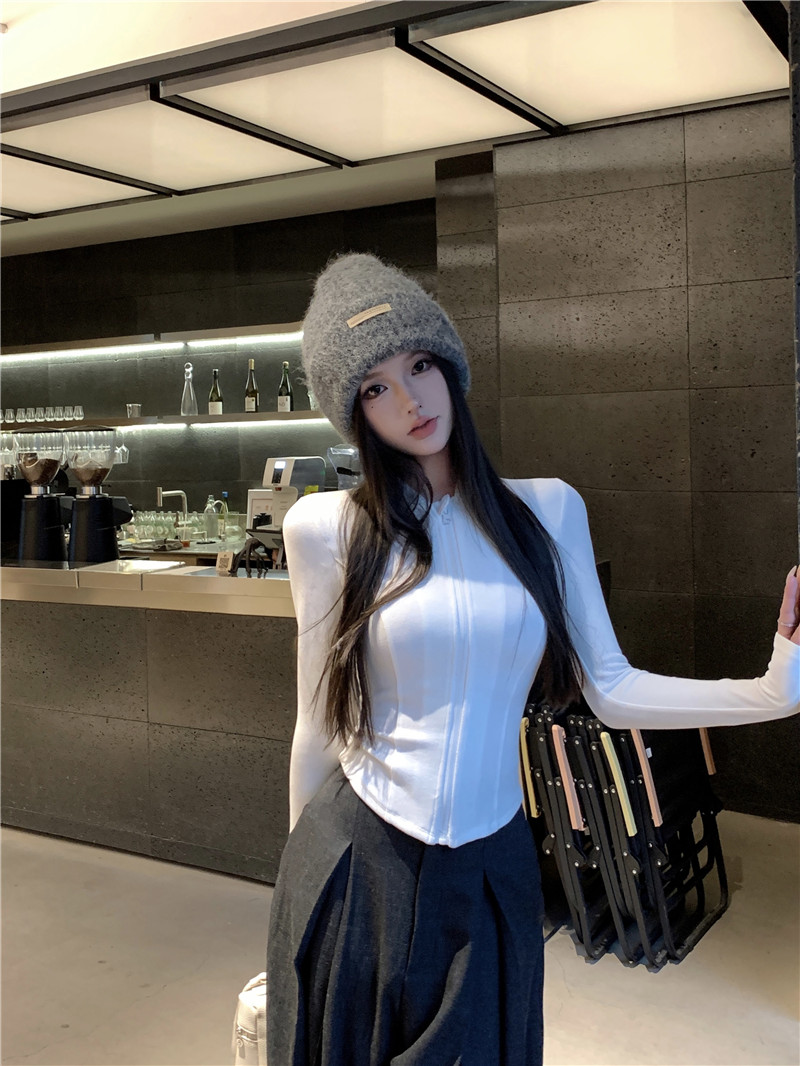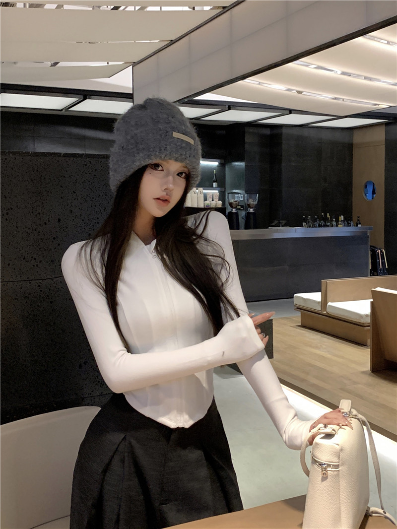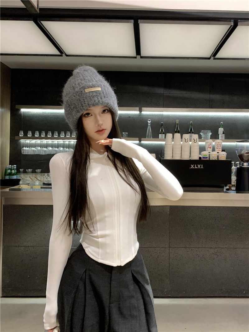 RM30829#ins美式德绒设计感紧身显瘦保暖内搭拉链长袖打底衫上衣