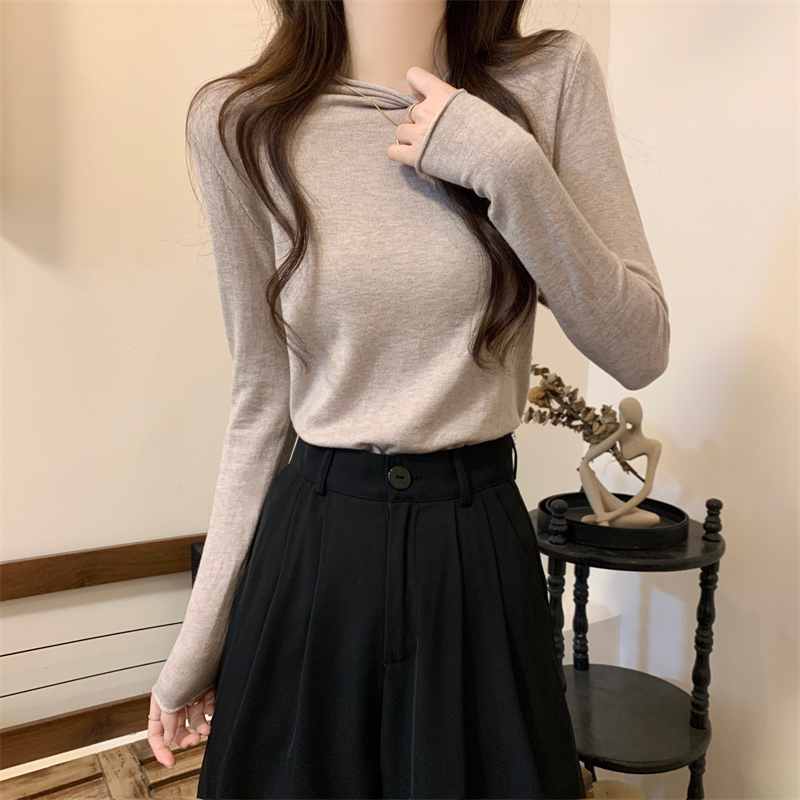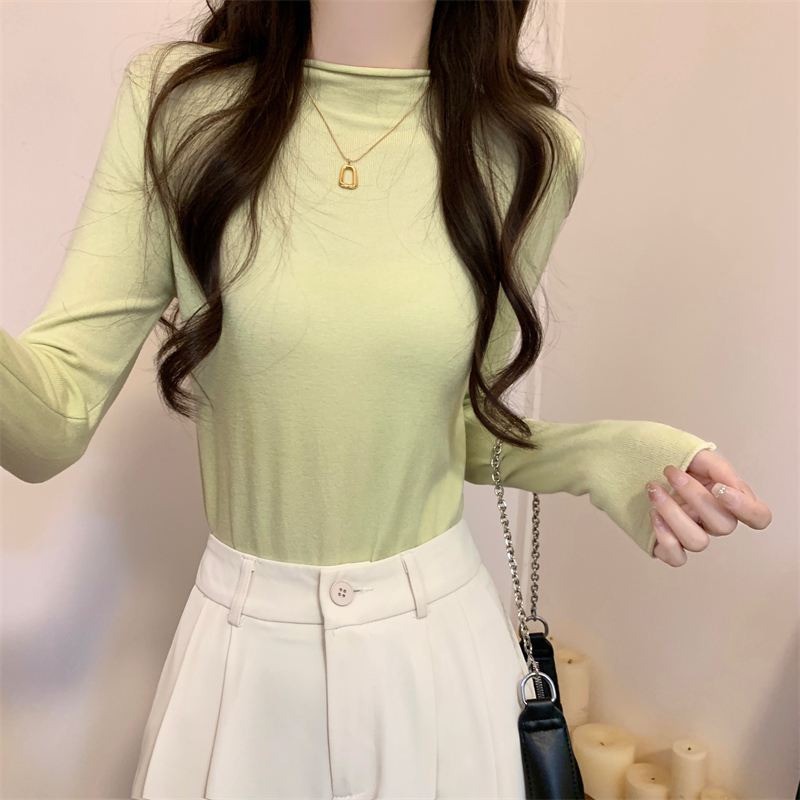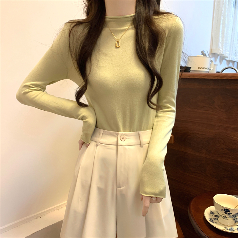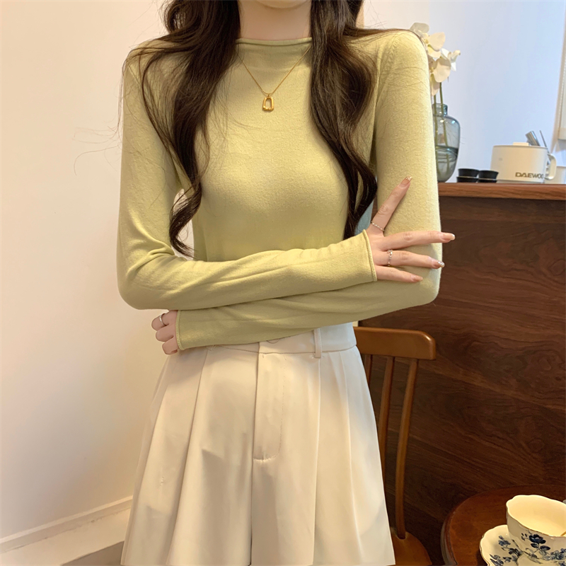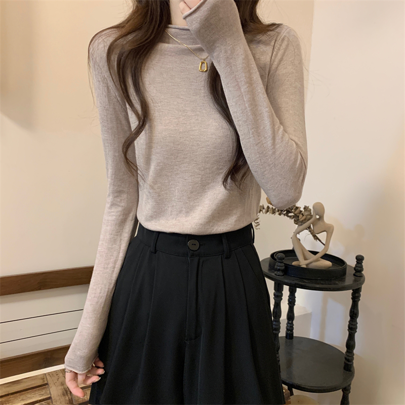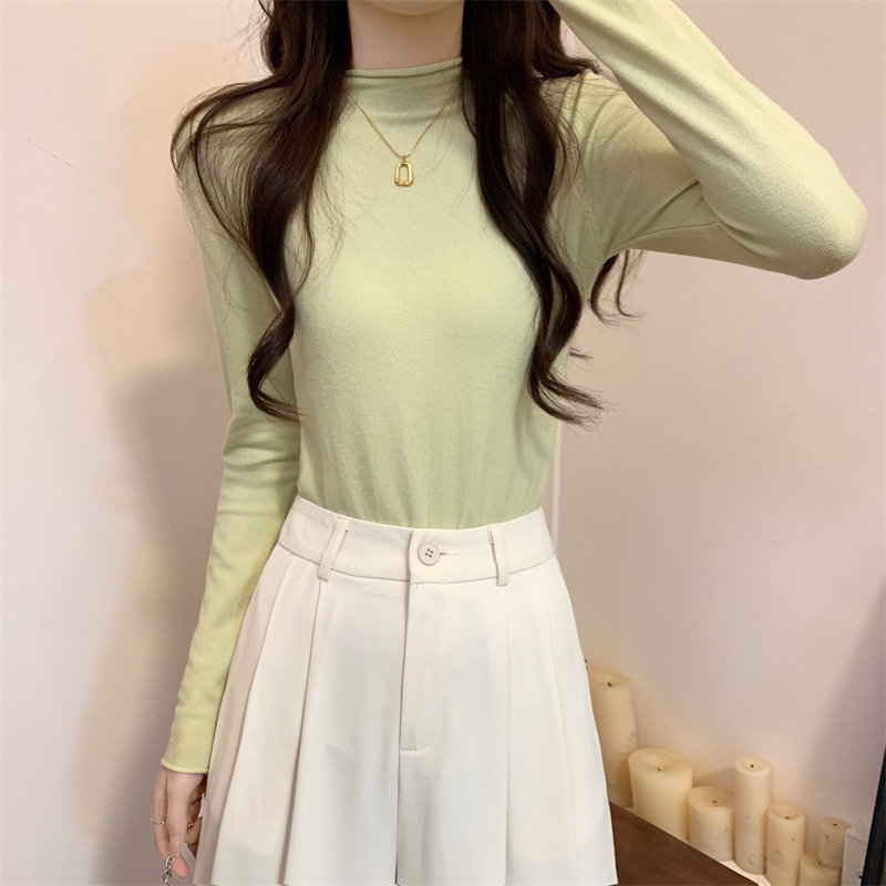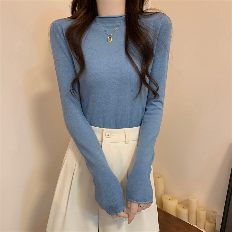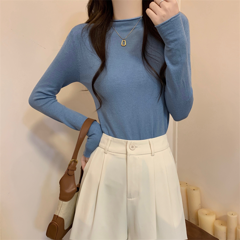 RM30886#新版韩风设计感半高领长袖套头针织打底衫