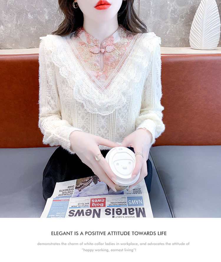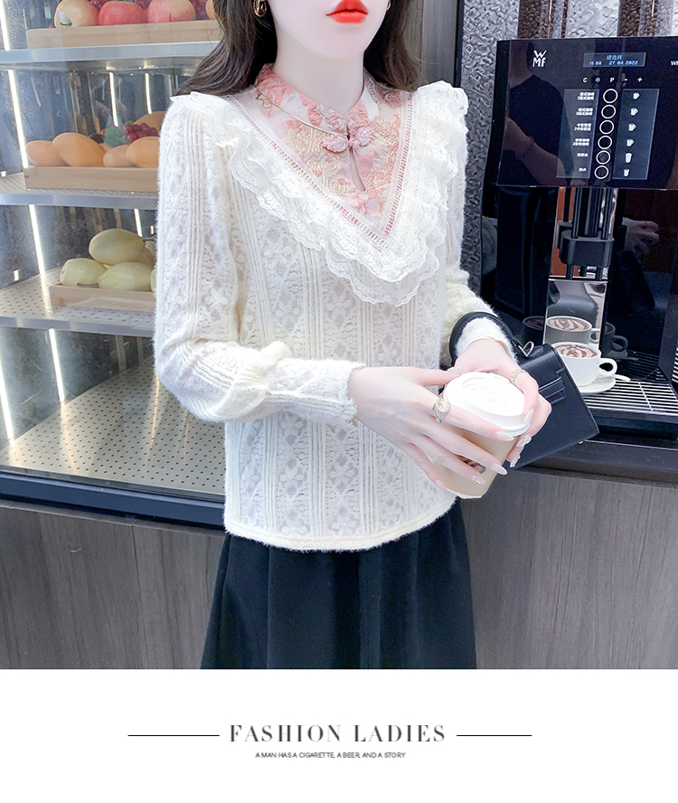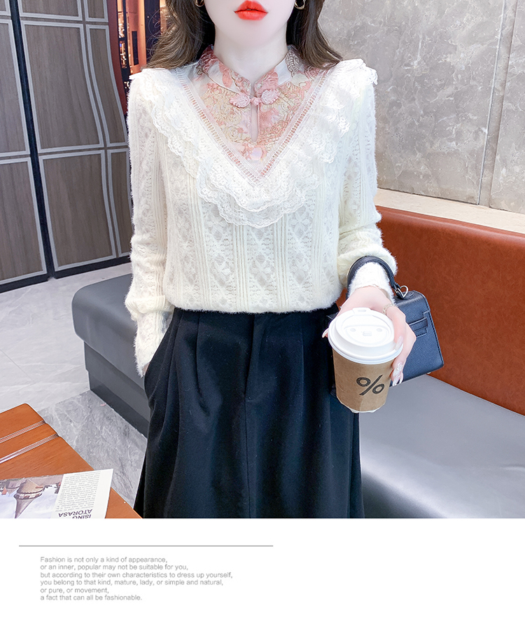 RM30896#新中式国风改良唐装杏色打底衫女秋冬季加厚内搭上衣盘扣衬衫