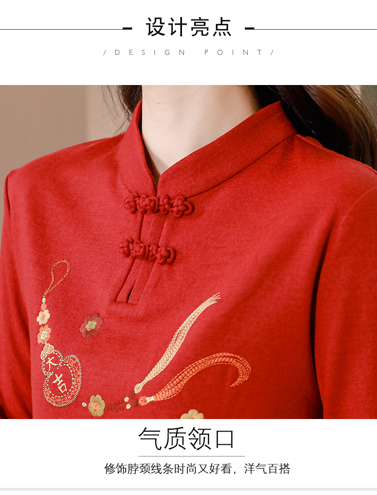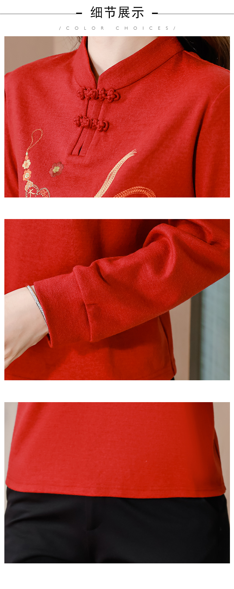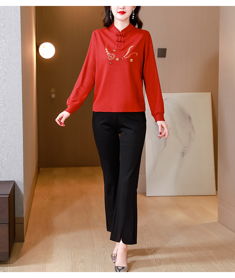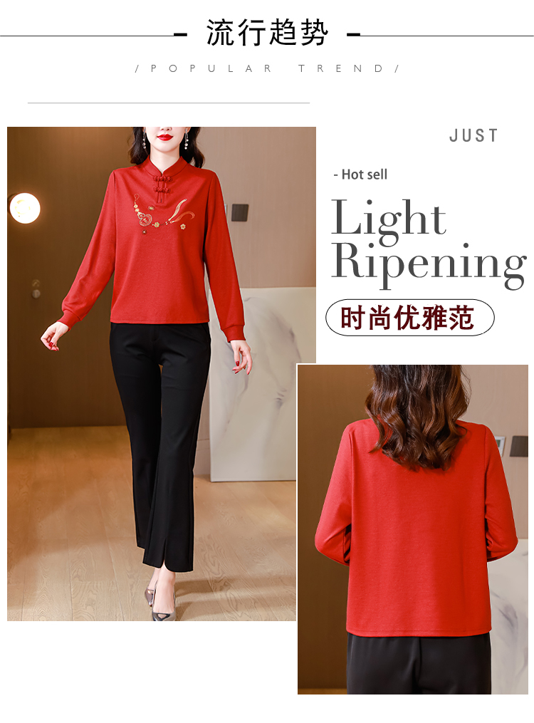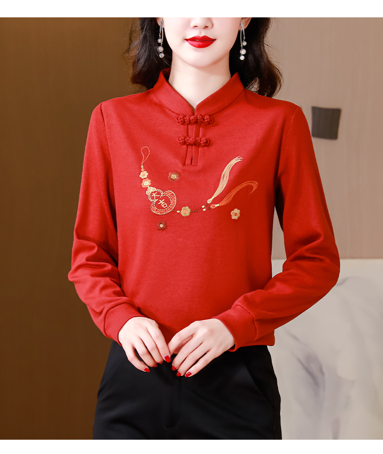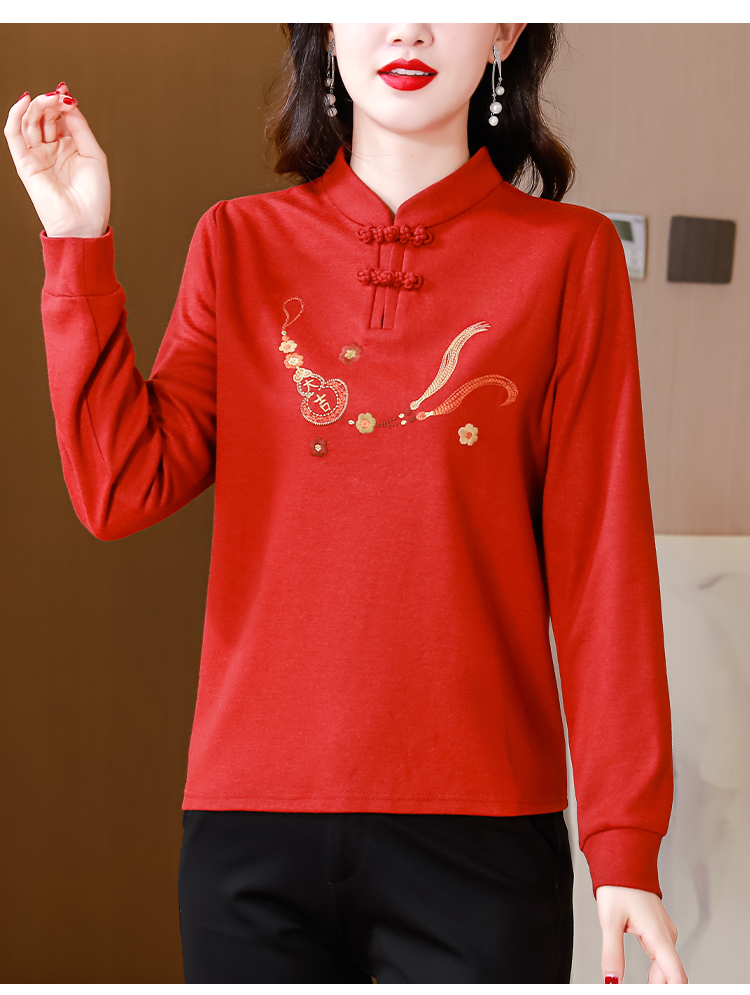 RM30954#文艺复古盘扣刺绣长袖打底衫女冬装2023新款大码宽松显瘦长袖T恤
