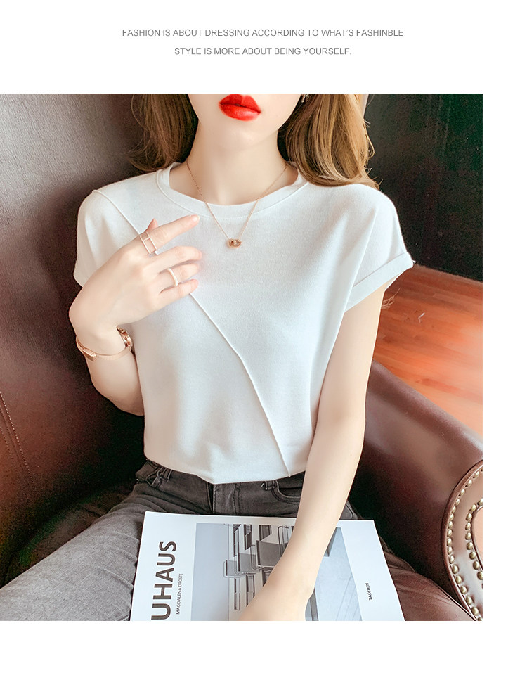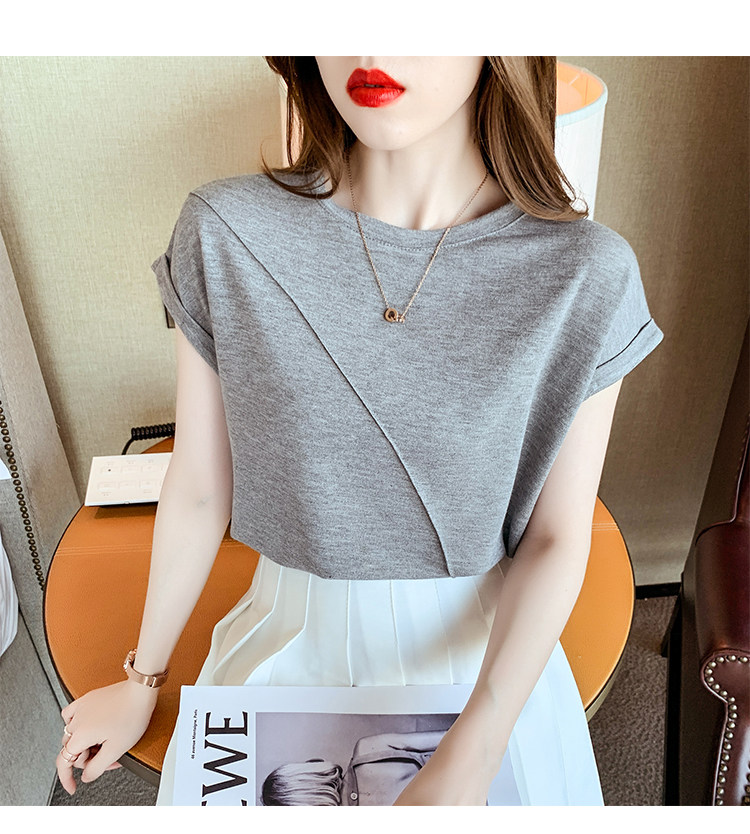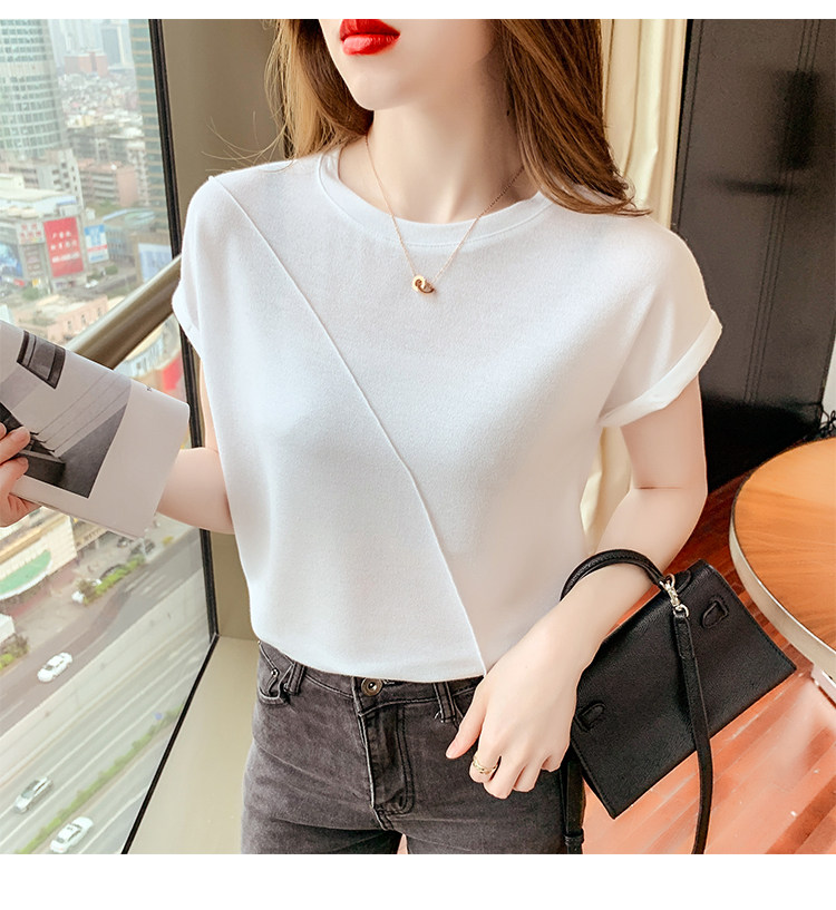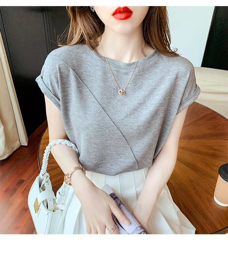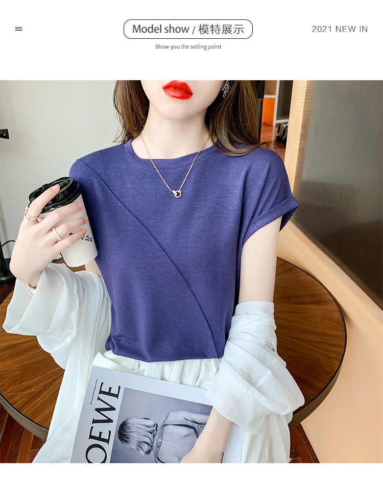 RY2666#欧货短袖t恤女夏季纯色设计感上衣女