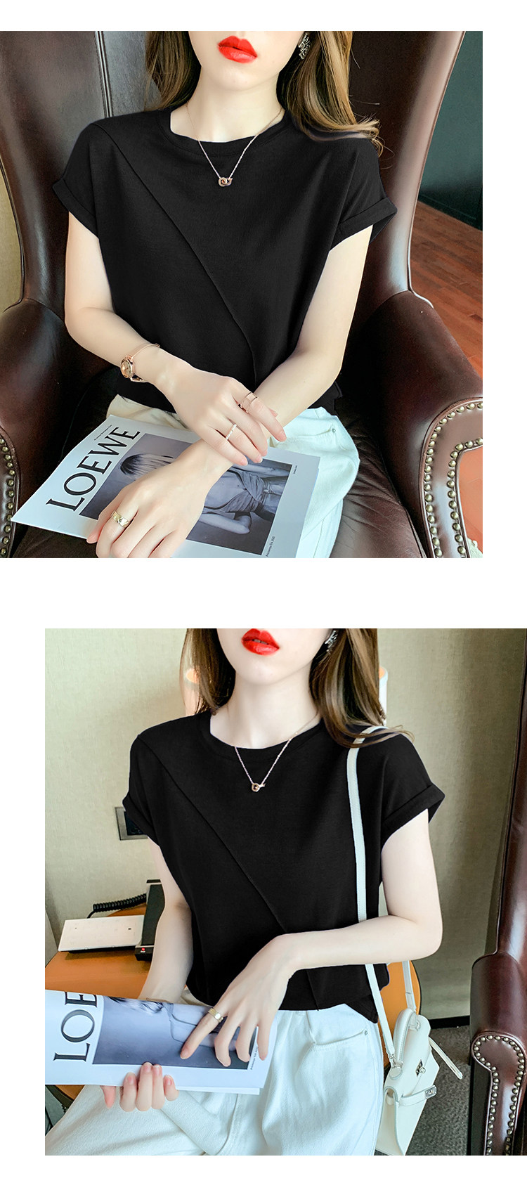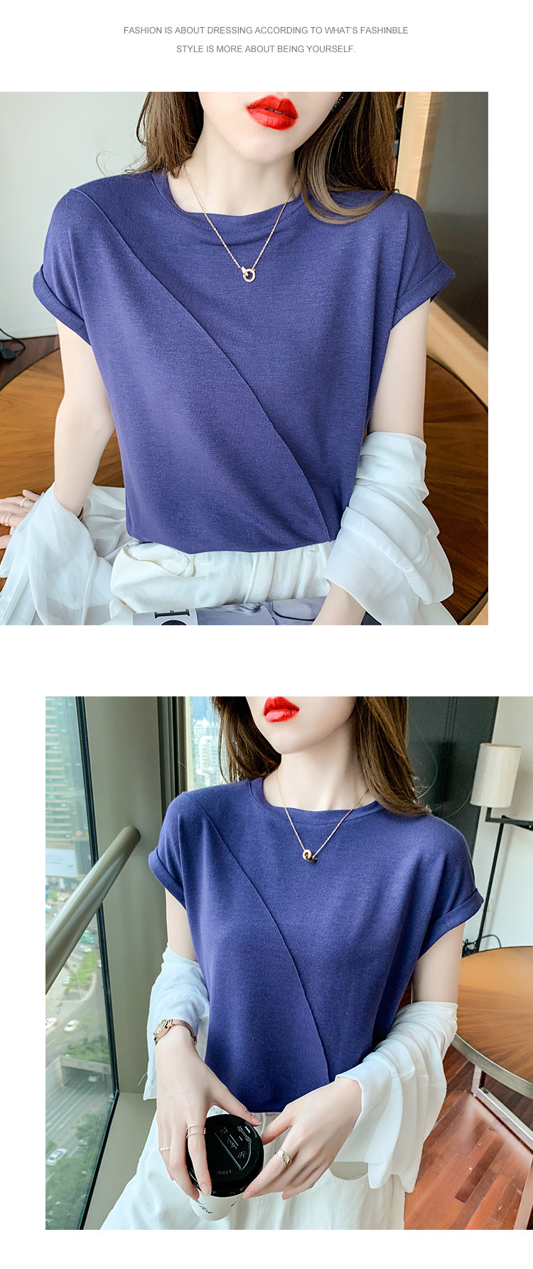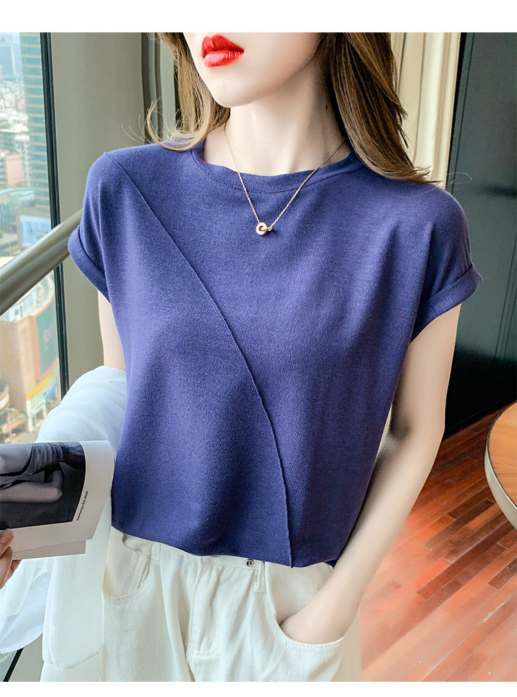 RY2666#欧货短袖t恤女夏季纯色设计感上衣女