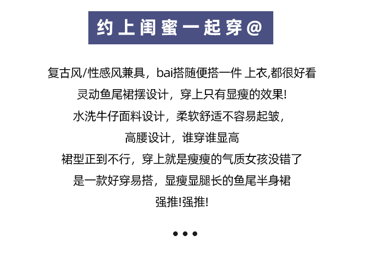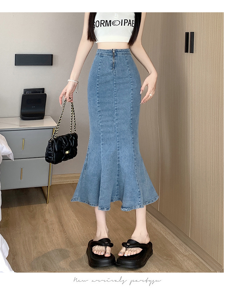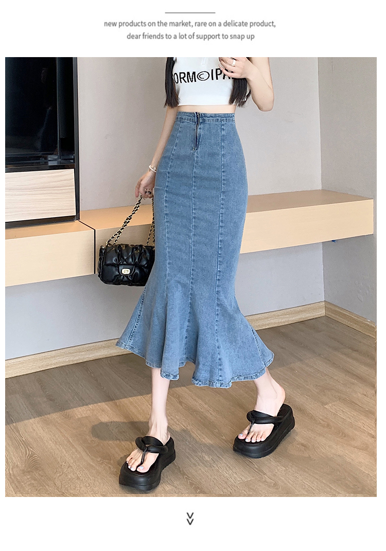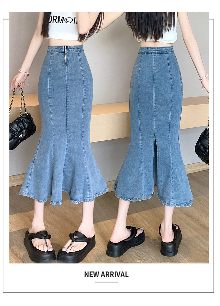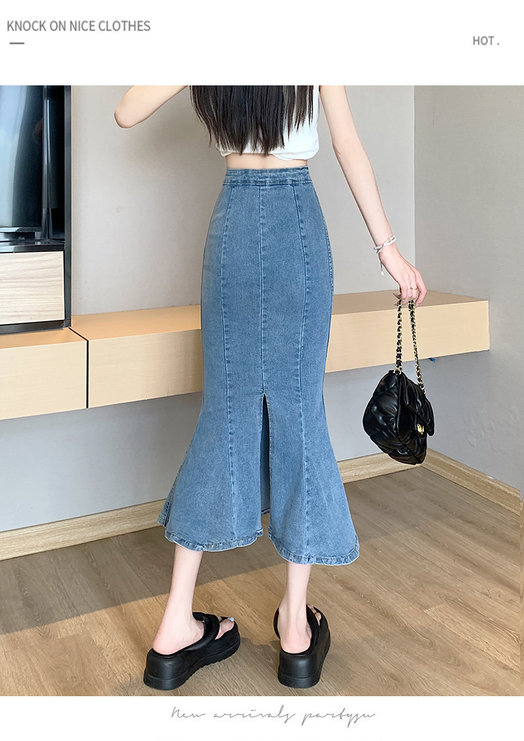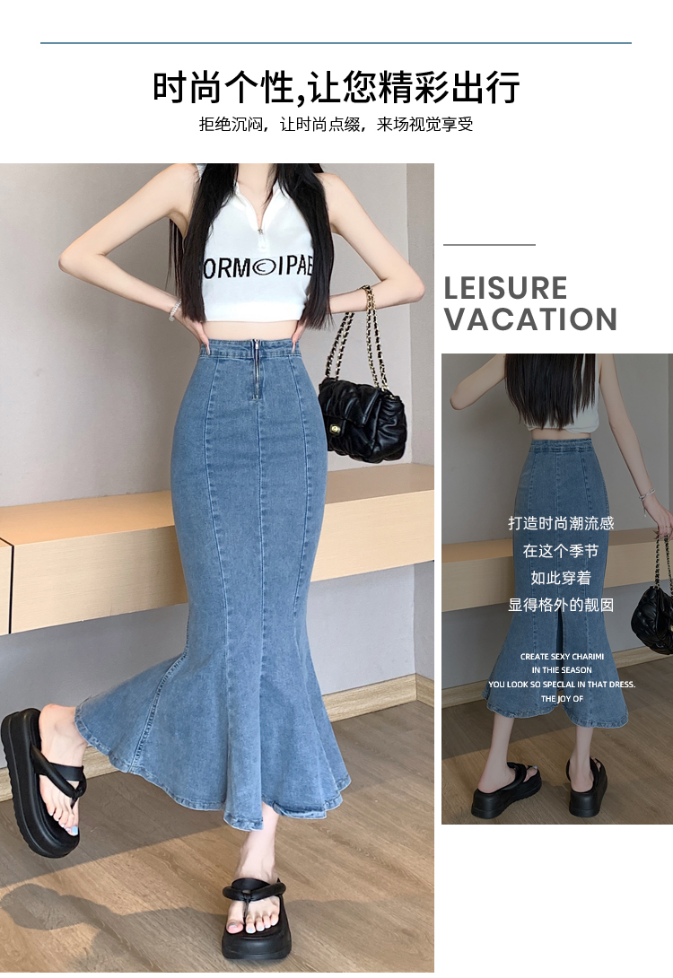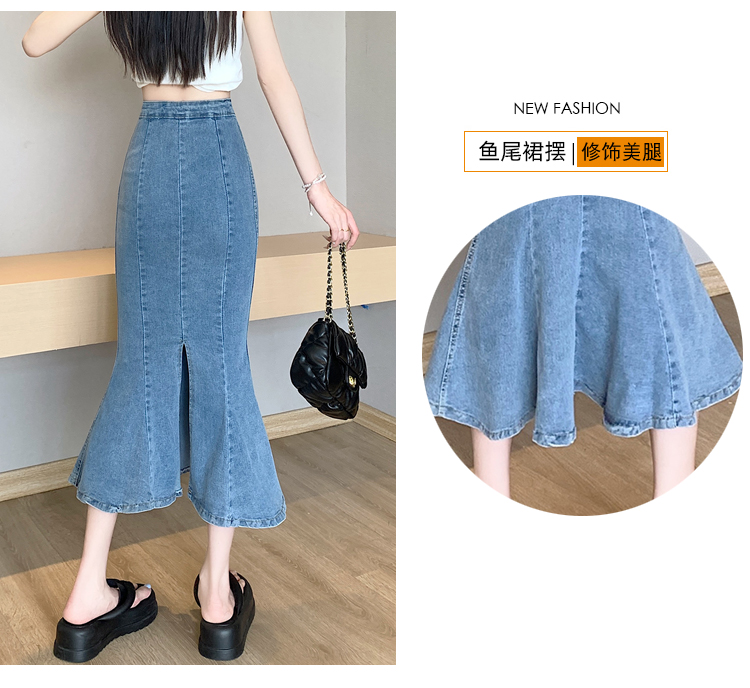 RM33257#牛仔包臀裙女春2024高腰A字裙超修身鱼尾裙中长款半身裙夏季