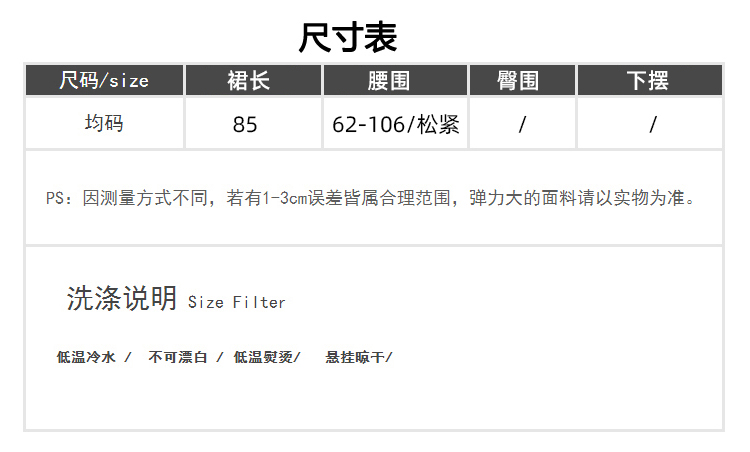 因裁剪工艺和丈量手法不同,可能存在1~3CM 左右误差,尺码仅供参考,以实物为准