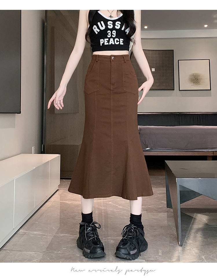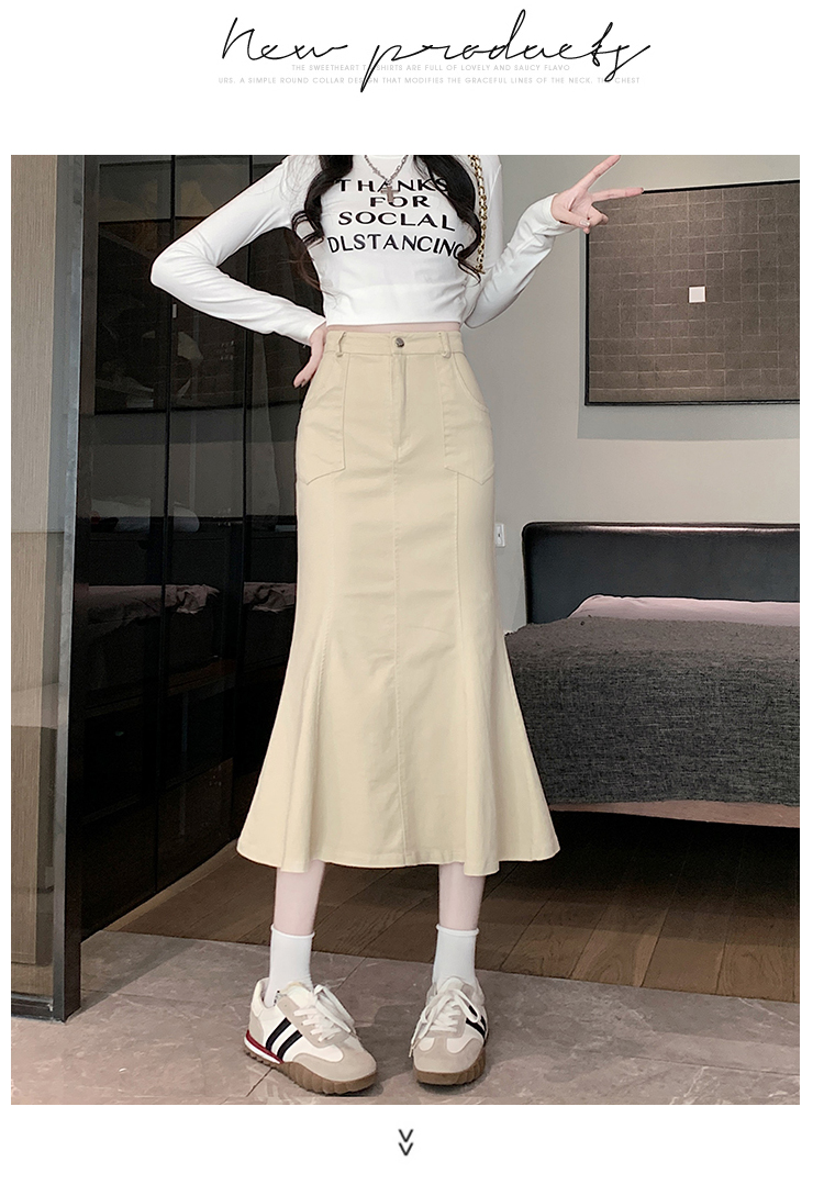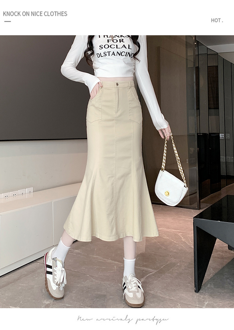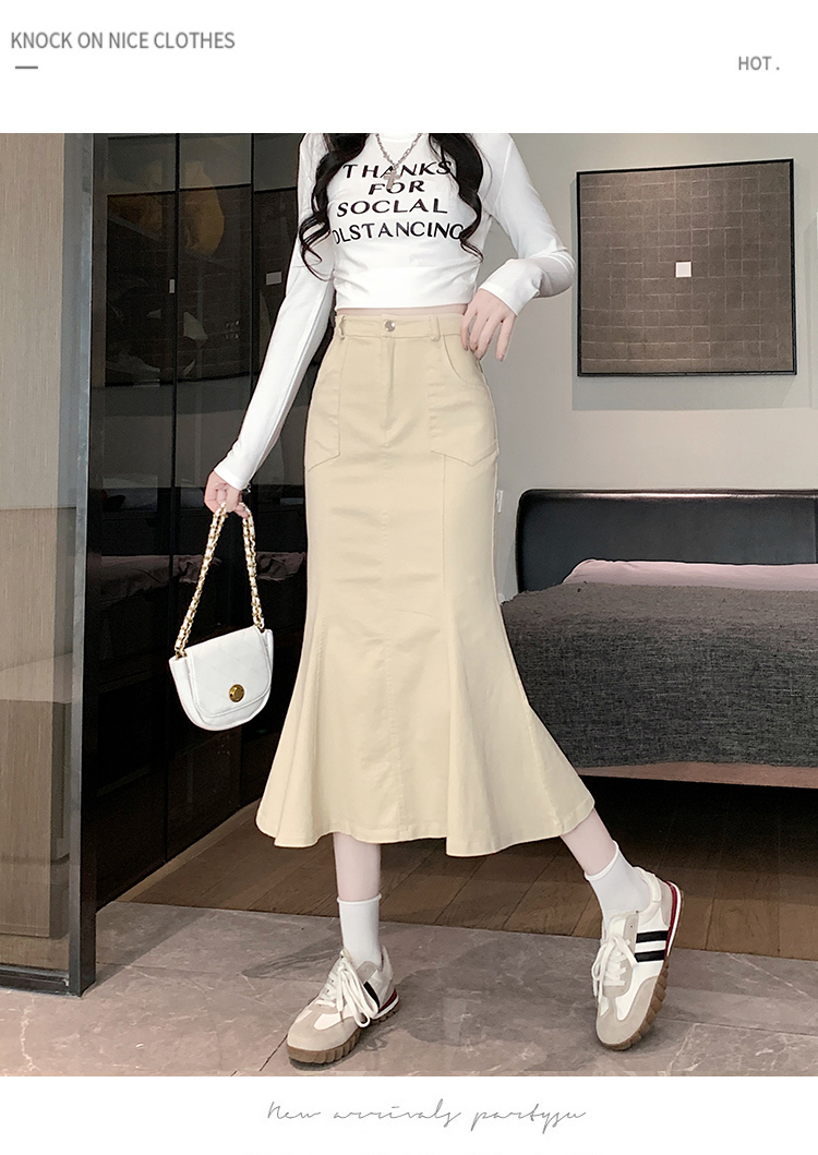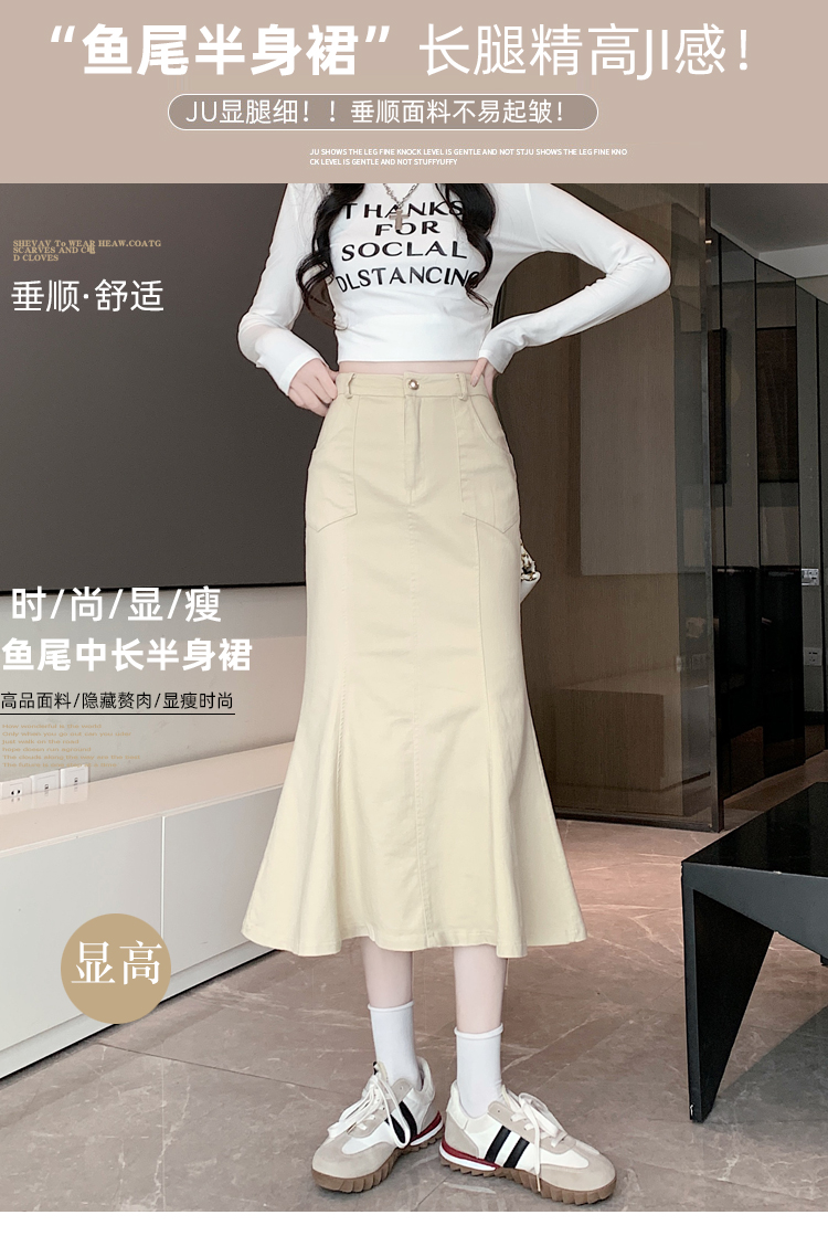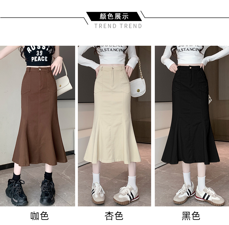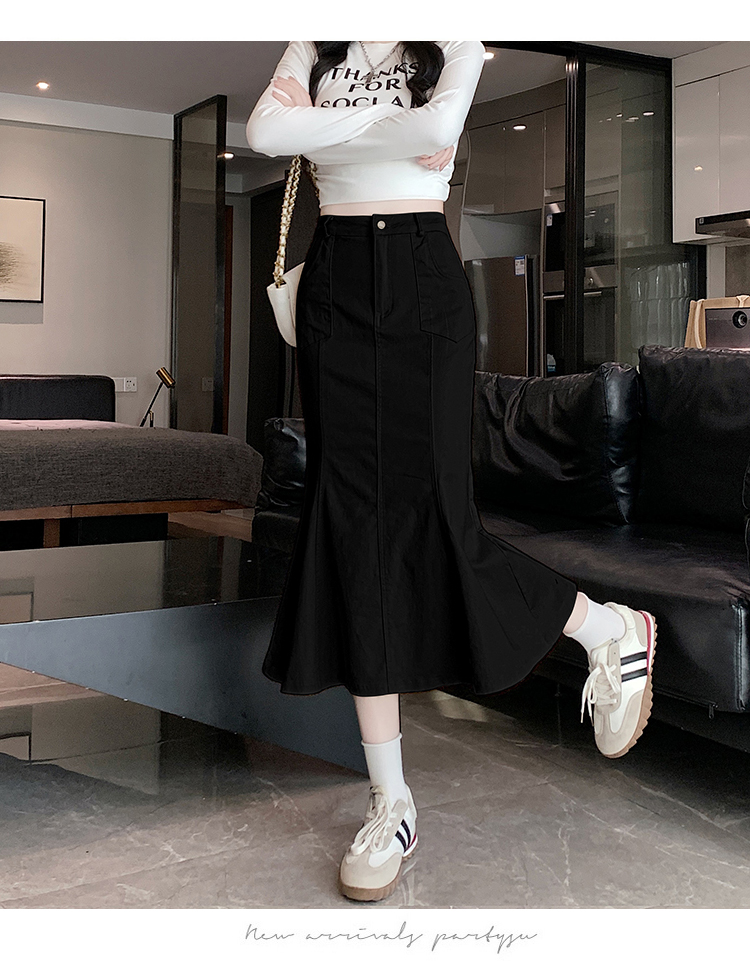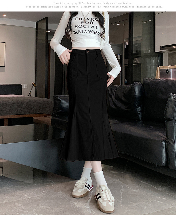 RM33355#新款半身裙女黑色弹力高腰裙中长款百搭修身鱼尾裙子
