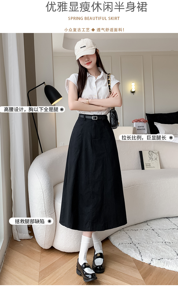 RM33356#新款复古半身裙女高腰显瘦气质中长裙休闲A字裙