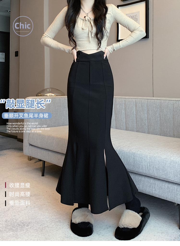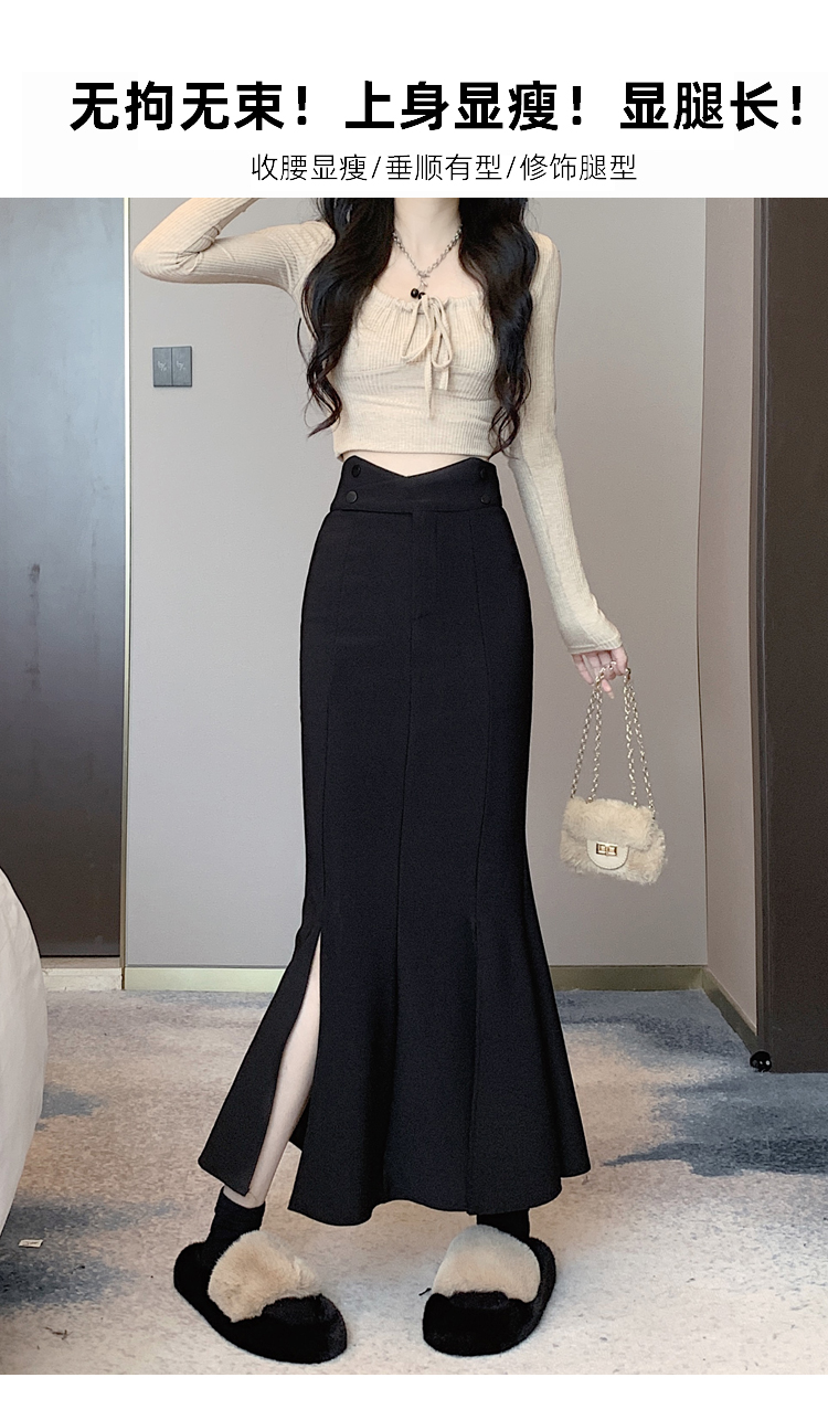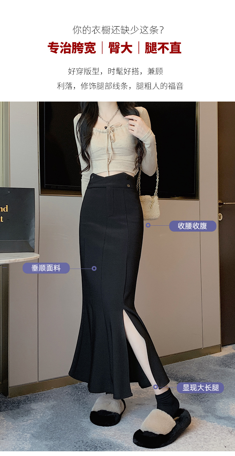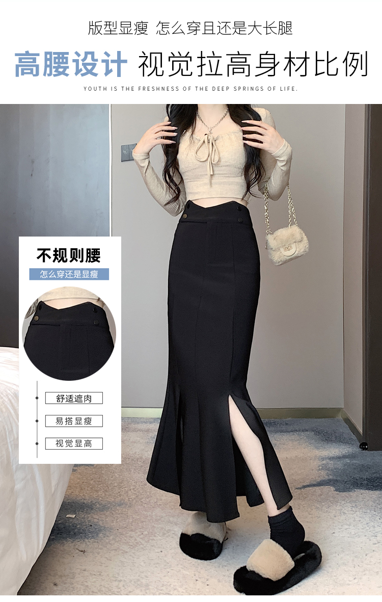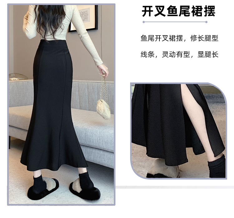 RM33358#新款中长款垂感百搭高腰显瘦包臀裙开叉鱼尾裙半身裙