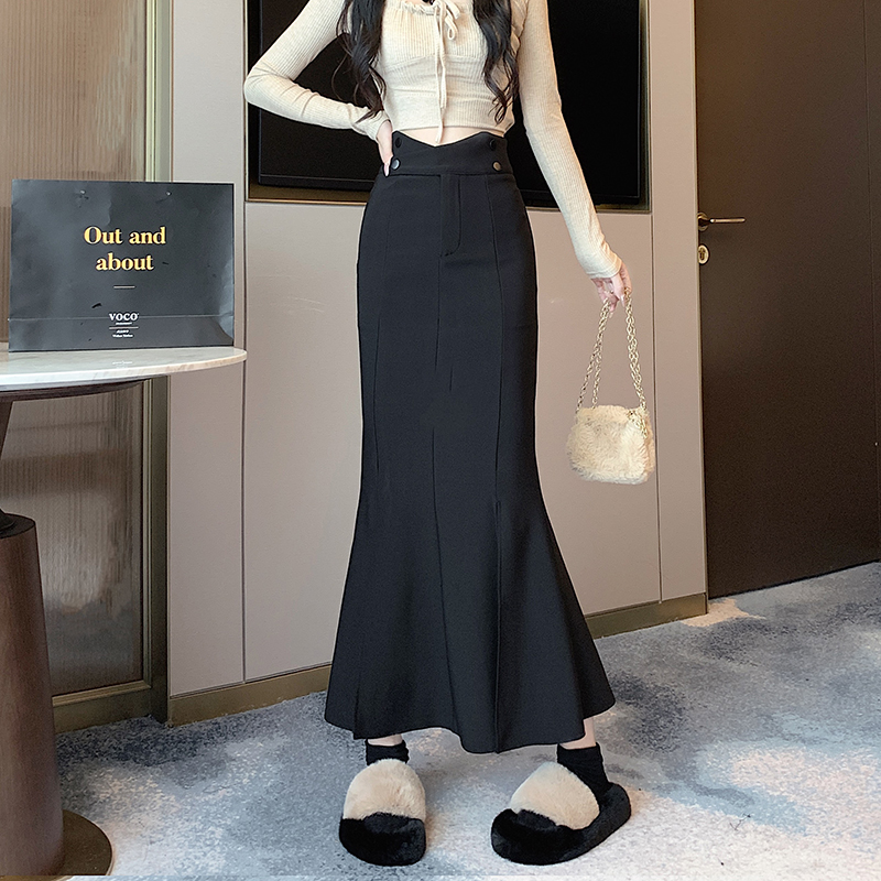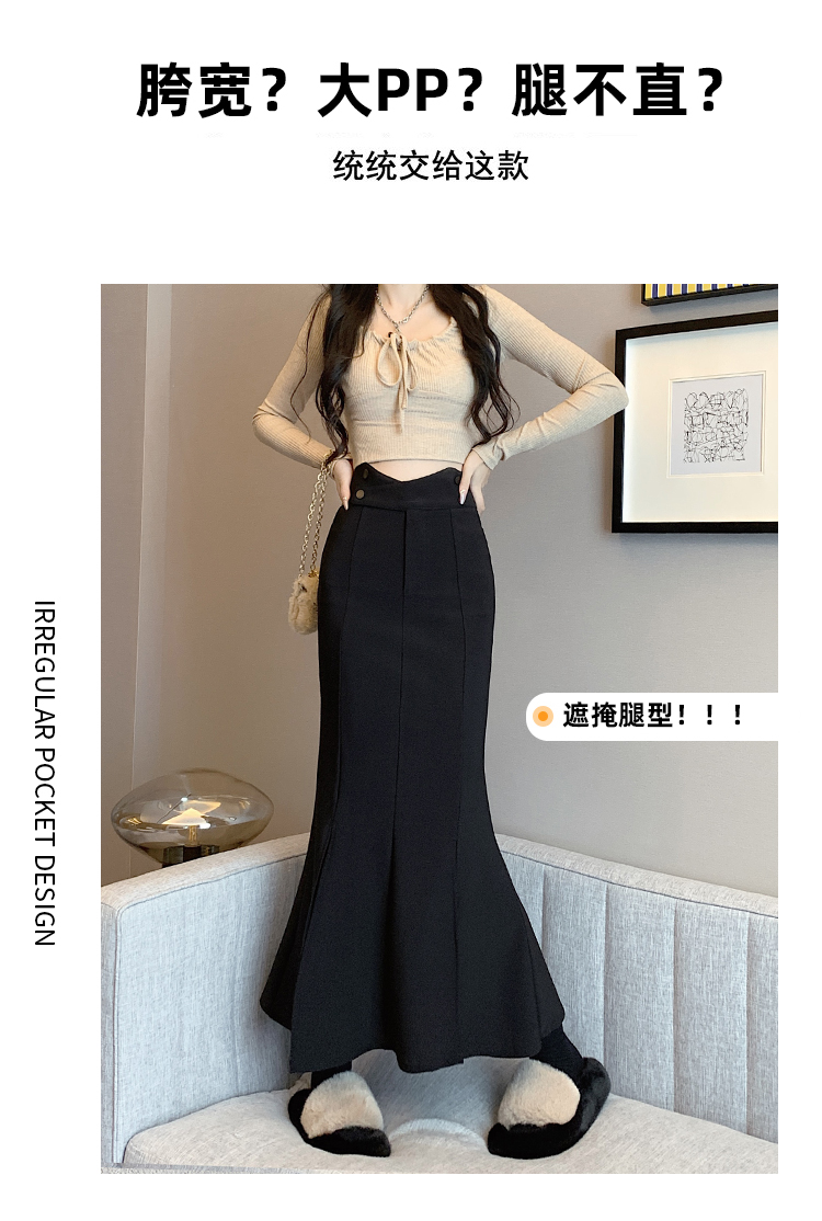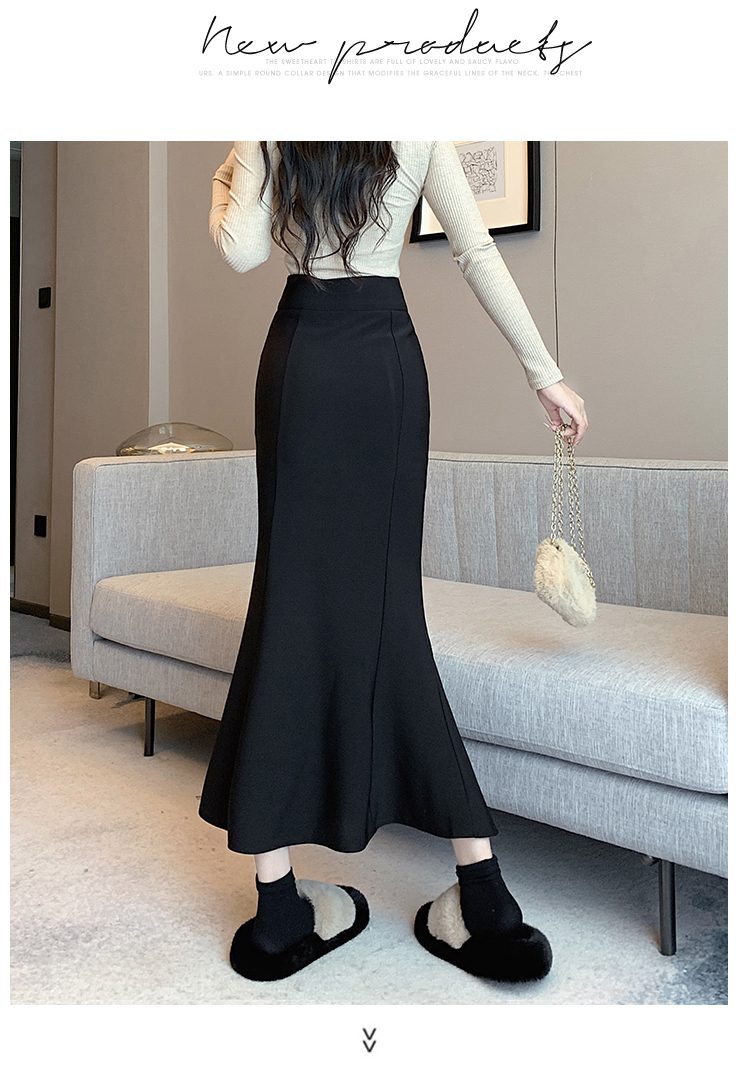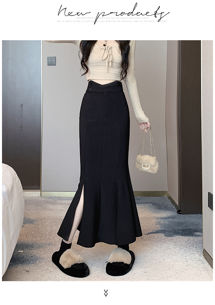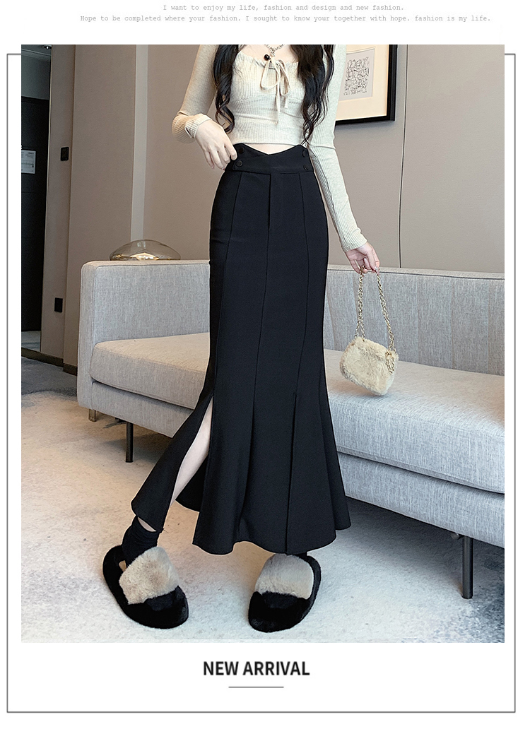 RM33358#新款中长款垂感百搭高腰显瘦包臀裙开叉鱼尾裙半身裙