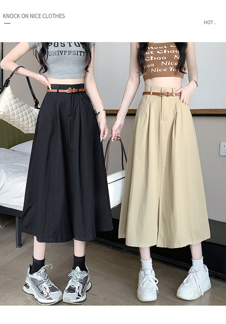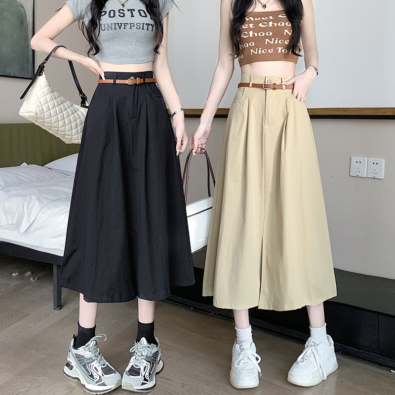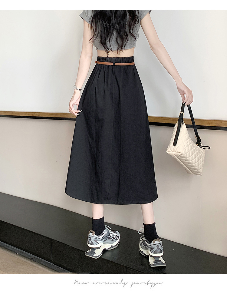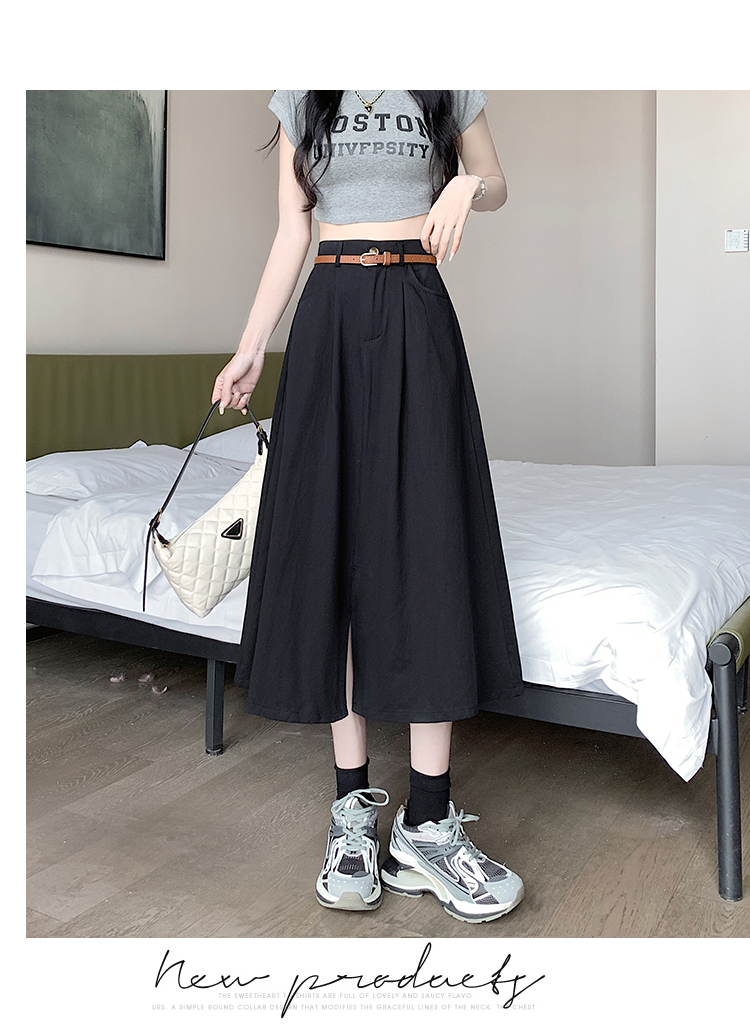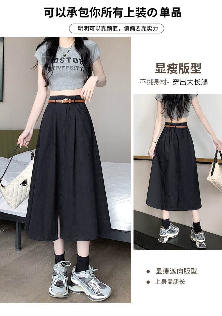 RM33359#夏季新品个性开叉精美高腰显瘦简约口袋清凉中长大摆裙宽松型