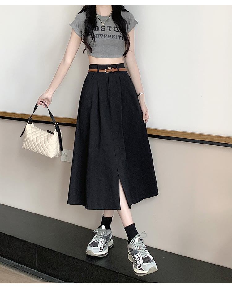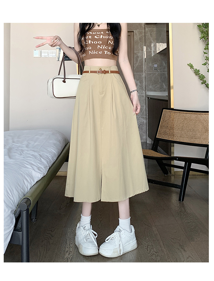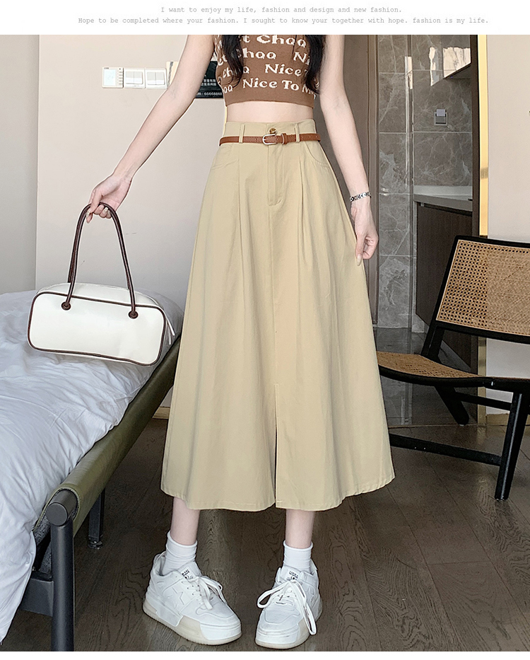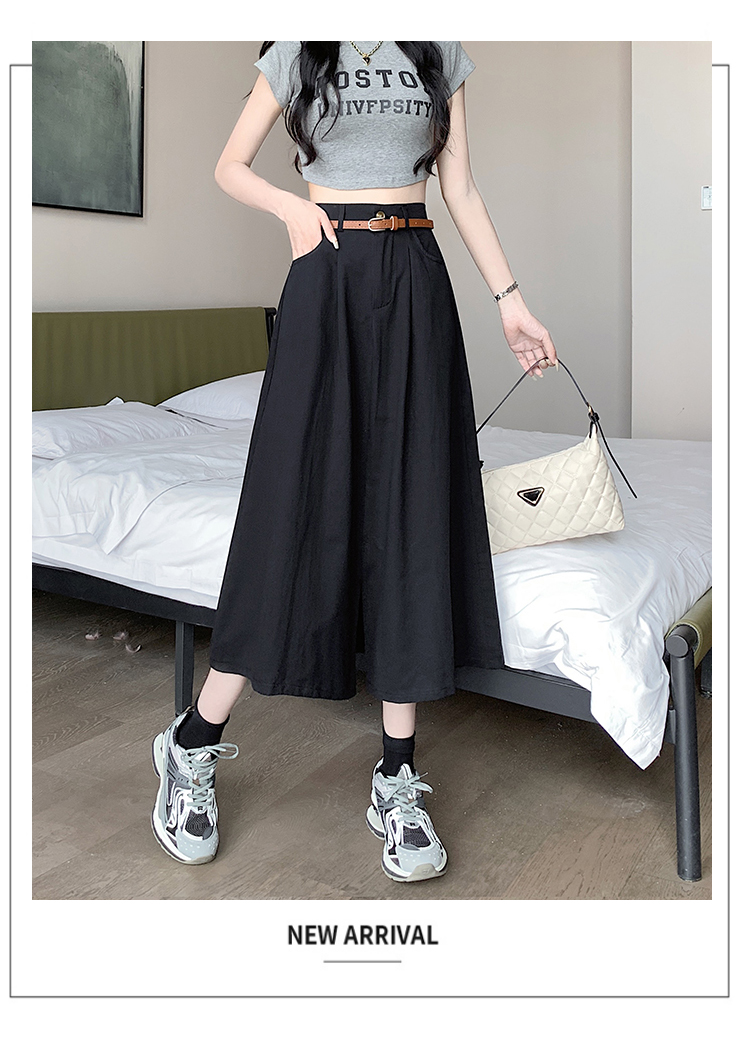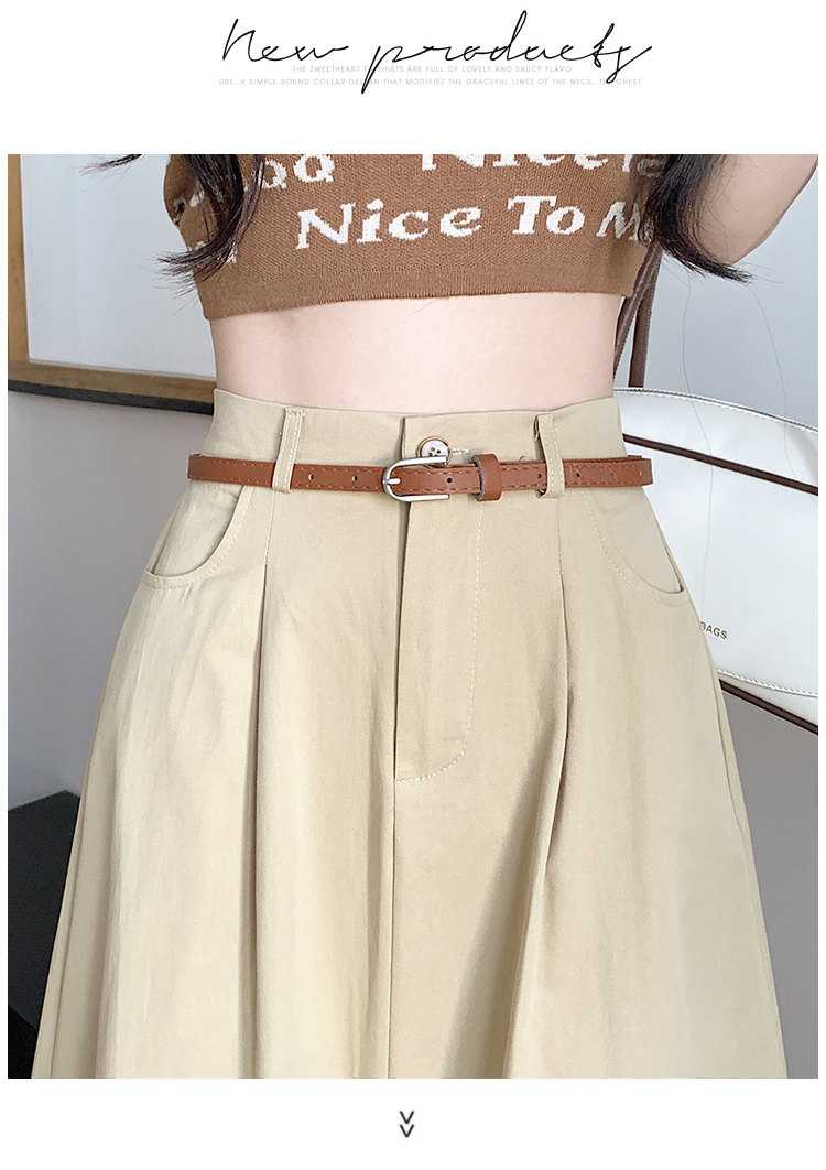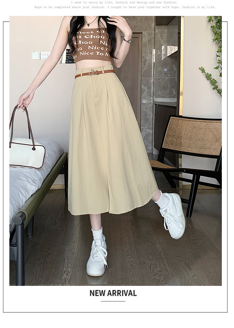 RM33359#夏季新品个性开叉精美高腰显瘦简约口袋清凉中长大摆裙宽松型