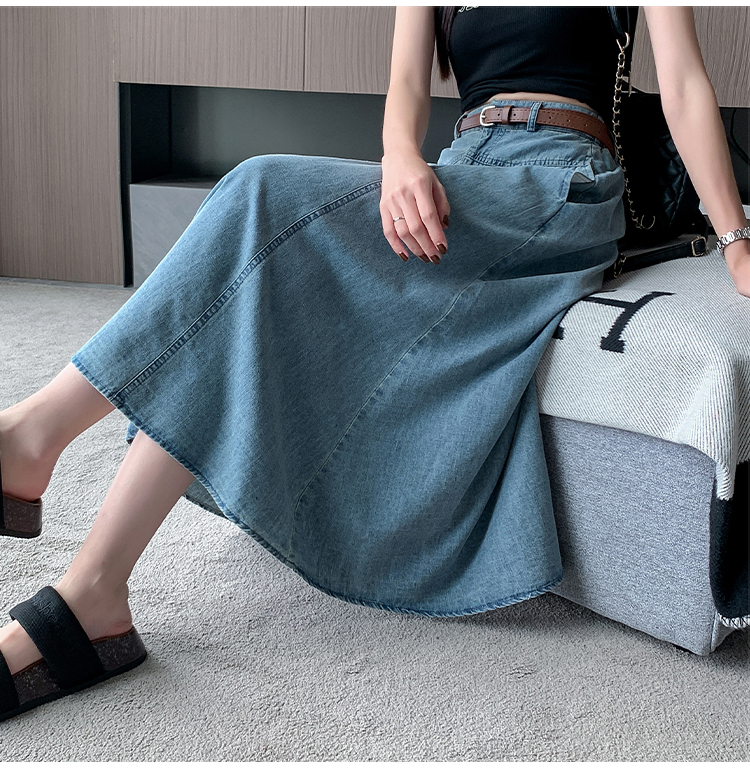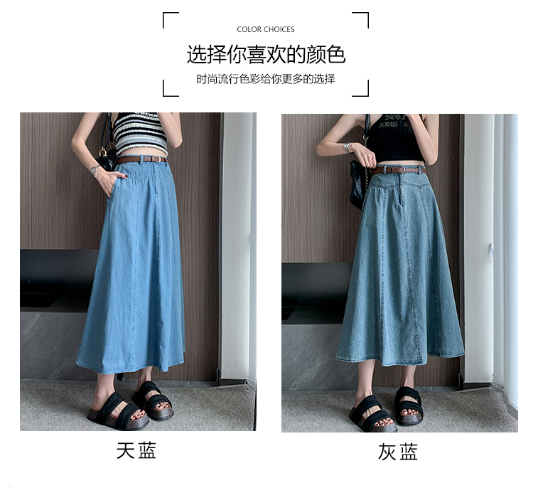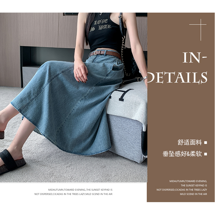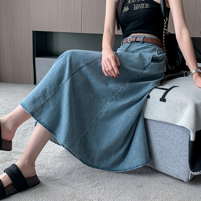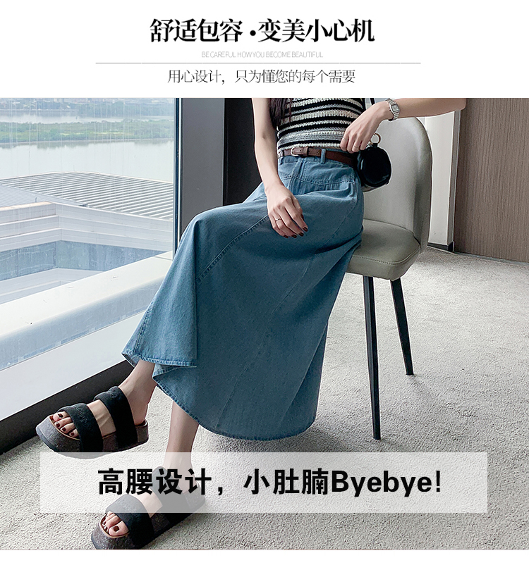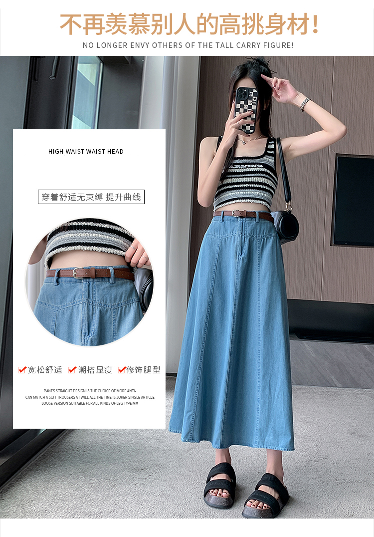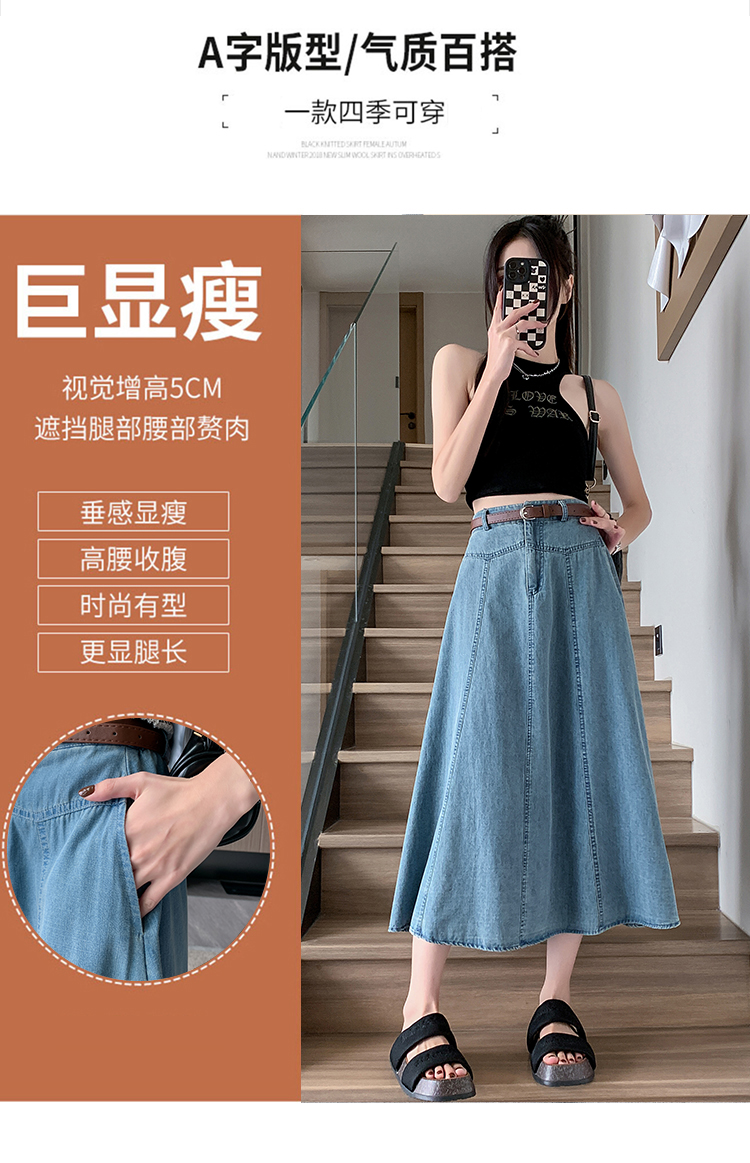 RM33412#新款a字半身裙女百褶高腰裙修身长款大摆裙牛仔长裙