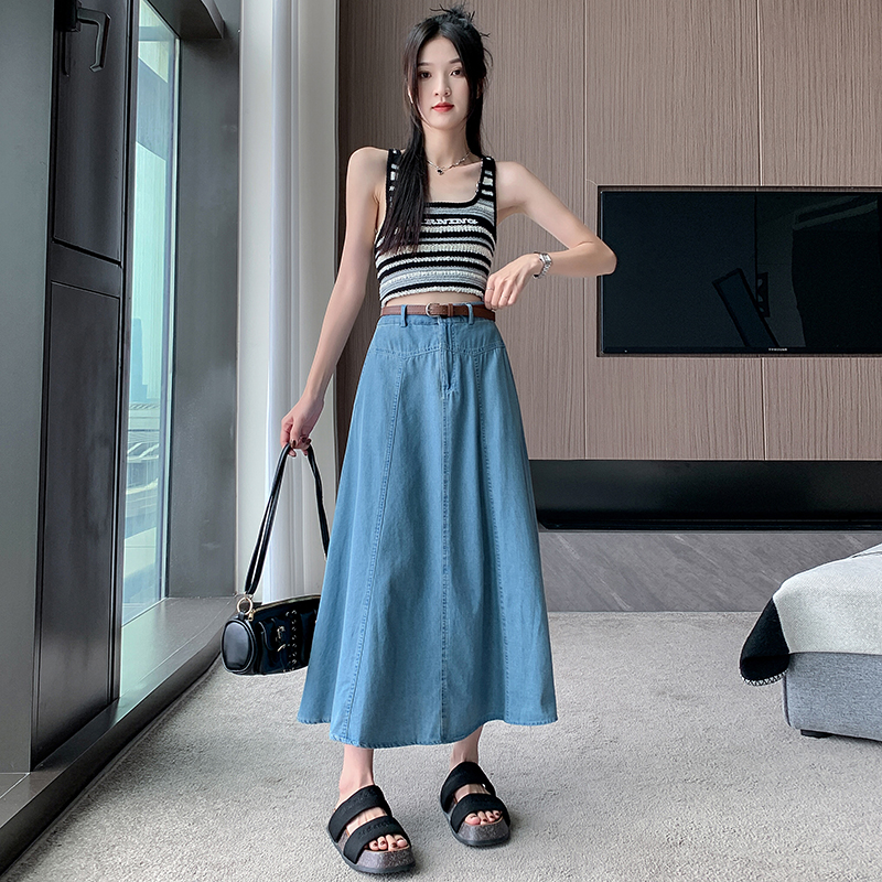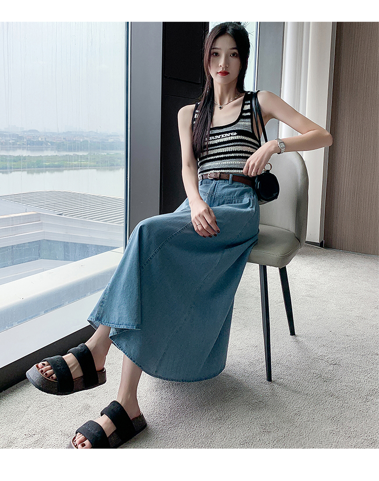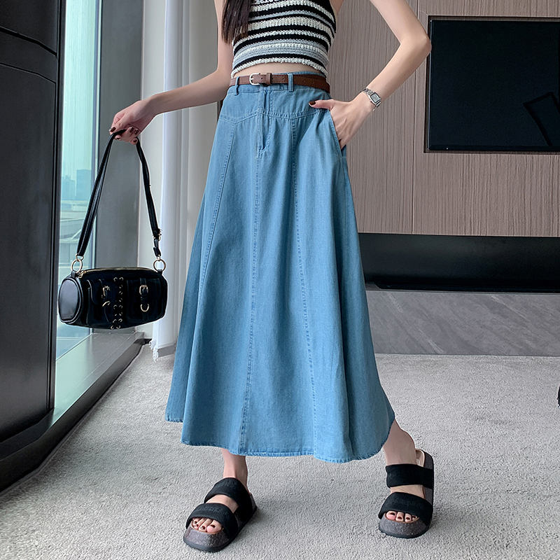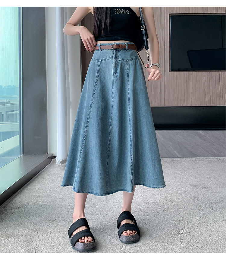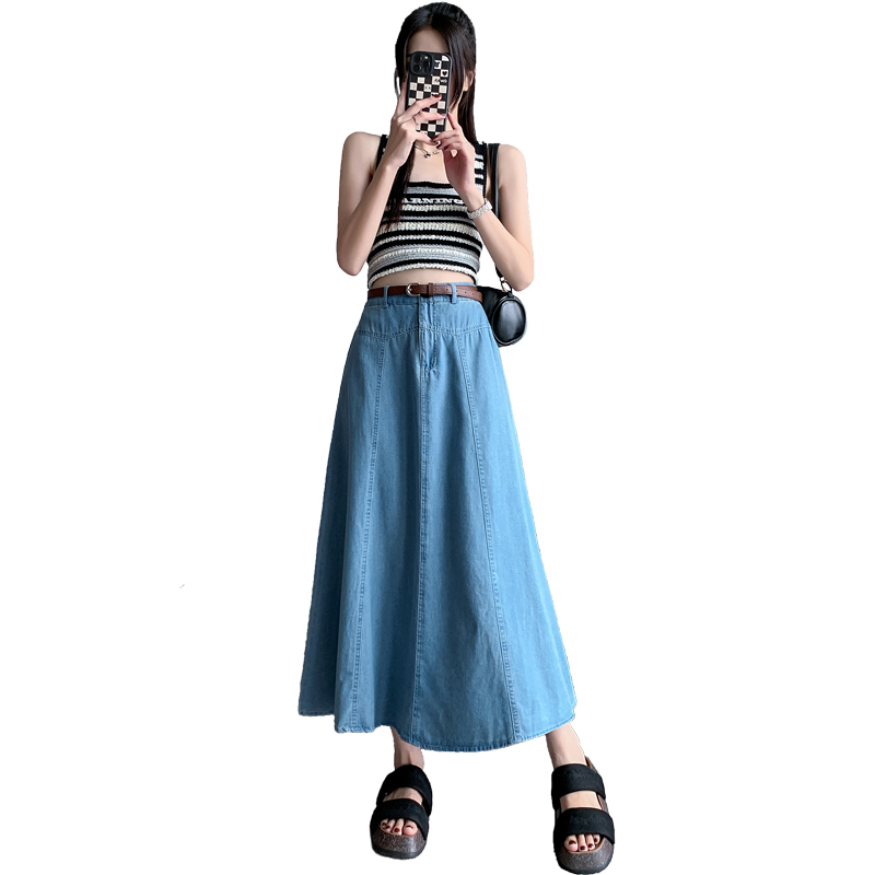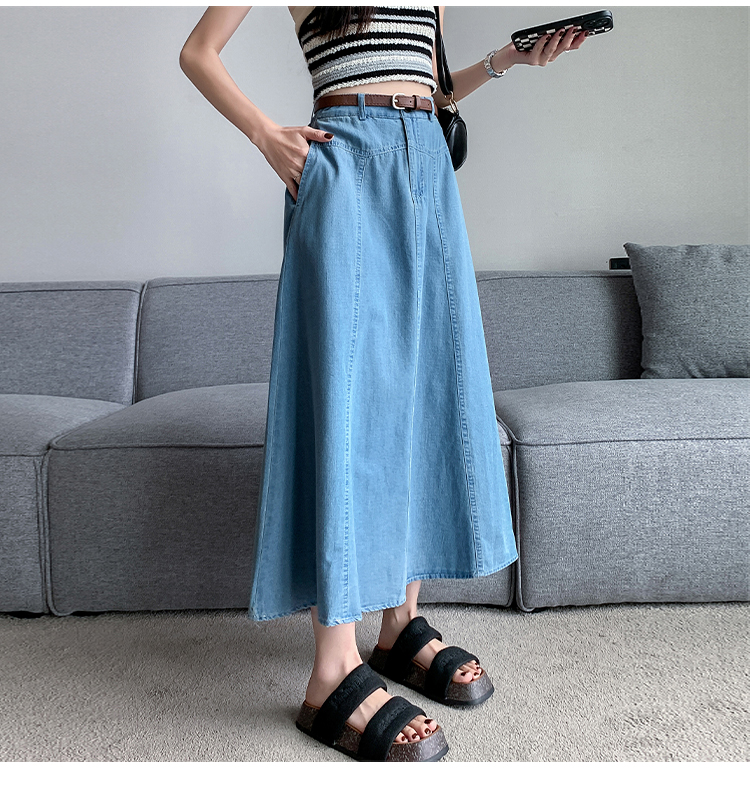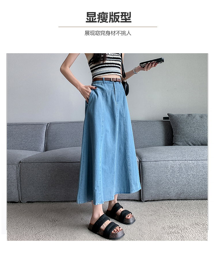 RM33412#新款a字半身裙女百褶高腰裙修身长款大摆裙牛仔长裙