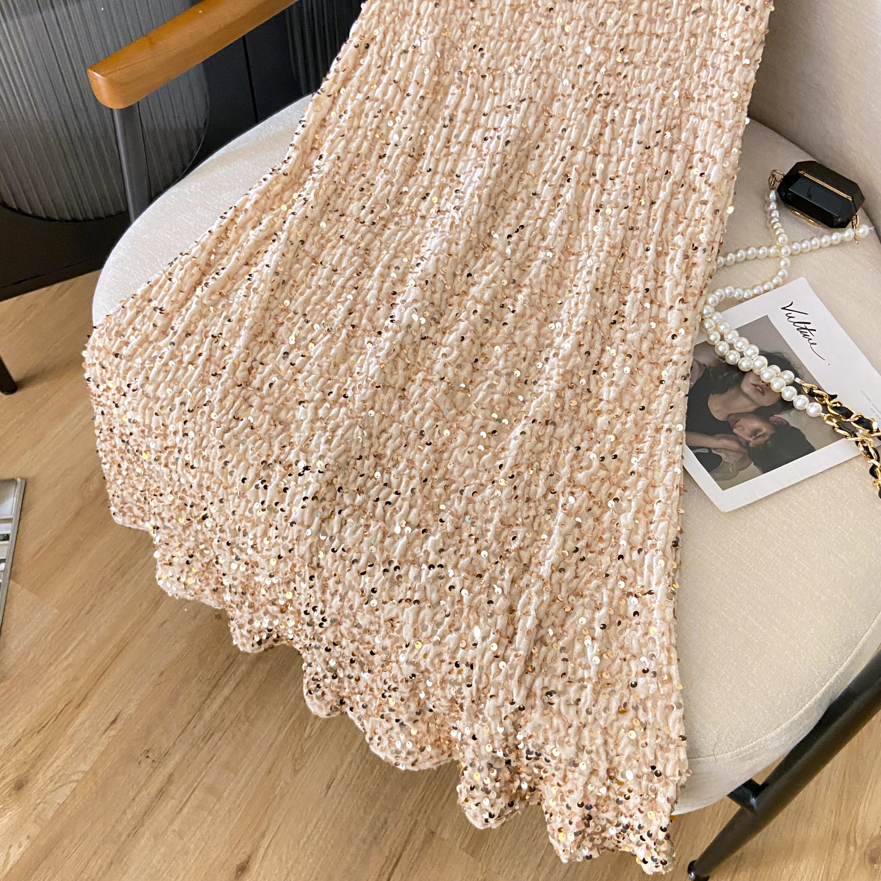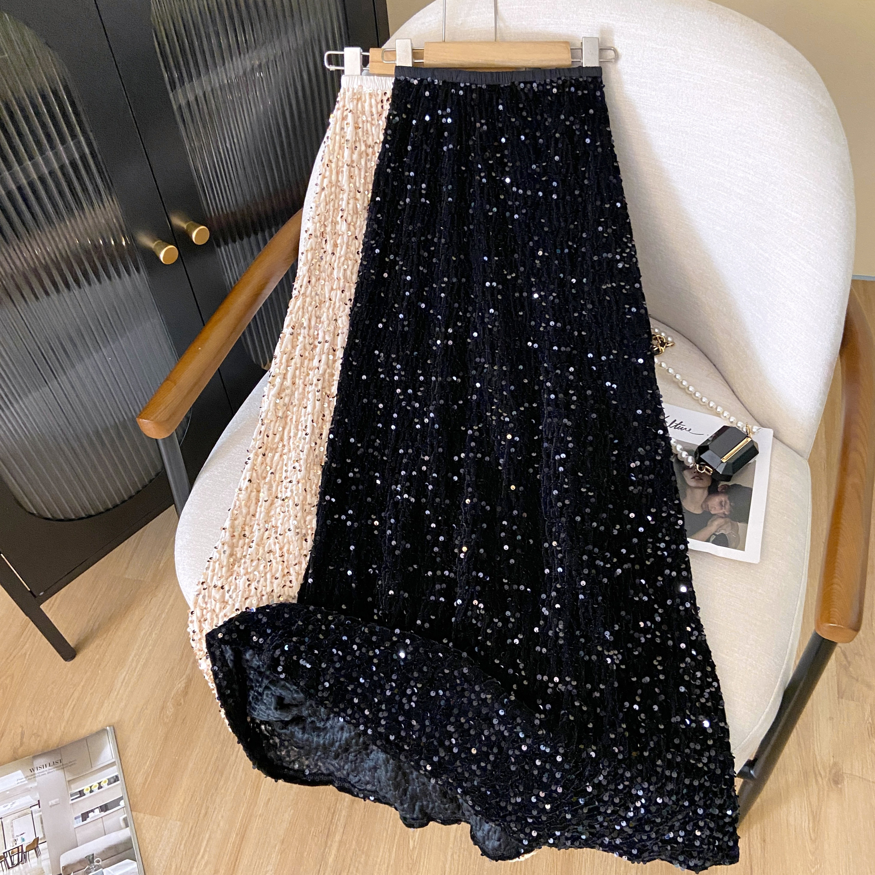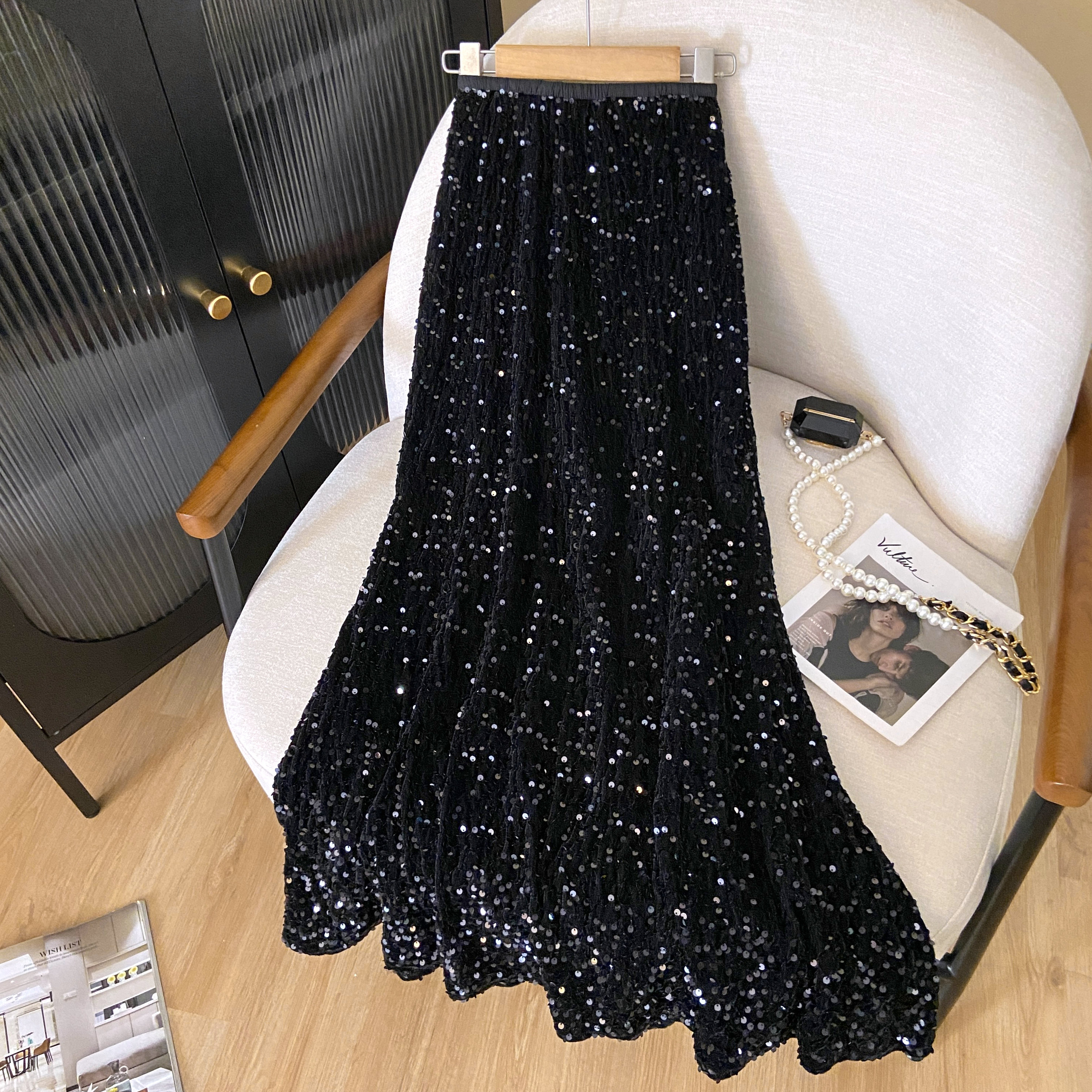 RM33420#新款弹力高腰亮片高级感修身鱼尾中长款半身裙