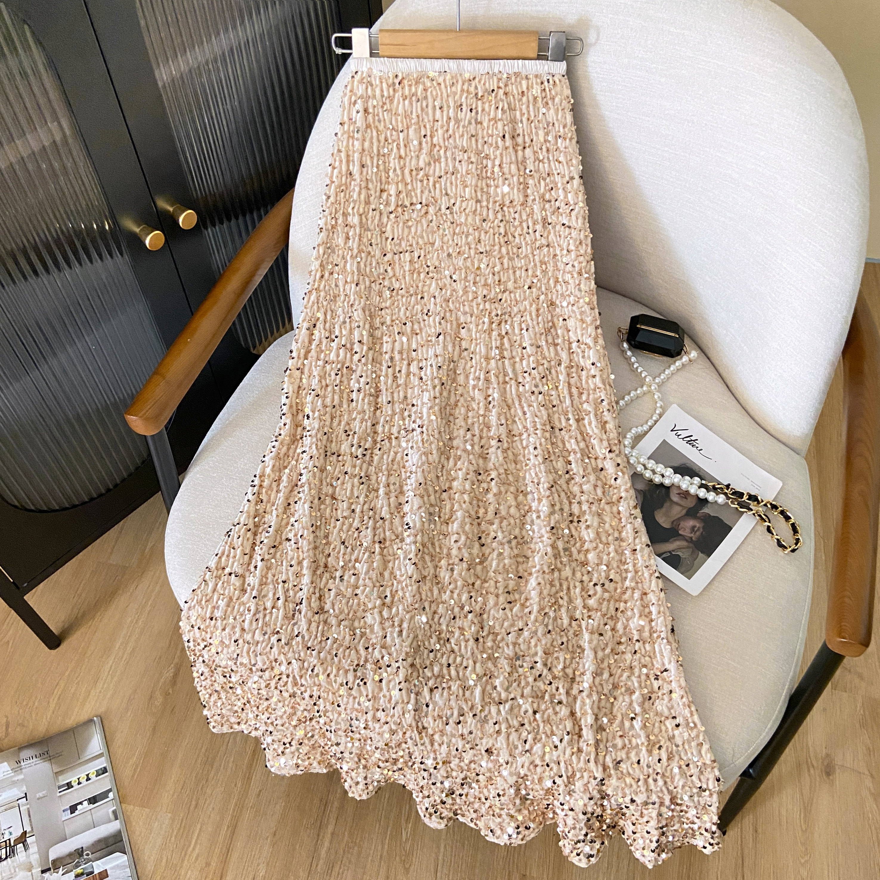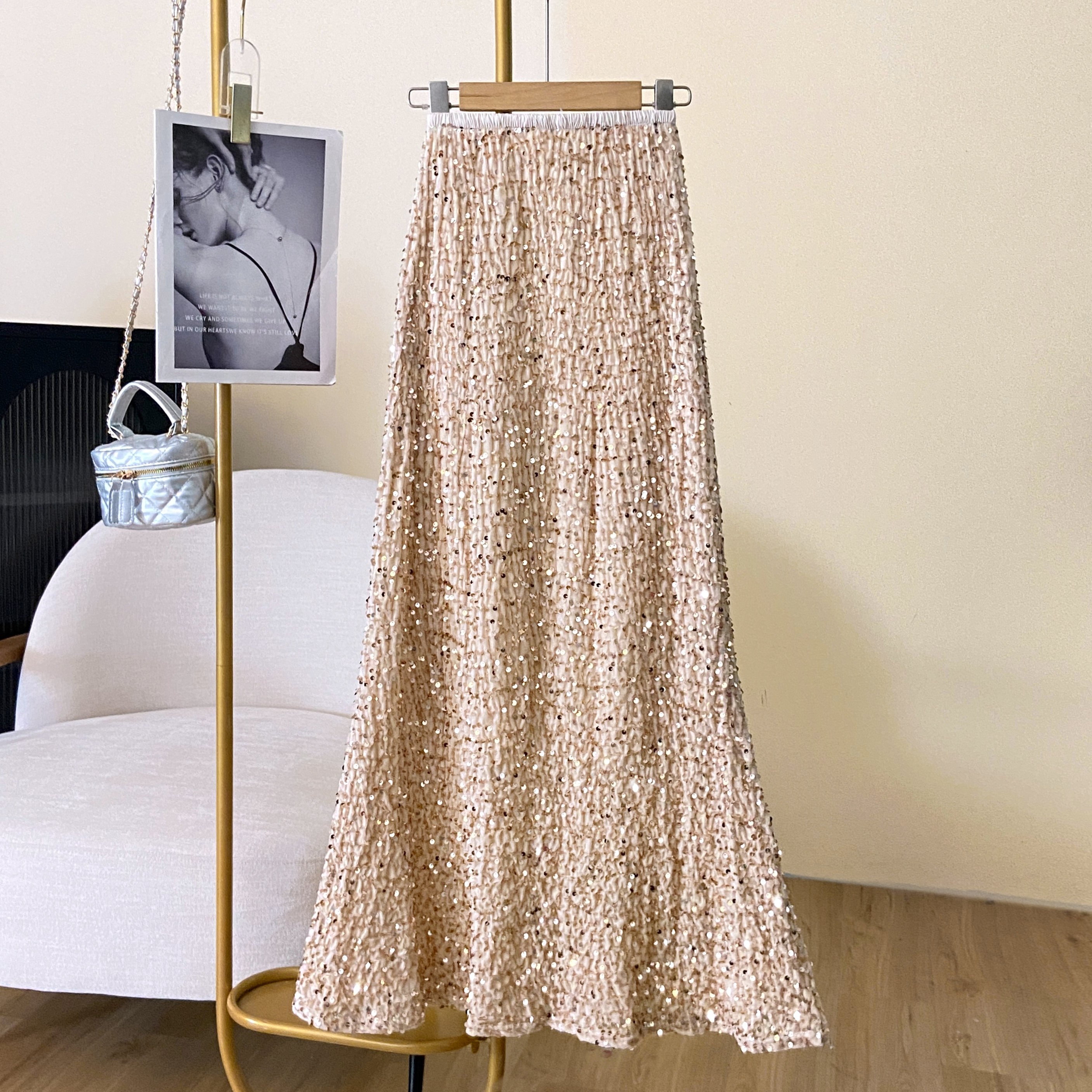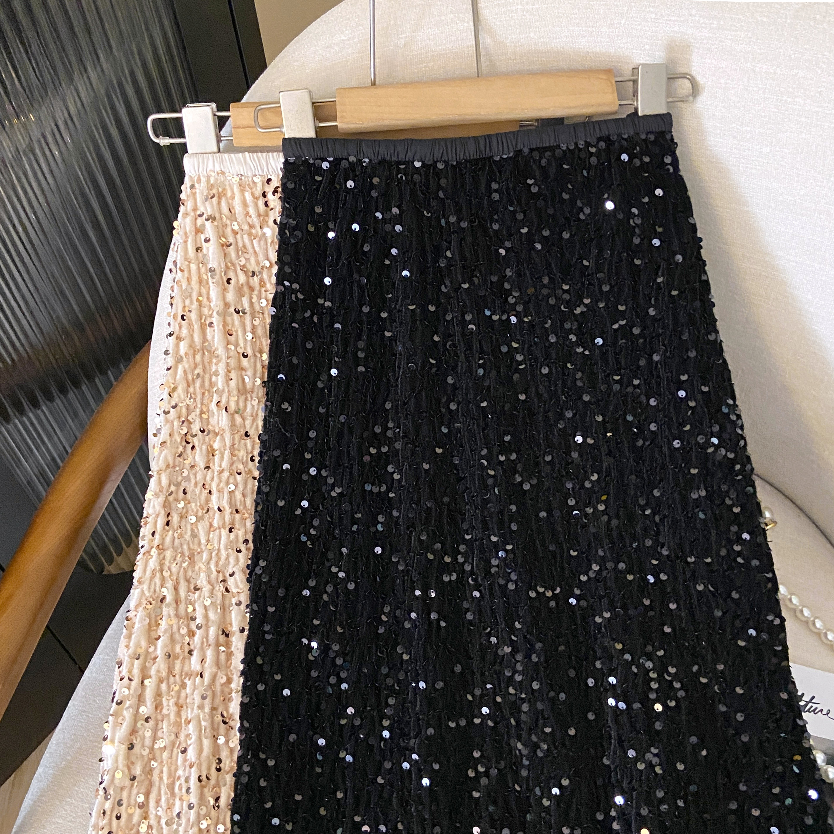 RM33420#新款弹力高腰亮片高级感修身鱼尾中长款半身裙