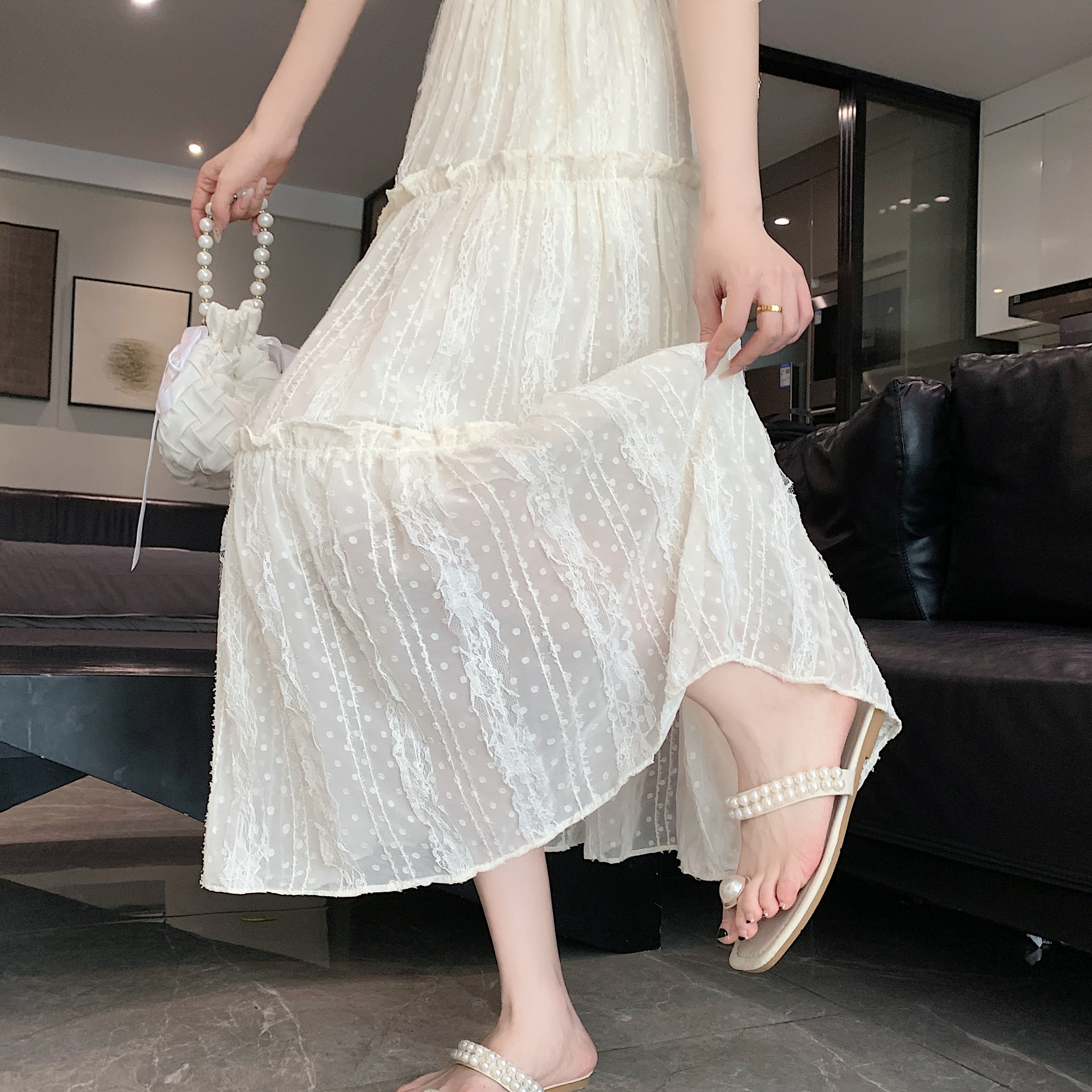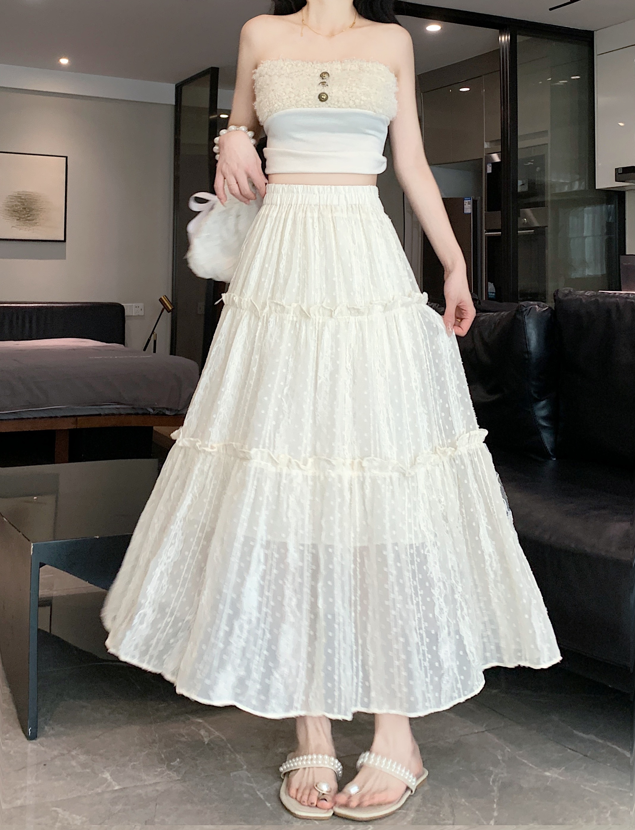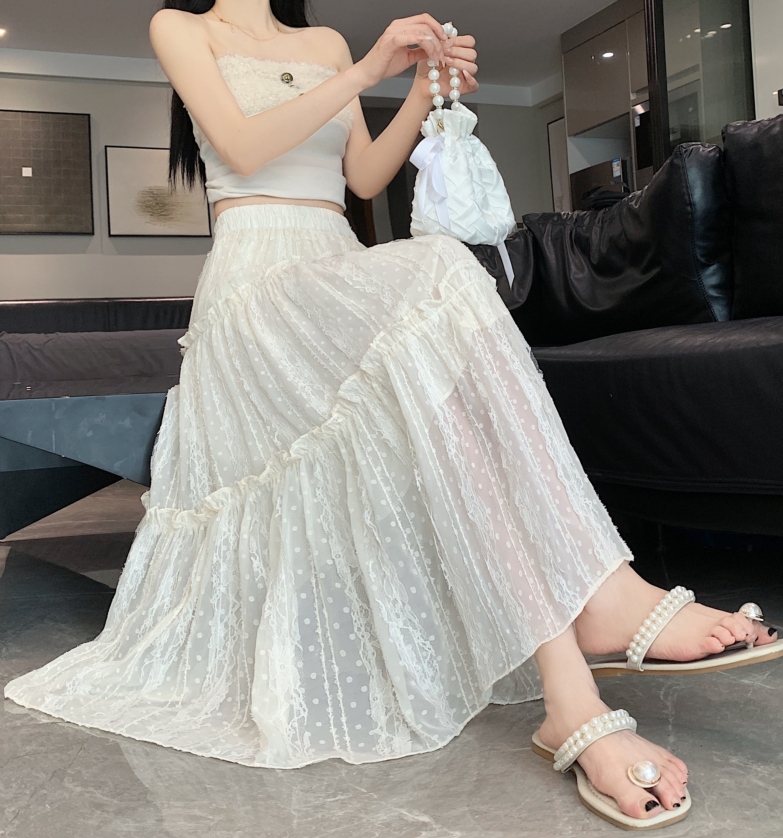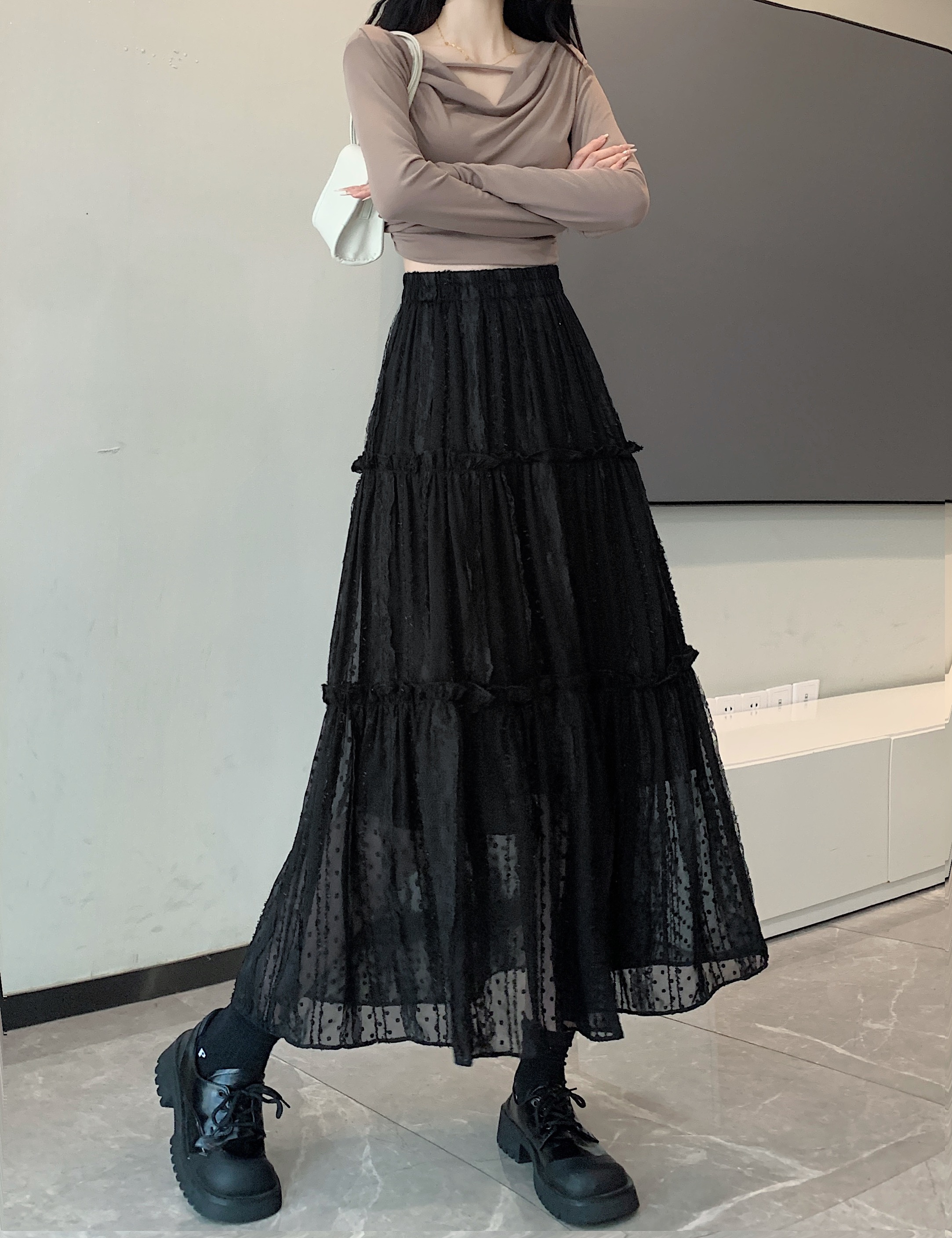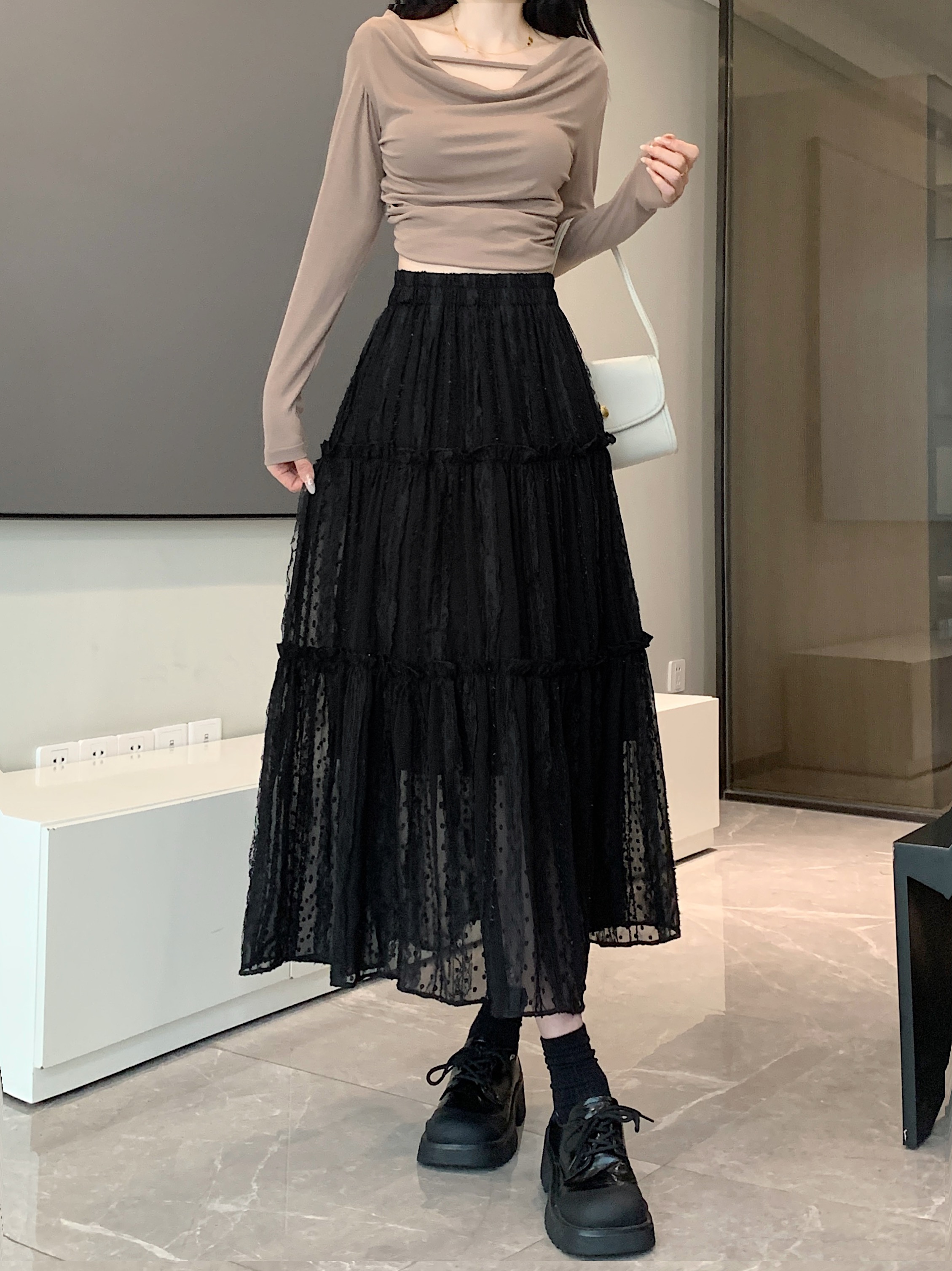 RM33448#新款法式甜美立体网纱拼接半身裙女高腰木耳边A字蛋糕裙