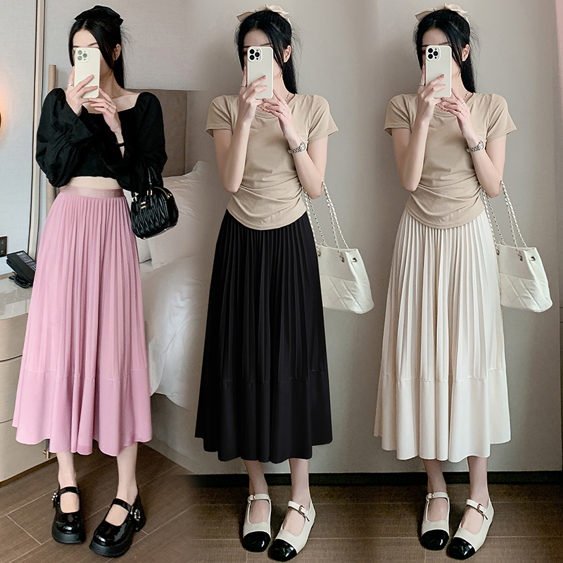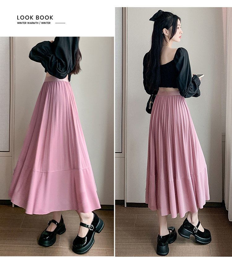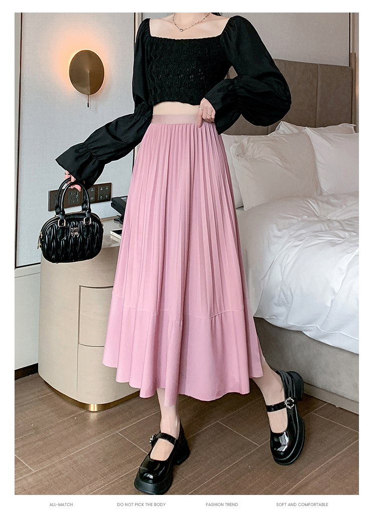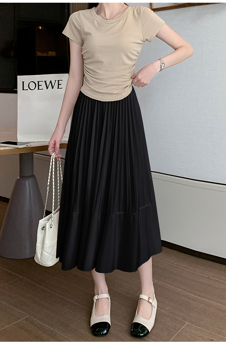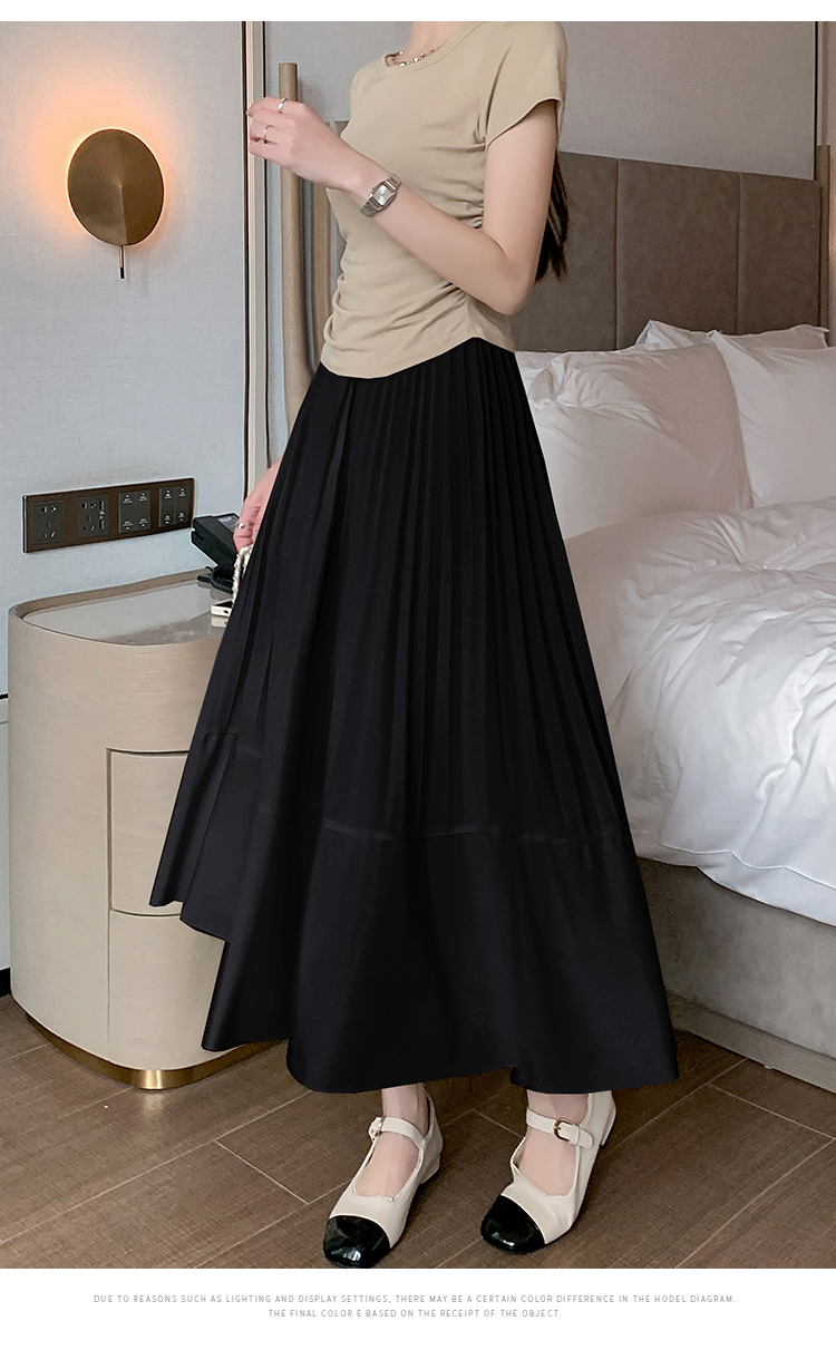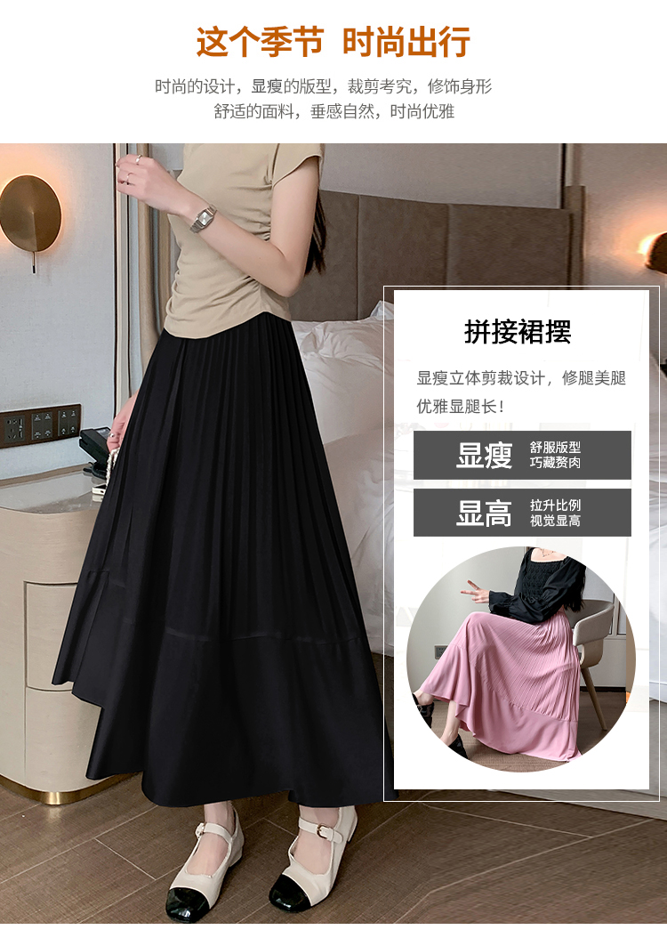 RM33712#法式拼接百褶裙女 新款设计感小众半身裙高腰显瘦a字长裙