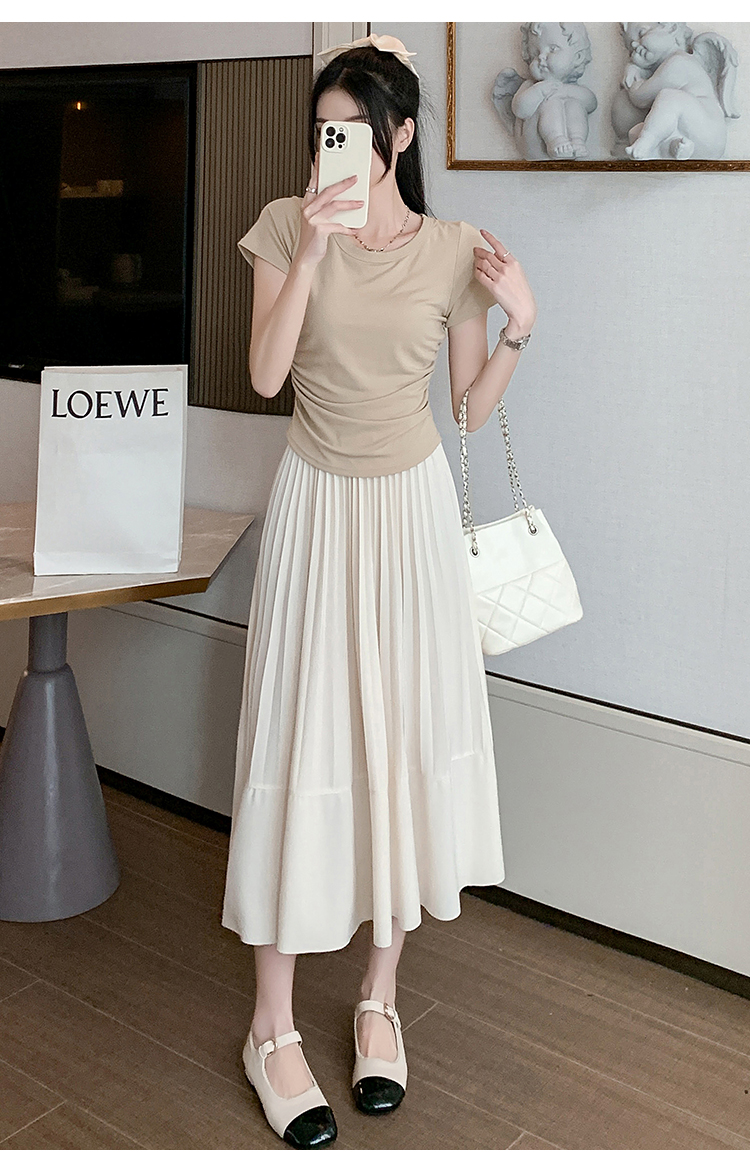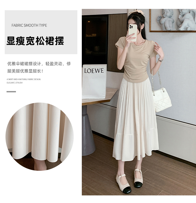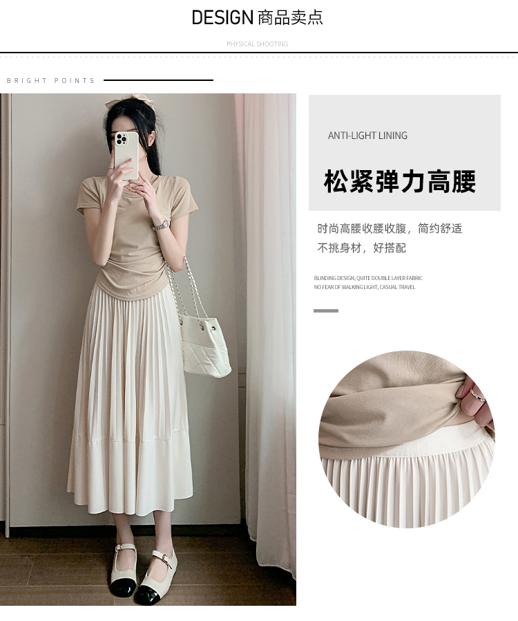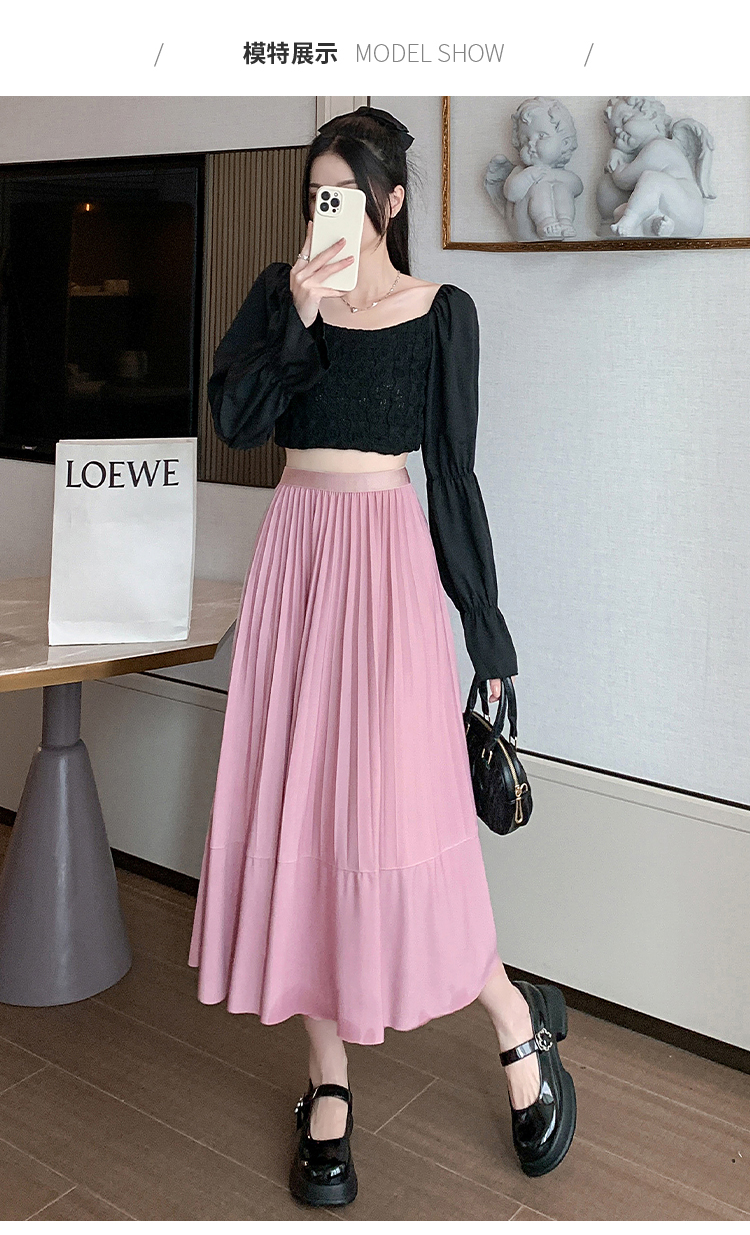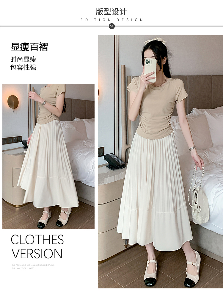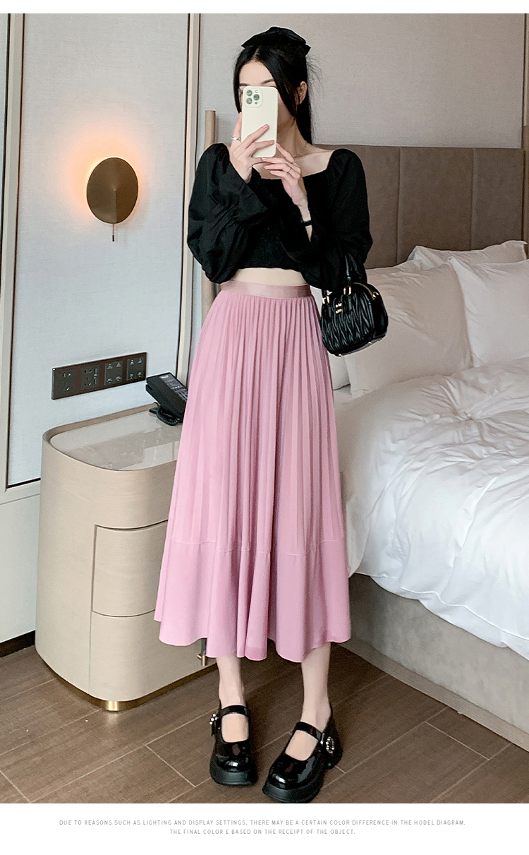 RM33712#法式拼接百褶裙女 新款设计感小众半身裙高腰显瘦a字长裙