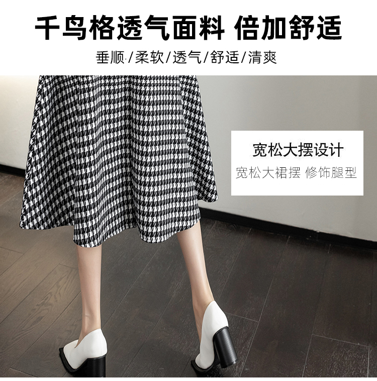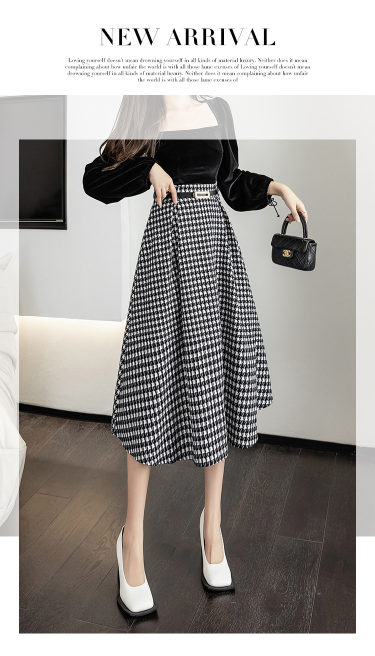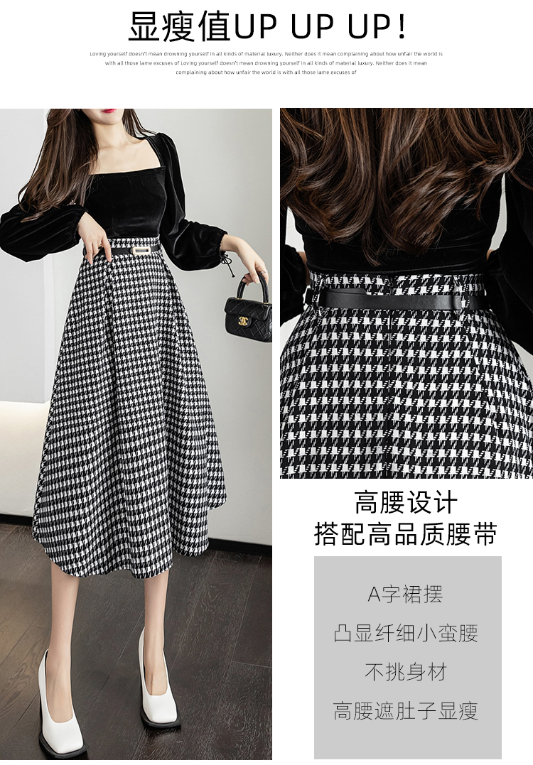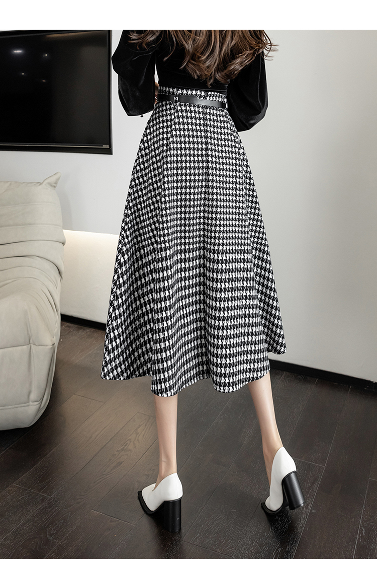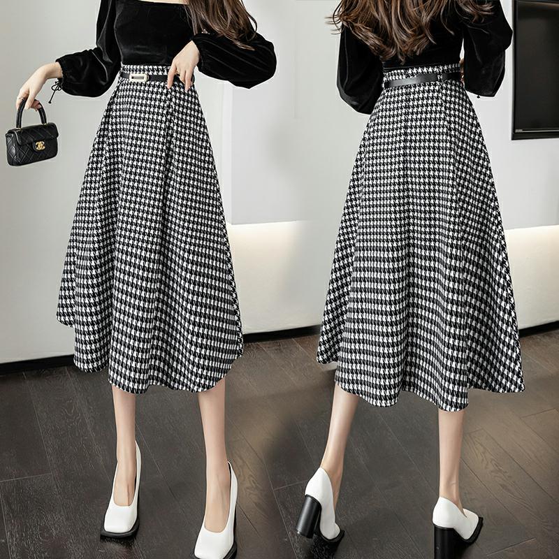 RY2727#春季新款复古中长千鸟格a字裙秋季高腰显瘦半身裙