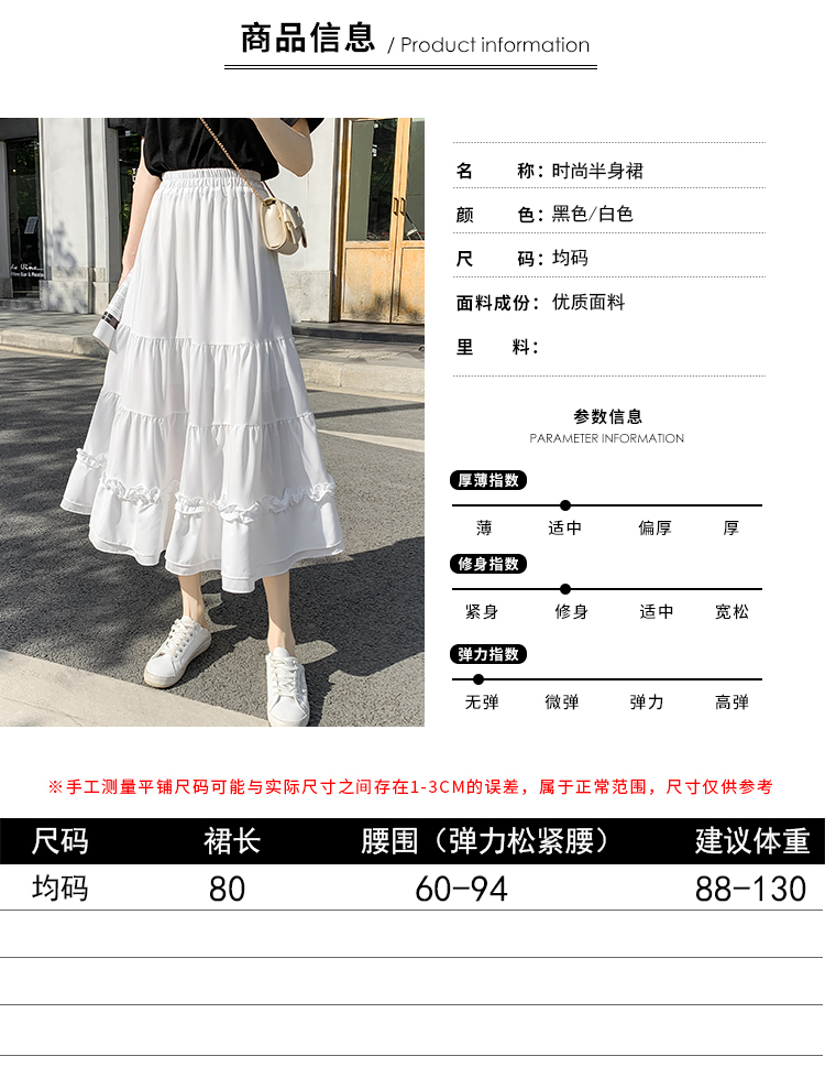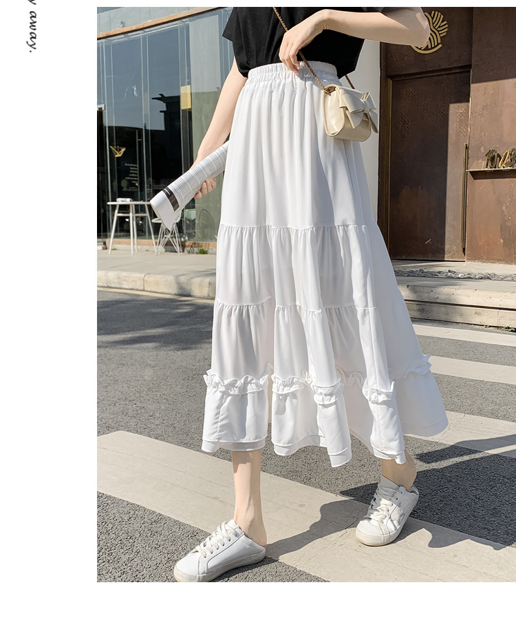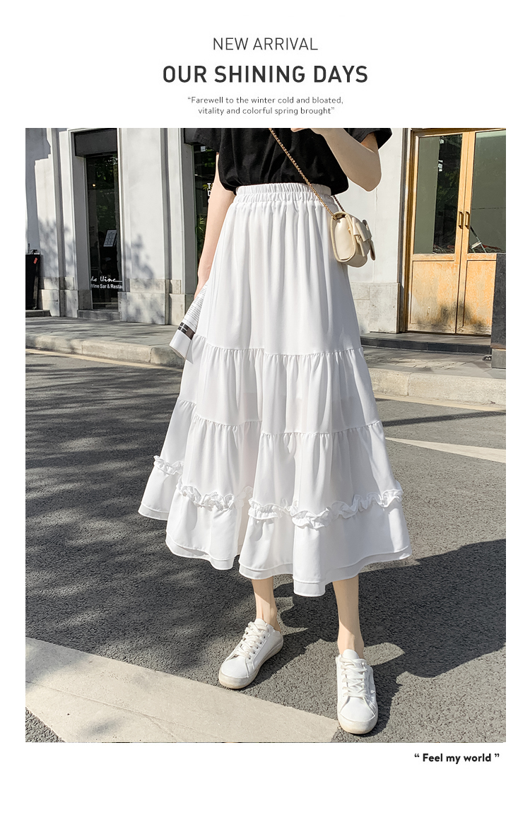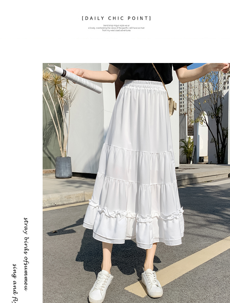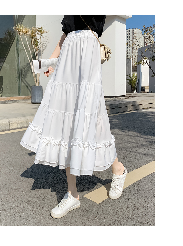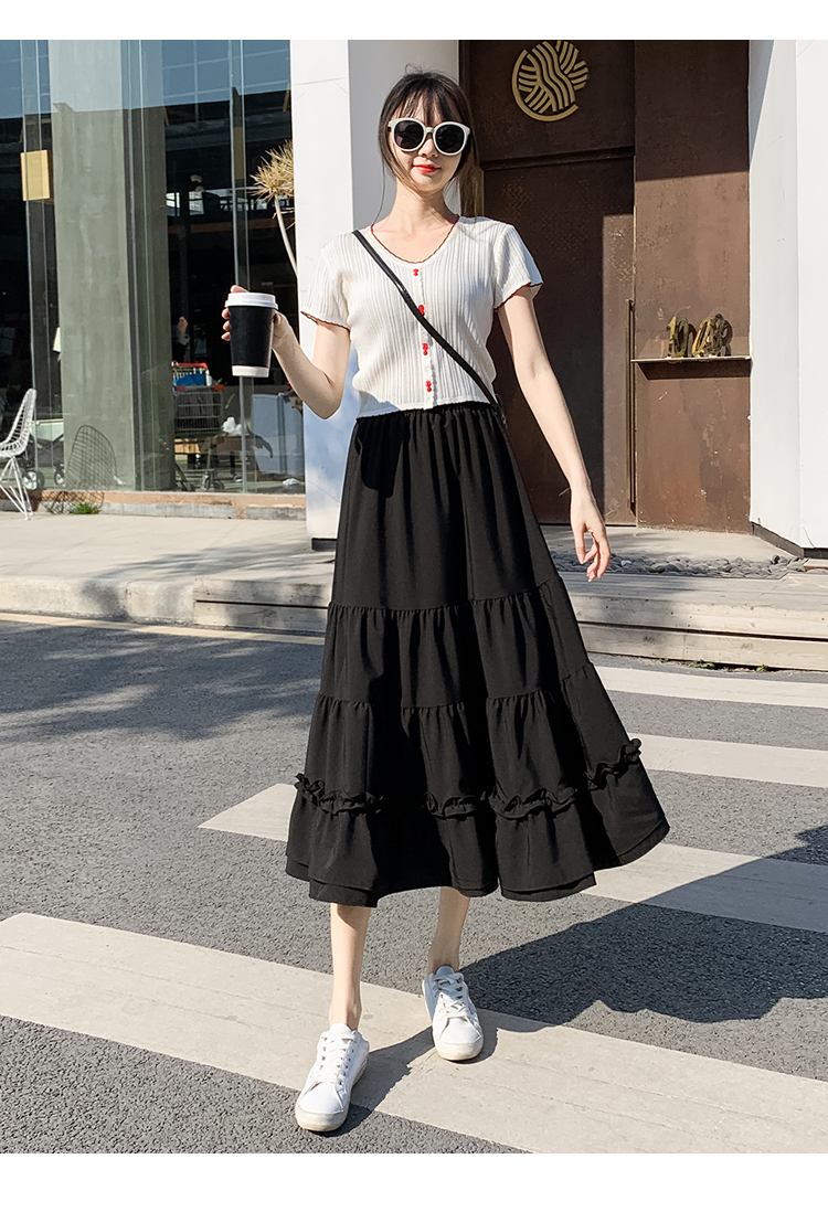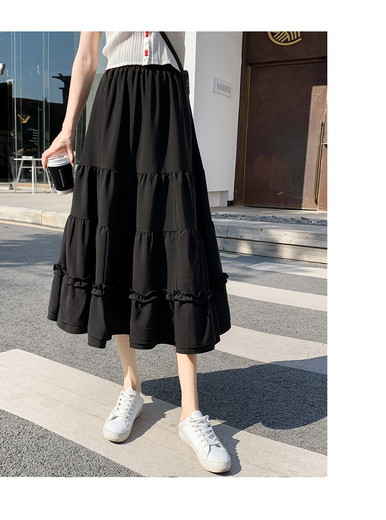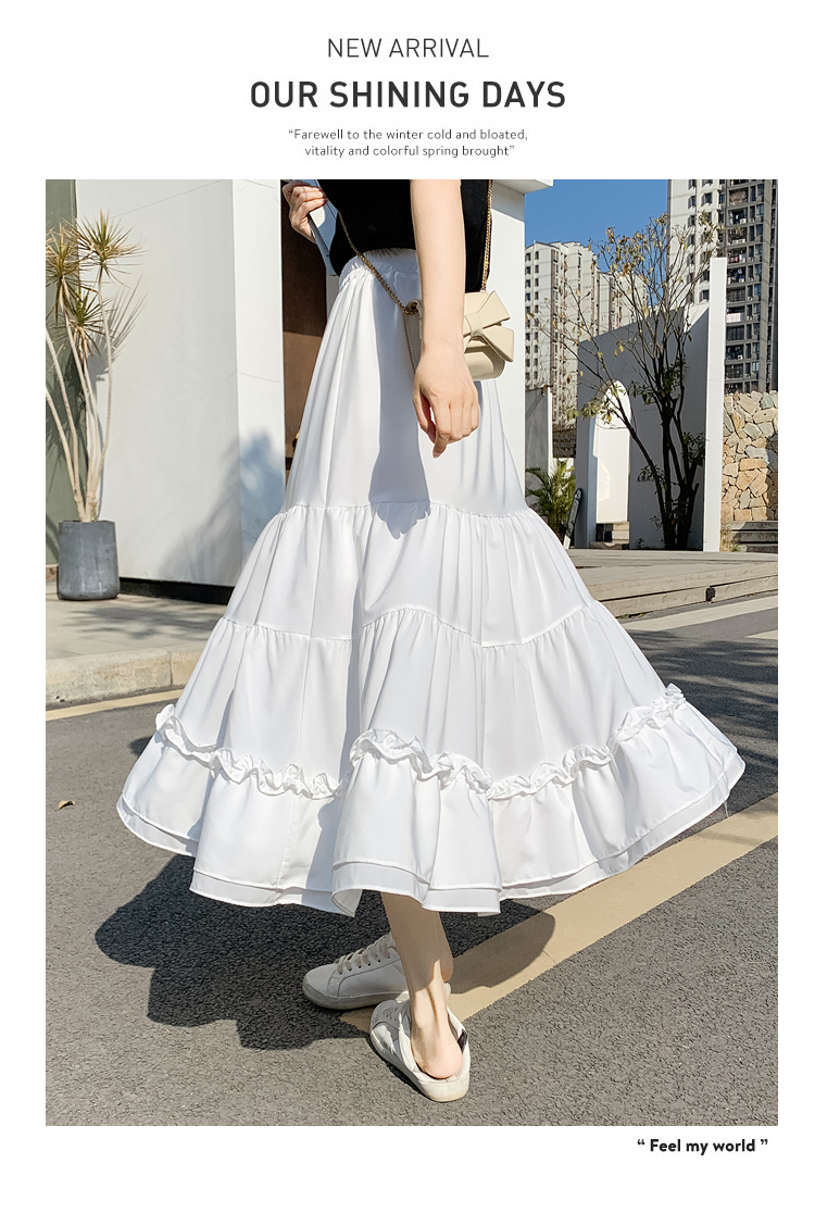 RM33790#木耳花边半身裙女夏高腰显瘦中长款荷叶边裙子拼接a字蛋糕裙长裙