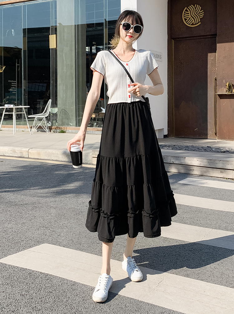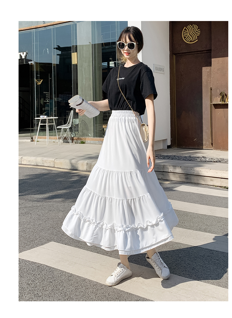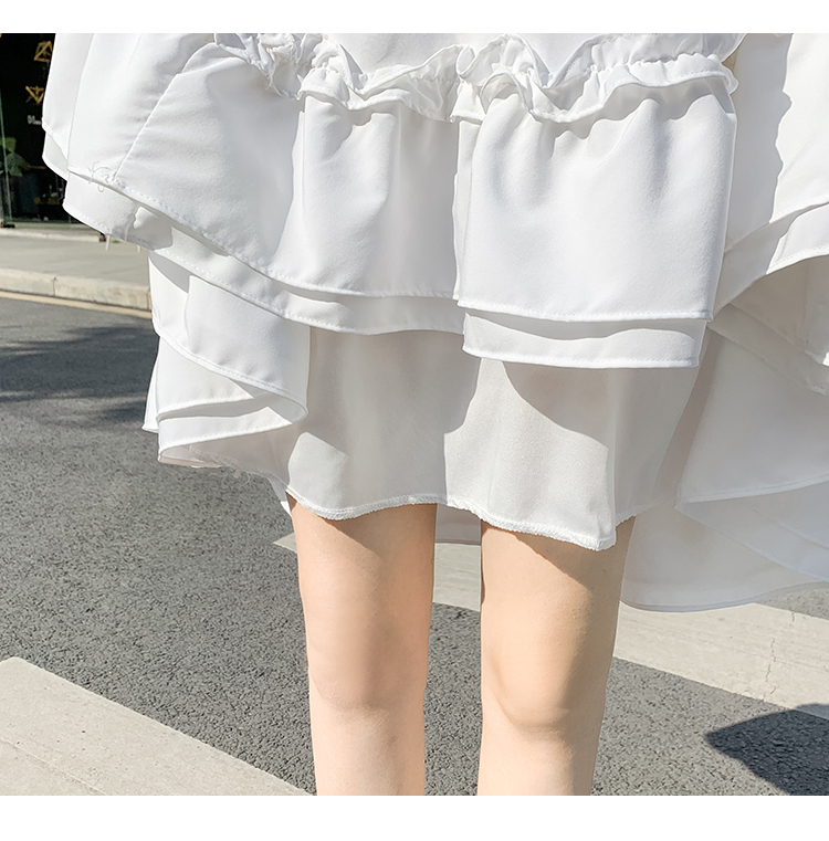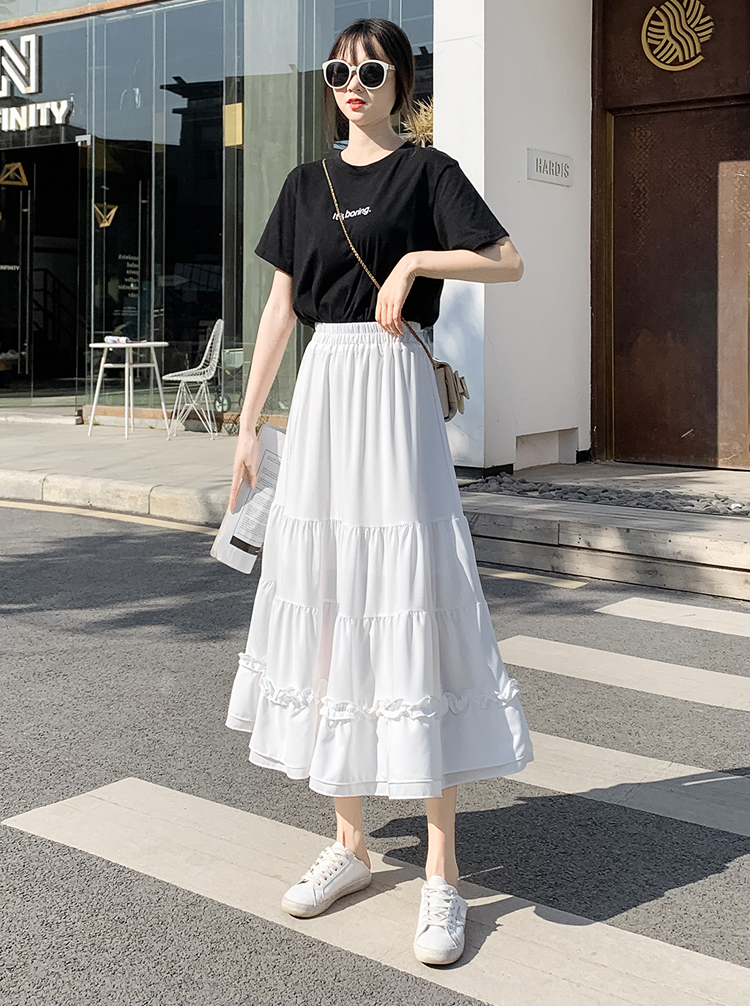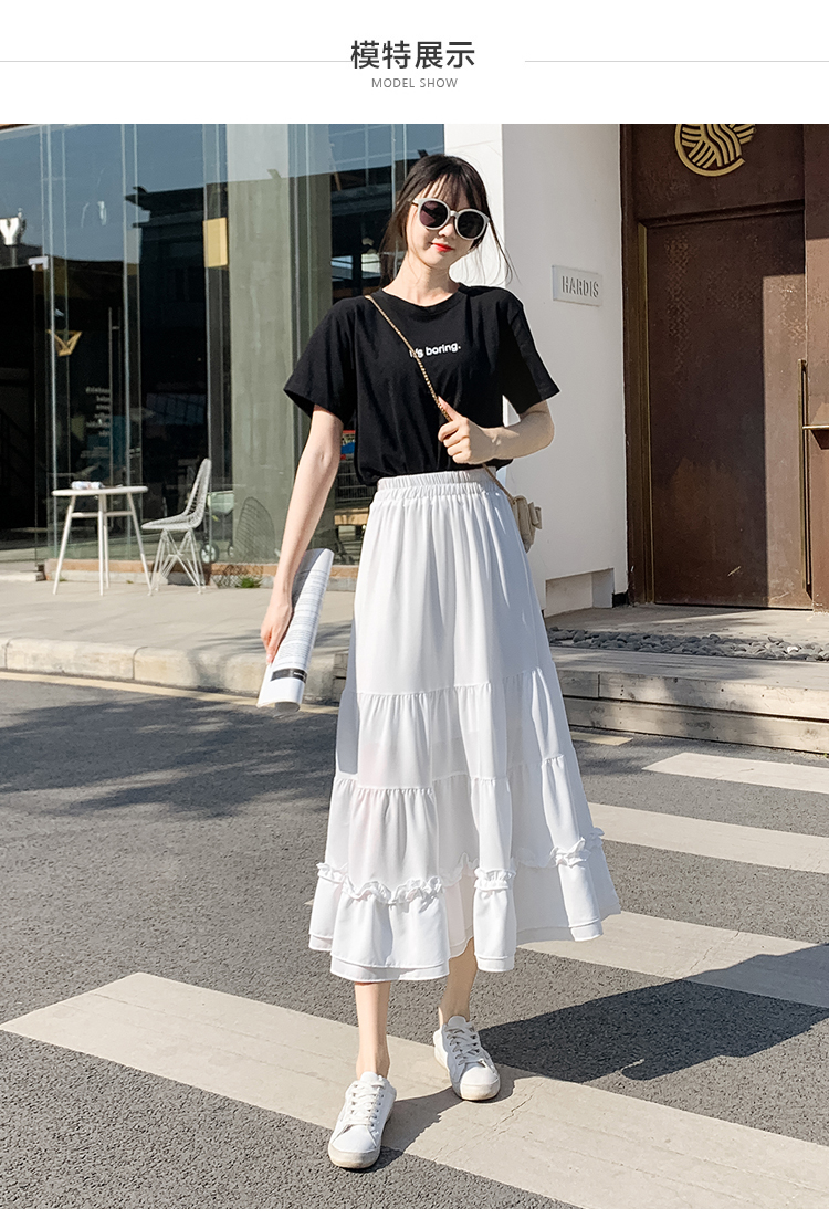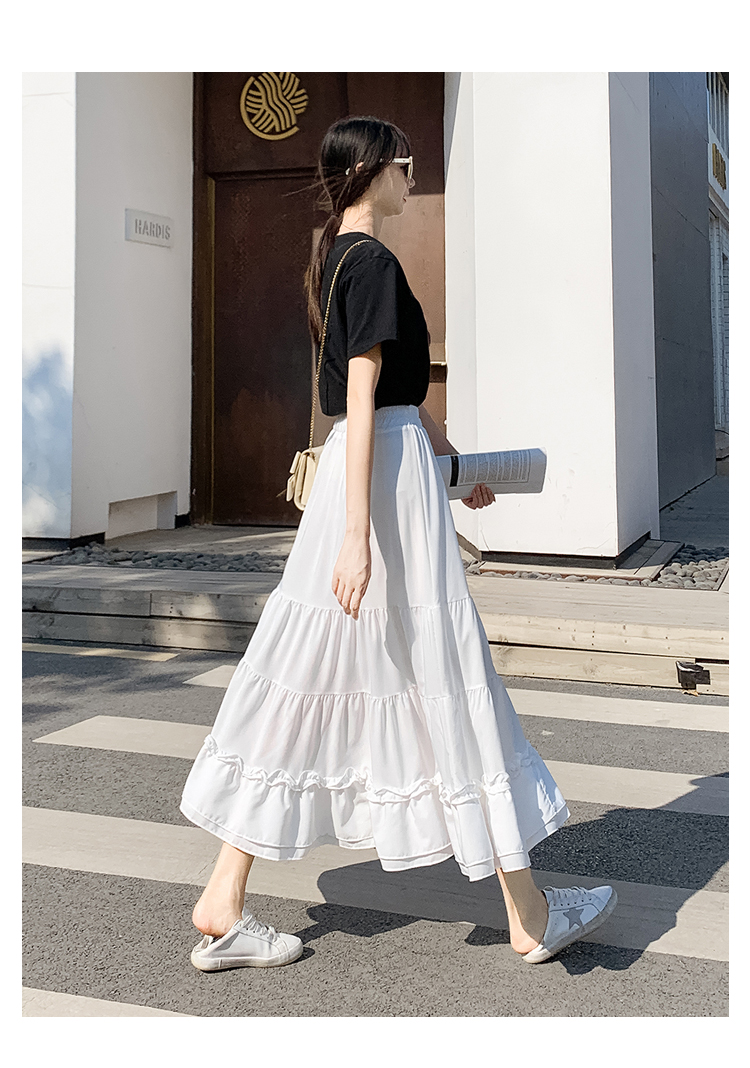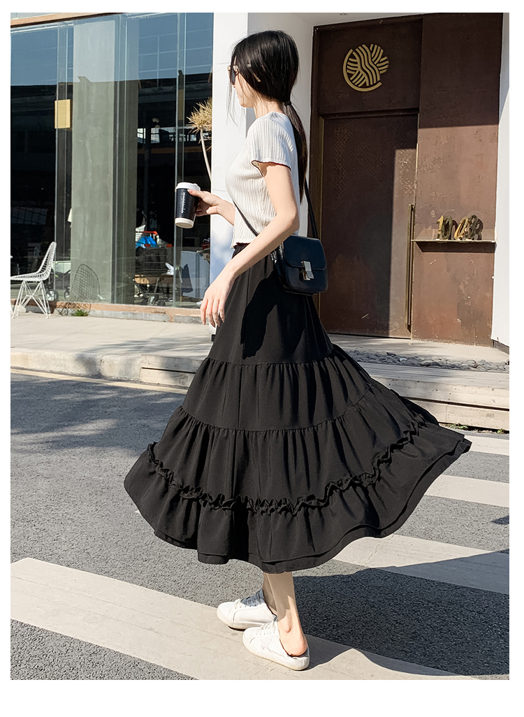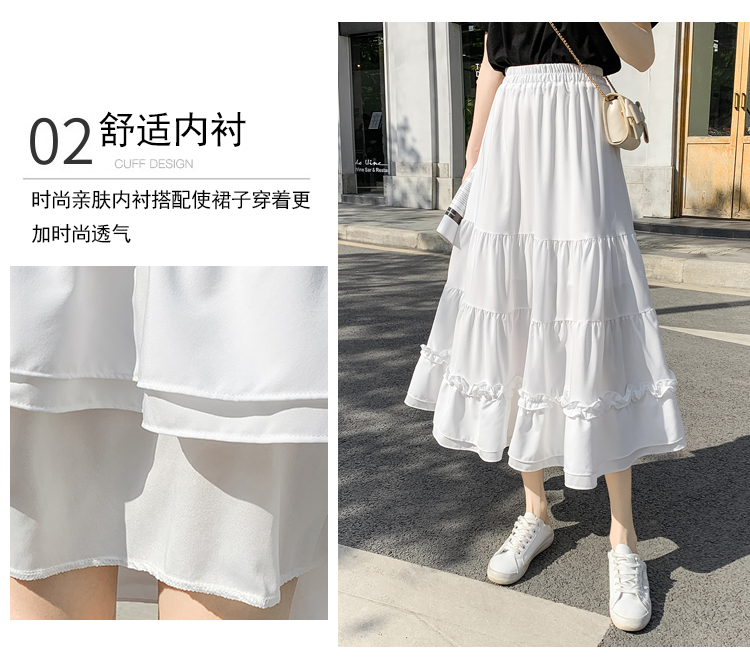 RM33790#木耳花边半身裙女夏高腰显瘦中长款荷叶边裙子拼接a字蛋糕裙长裙