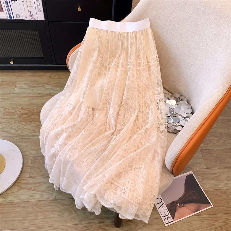 RM33816#网纱拼接百褶半身裙女2024春夏新高腰显瘦气质垂感A字大摆裙